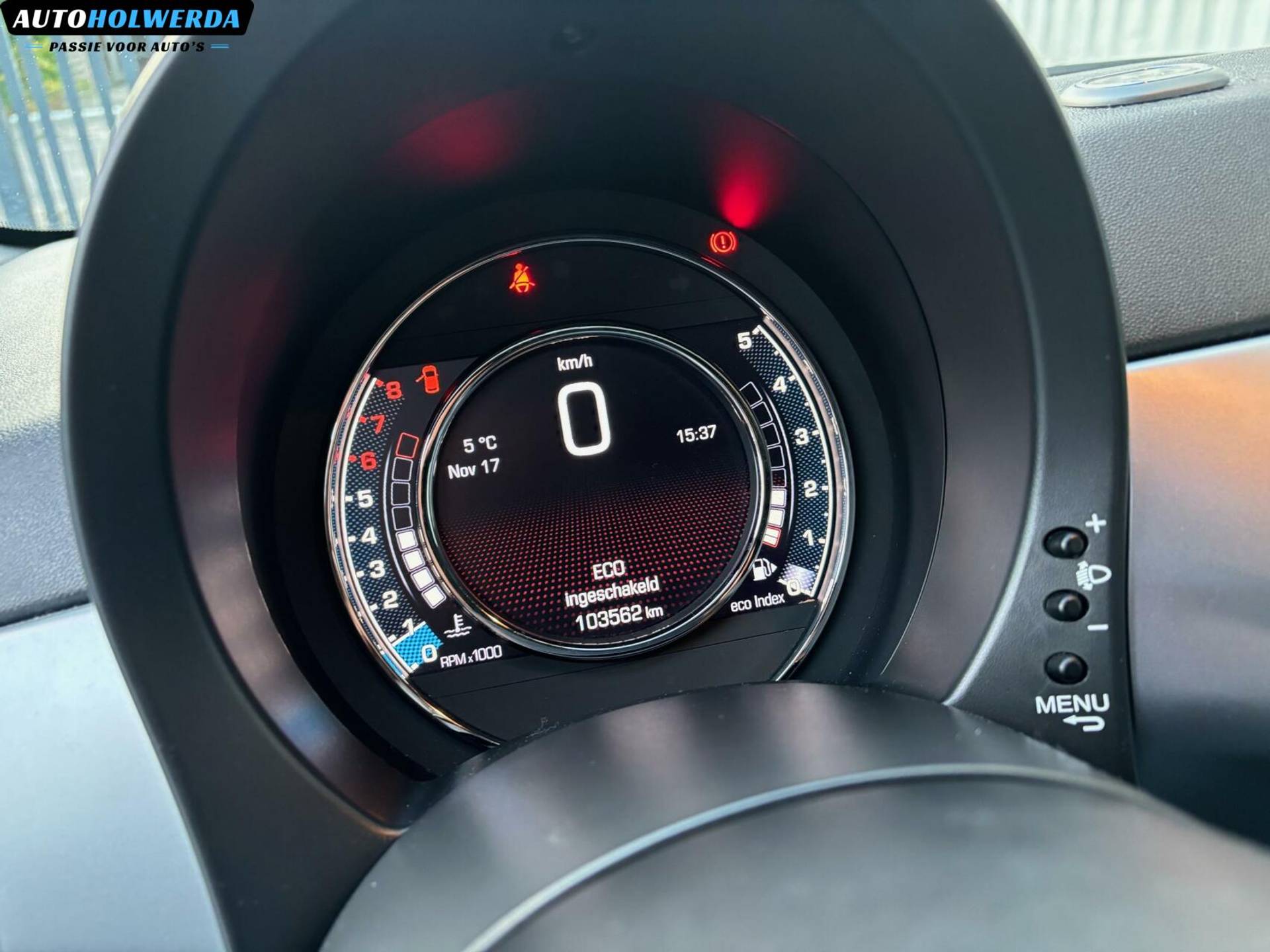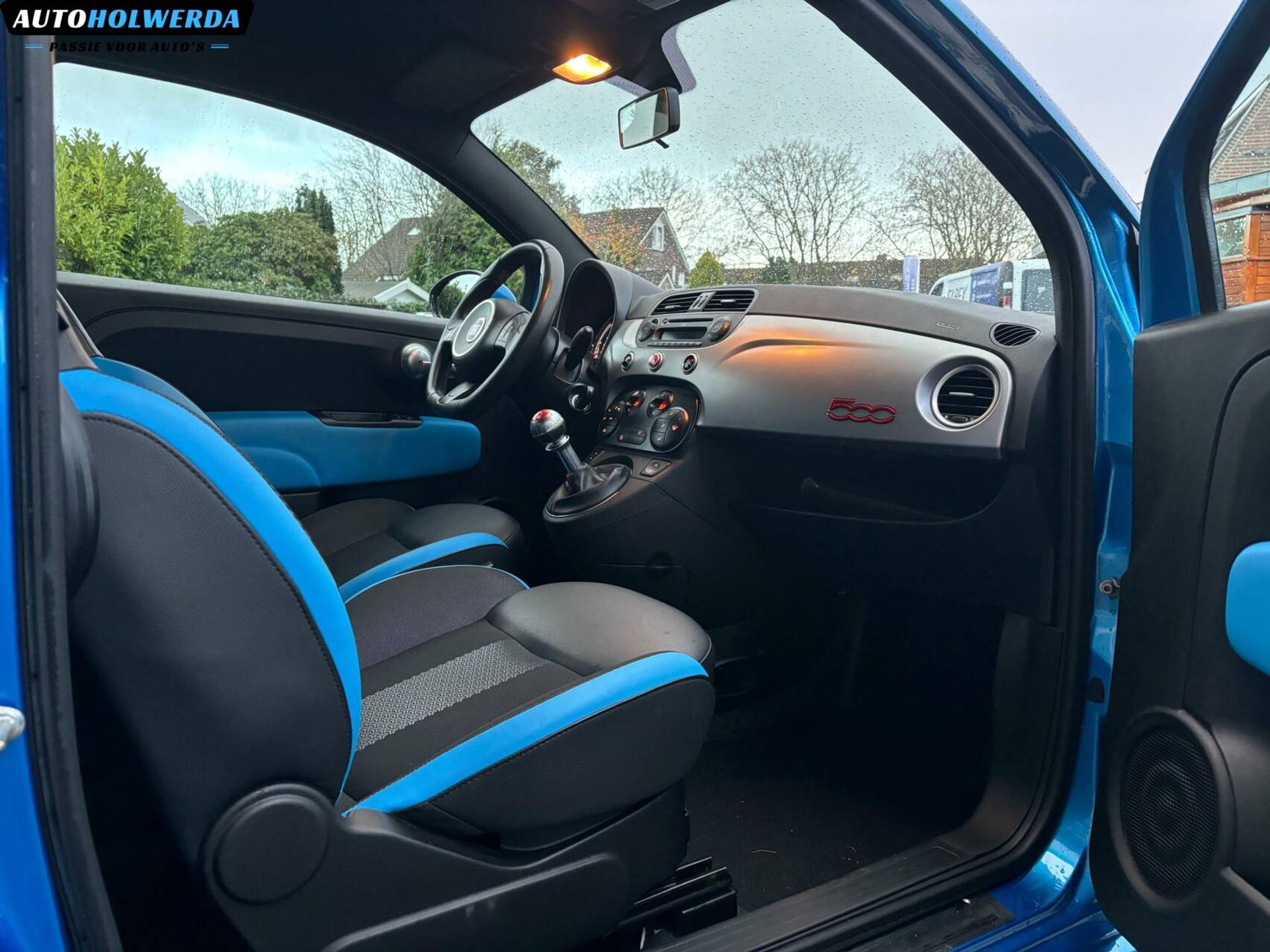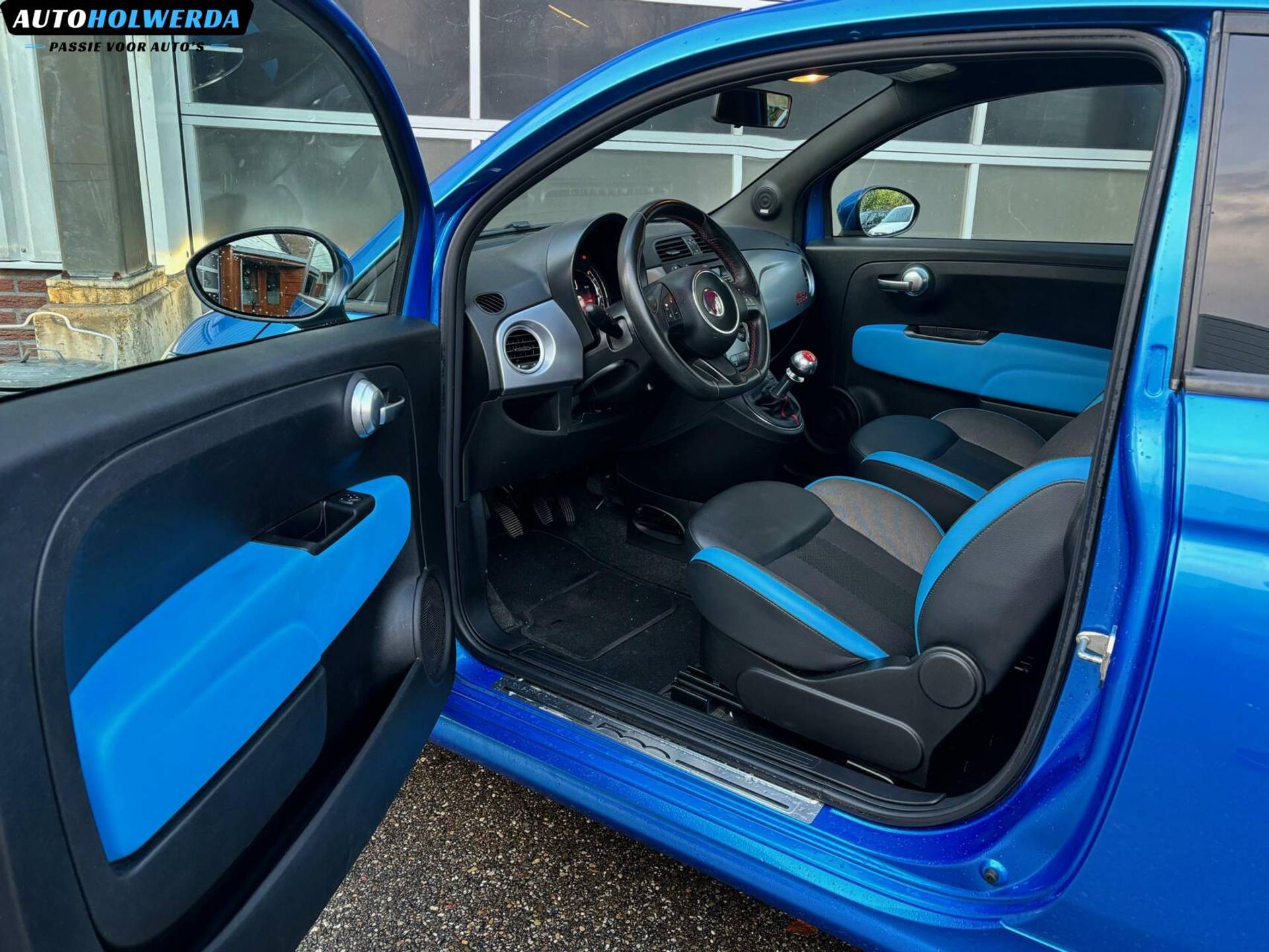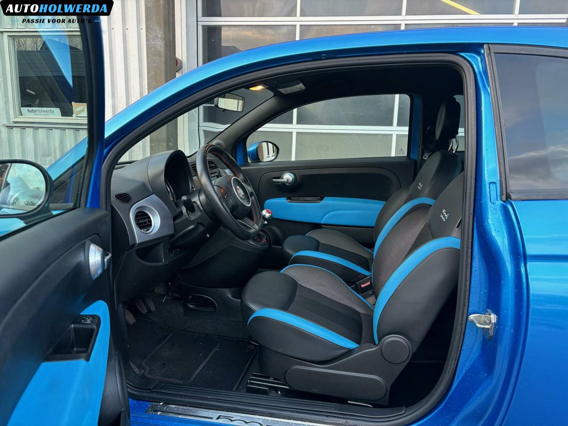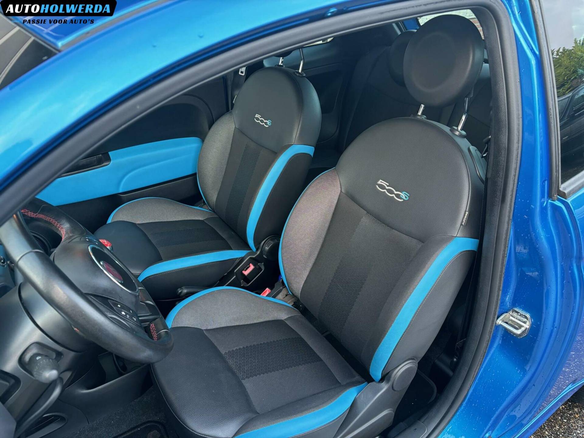 Nu een kleine 17 jaar later is deze Fiat 500 bij ons binnen gekomen, ditmaal een mooie 500S uitvoering met de fraaie blauwe exterieur kleur. Sportstoelen aan de binnenzijde.