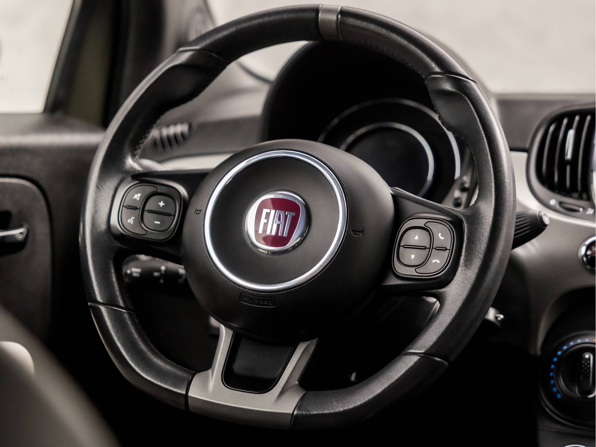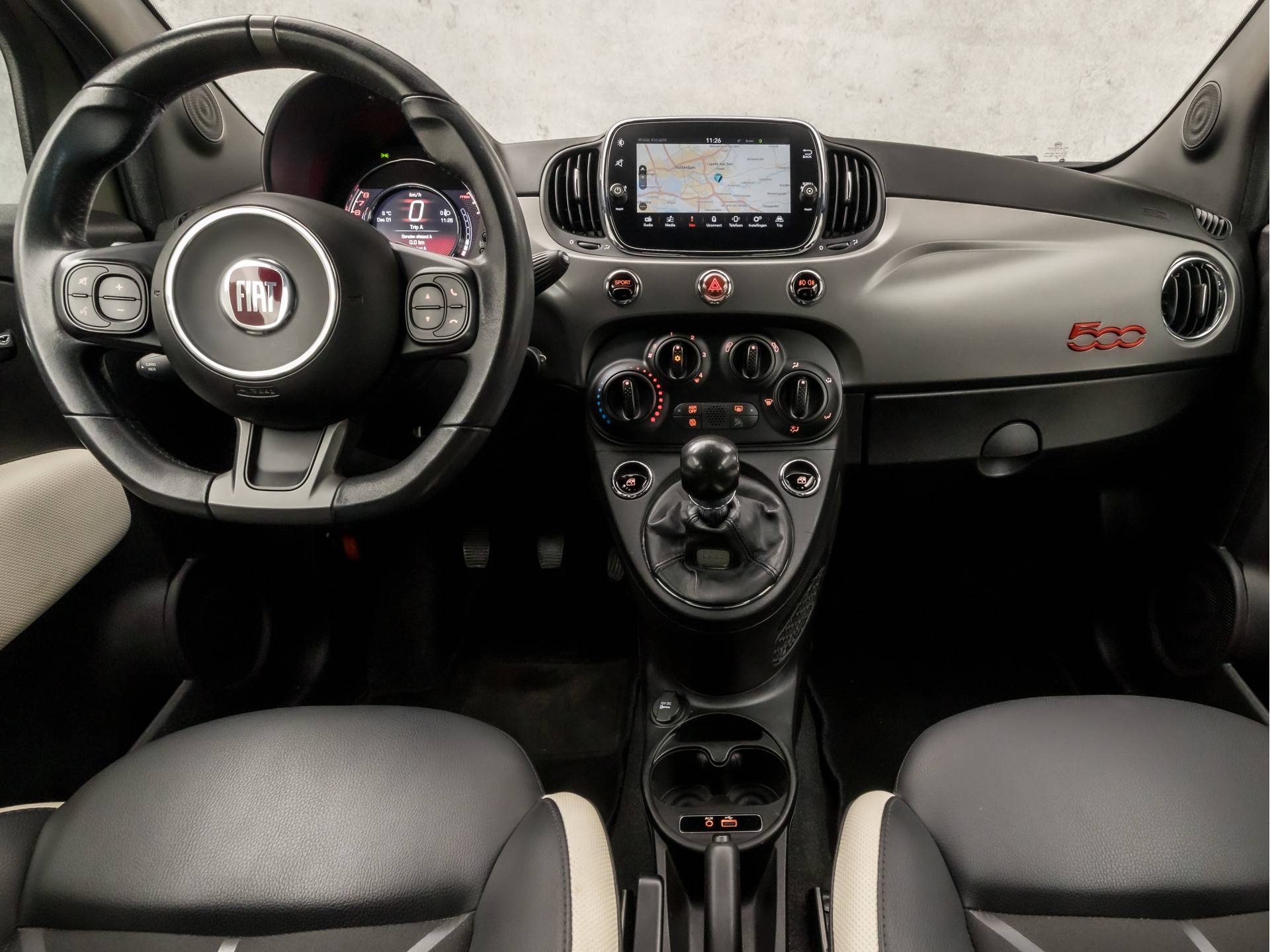 Het navigatiesysteem en het audio-installatiesysteem (met DAB-ontvangst!) bedient u met knoppen op het stuur. Aan boord van deze Fiat 500 is een achteropkomend verkeer waarschuwing voor extra veiligheid. Met de climate control selecteert u de gewenste temperatuur. Het systeem doet de rest. Geen parkeervak is te klein dankzij de assistentie van de parkeersensoren. De cruise control zorgt voor zorgeloos, ontspannen en zuinig rijgedrag. Met lederen sportstuur, isofix-aansluiting, centrale deurvergrendeling met afstandsbediening, boordcomputer en lederen versnellingspook is deze auto helemaal compleet.