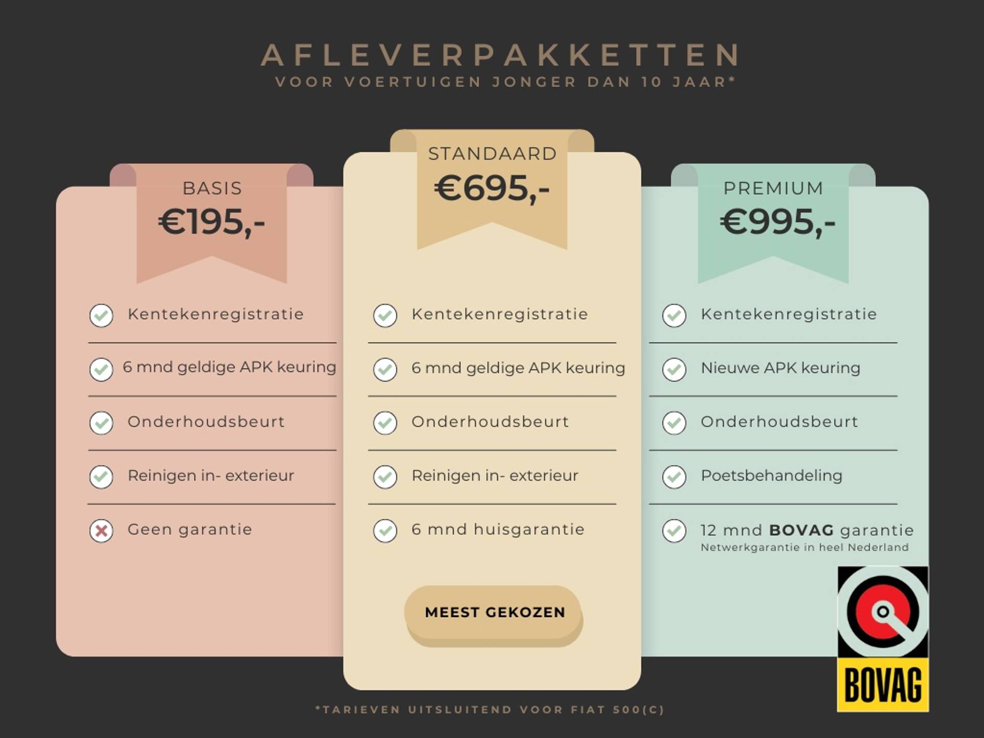 Altijd minimaal 50 jonge Fiat 500 op voorraad.
