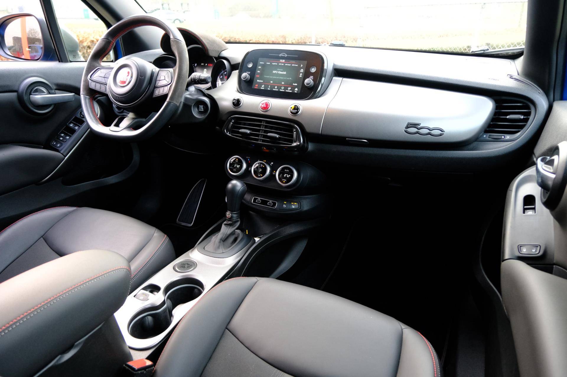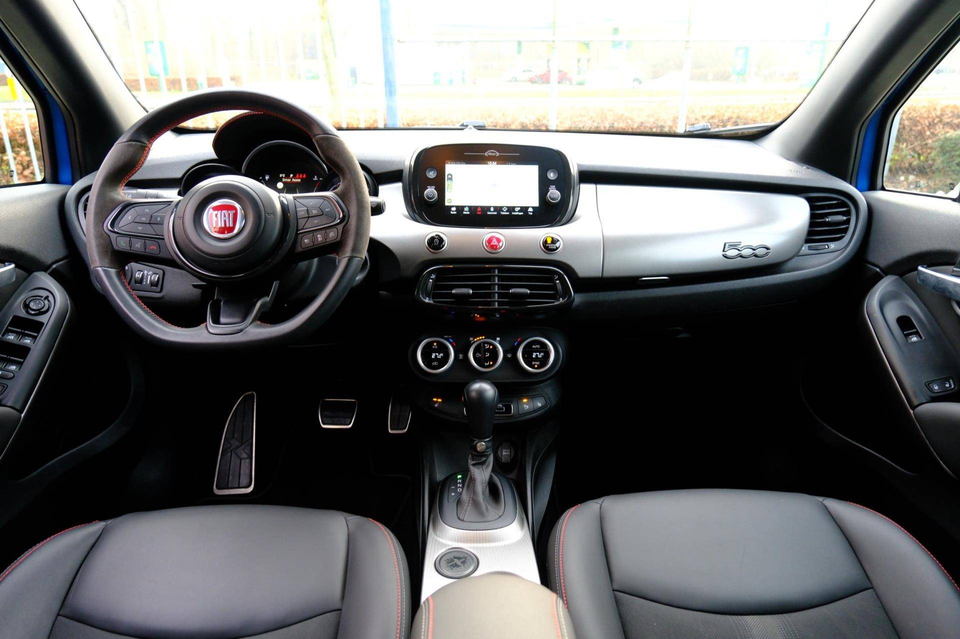 Italiaanse auto's verloochenen hun identiteit niet. Dat geldt ook voor deze Fiat 500 X. De aandrijving van deze Fiat wordt verzorgd door een viercilinder motor en een automatische transmissie. 's Winters komen de verwarmbare voorstoelen heerlijk van pas. Zijwaartse g-krachten worden solide opgevangen door de sportstoelen. Natuurlijk behoren 18 inch lichtmetalen velgen, LED koplampen, sportonderstel, warmtewerend glas, in delen neerklapbare achterbank en LED-achterlichten ook tot de uitrusting van deze complete auto.