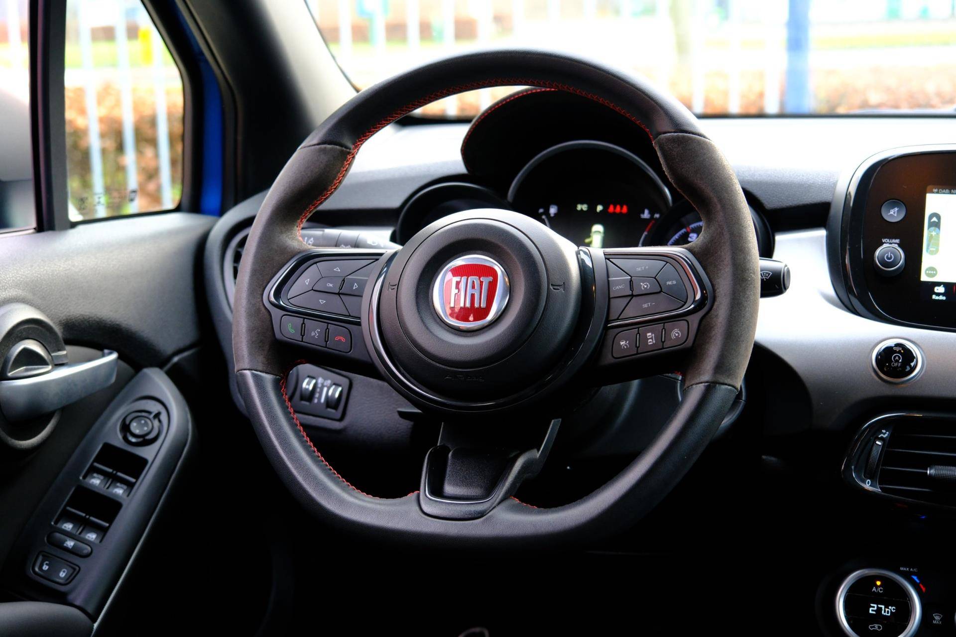 Nekkramp en verdraaide schouders zijn verleden tijd. Door de achteruitrijcamera is iedere meter achter de auto glashelder in beeld. Met adaptive cruise control houdt deze auto automatisch afstand tot uw voorligger. Voor een veilige rit is het belangrijk dat uw handen het stuur vasthouden en uw ogen gefocust blijven op de weg; daarom kunt u het audiosysteem, met DAB-ontvangst en navigatiesysteem bedienen met het stuurwiel of via spraakbediening. Dankzij automatische airconditioning is het interieur behaaglijk warm of verfrissend koel. De elektronische systemen in deze Fiat helpen u actief om comfortabeler te rijden. Een automatisch inschakelbare verlichting en een regensensor houden de omstandigheden onderweg in de gaten. Deze Fiat is voorzien van sportstuurwiel, keyless entry, automatisch dimmende binnenspiegel, boordcomputer en lederen versnellingspook.