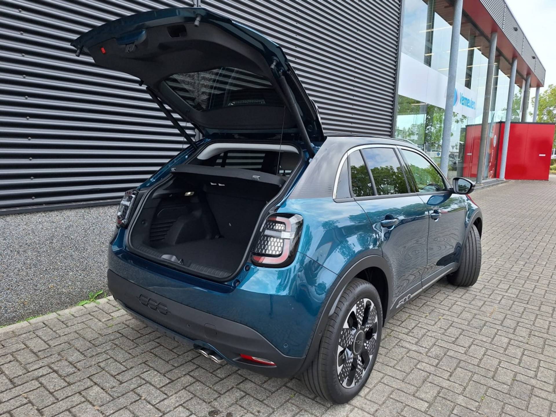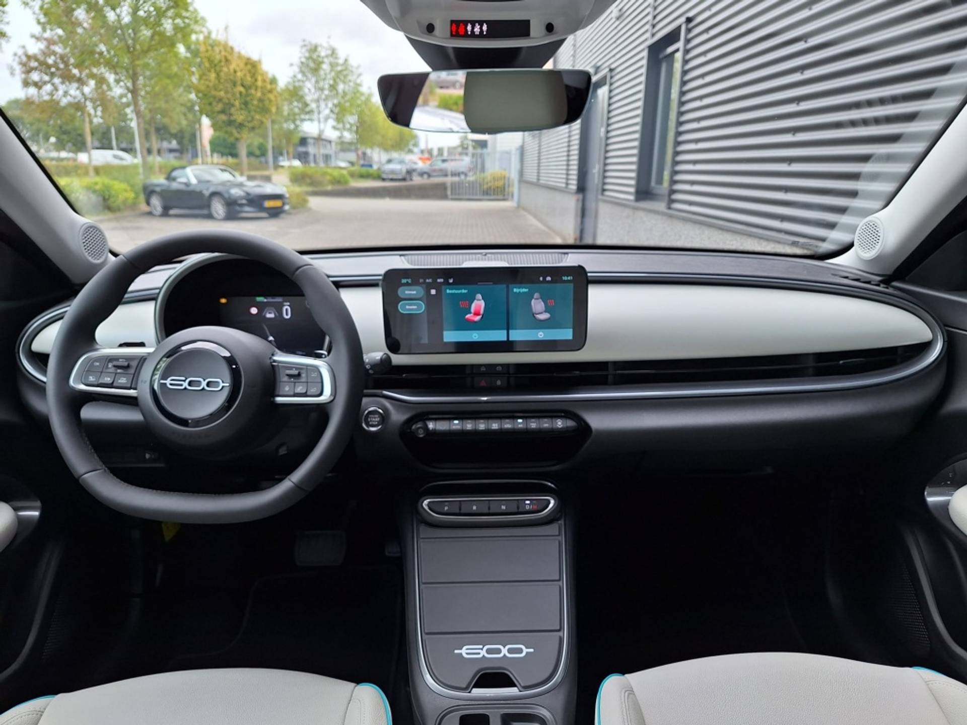 Eigenlijk gewoon nieuw, rijk uitgerust en direct beschikbaar: deze Fiat 600 Hybrid La Prima in Verde Mare met zwart dak en ivoren vegan lederen interieur.