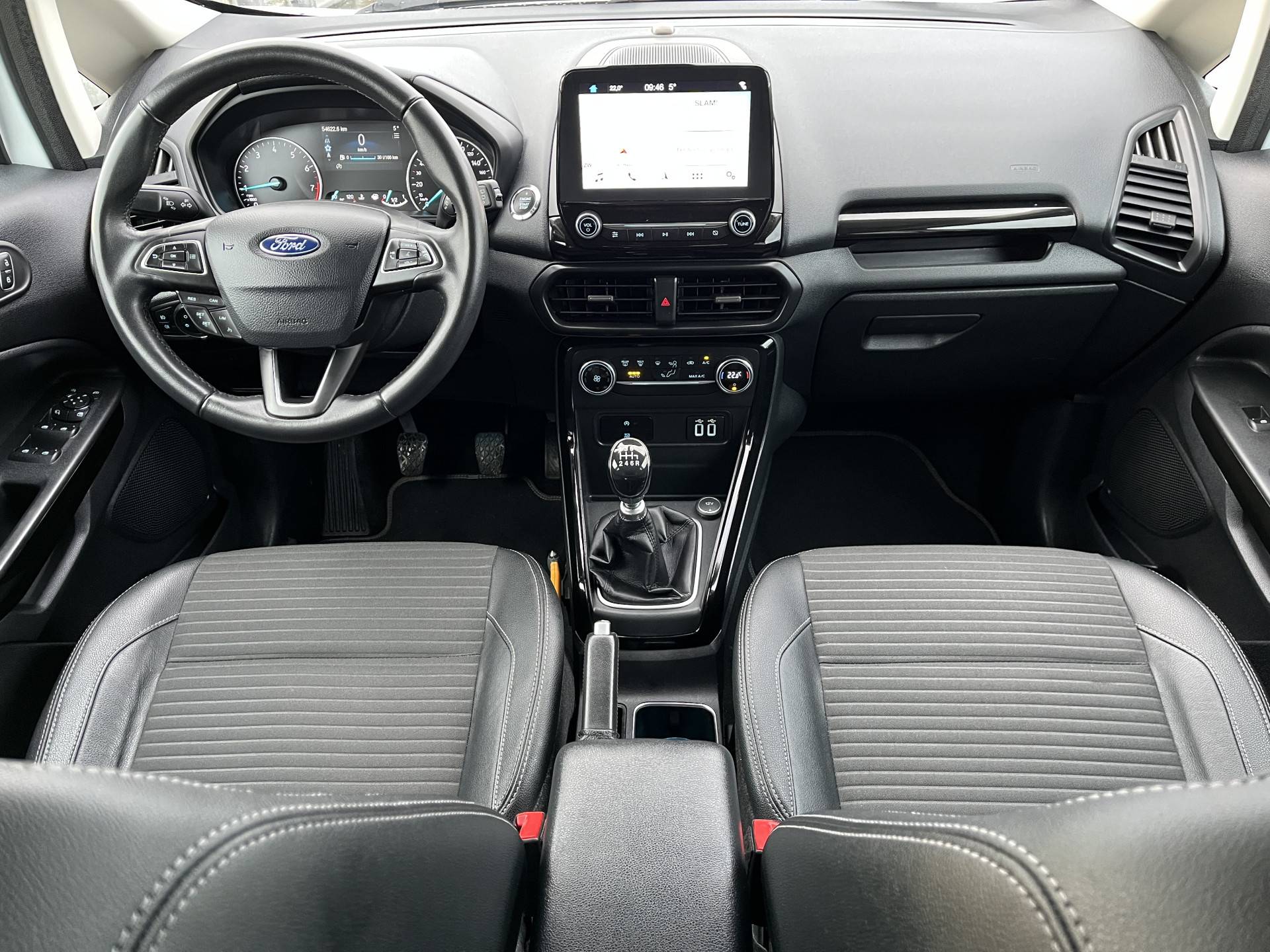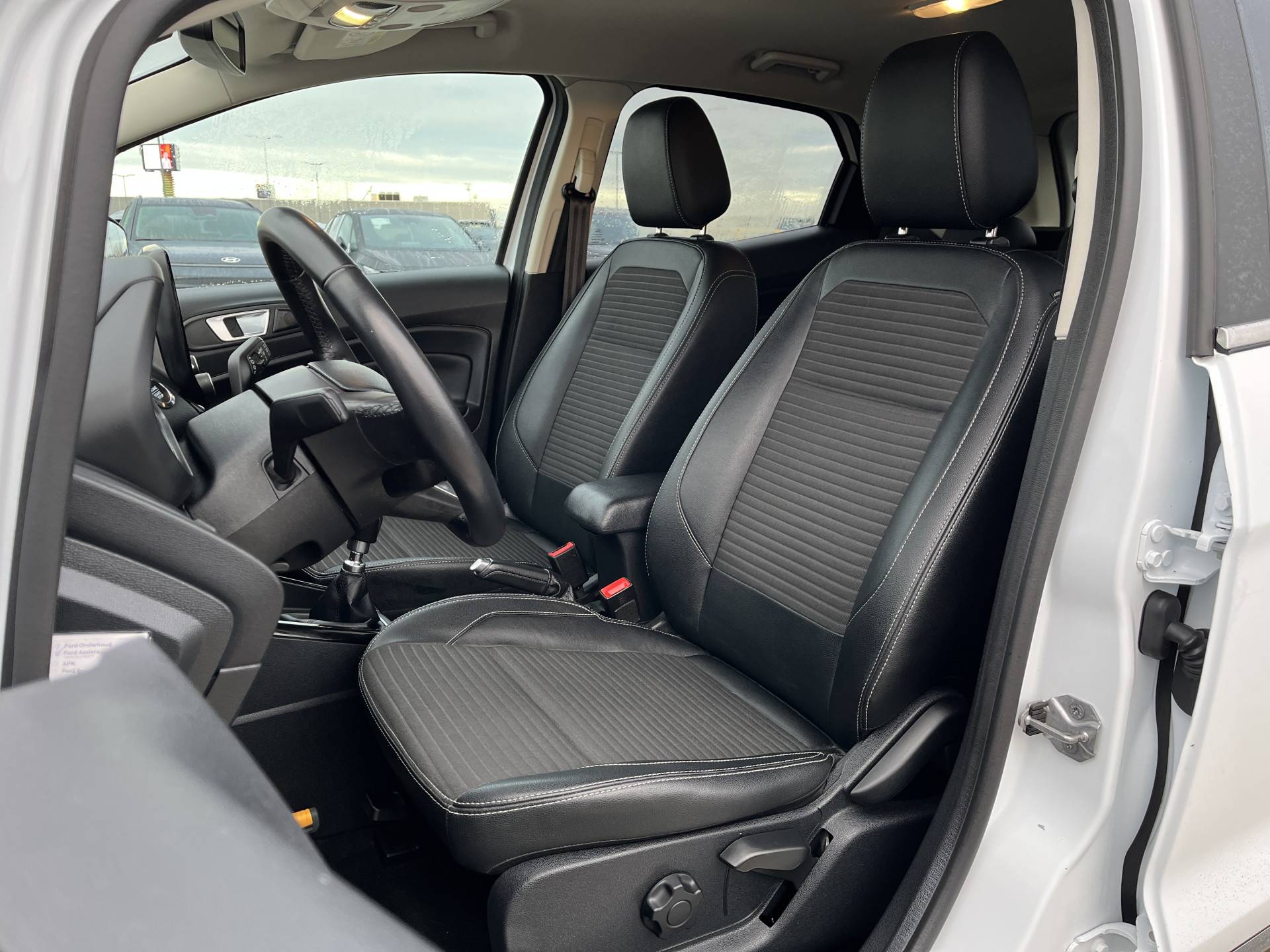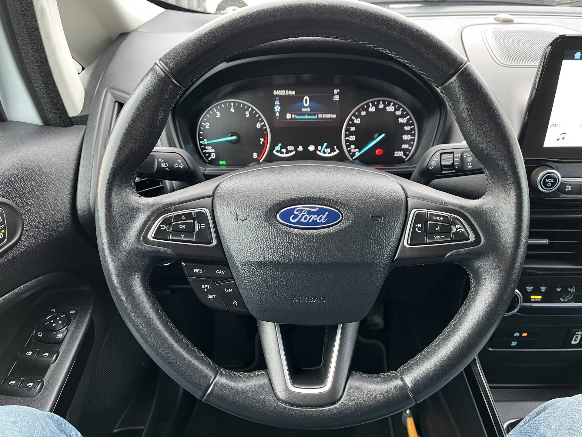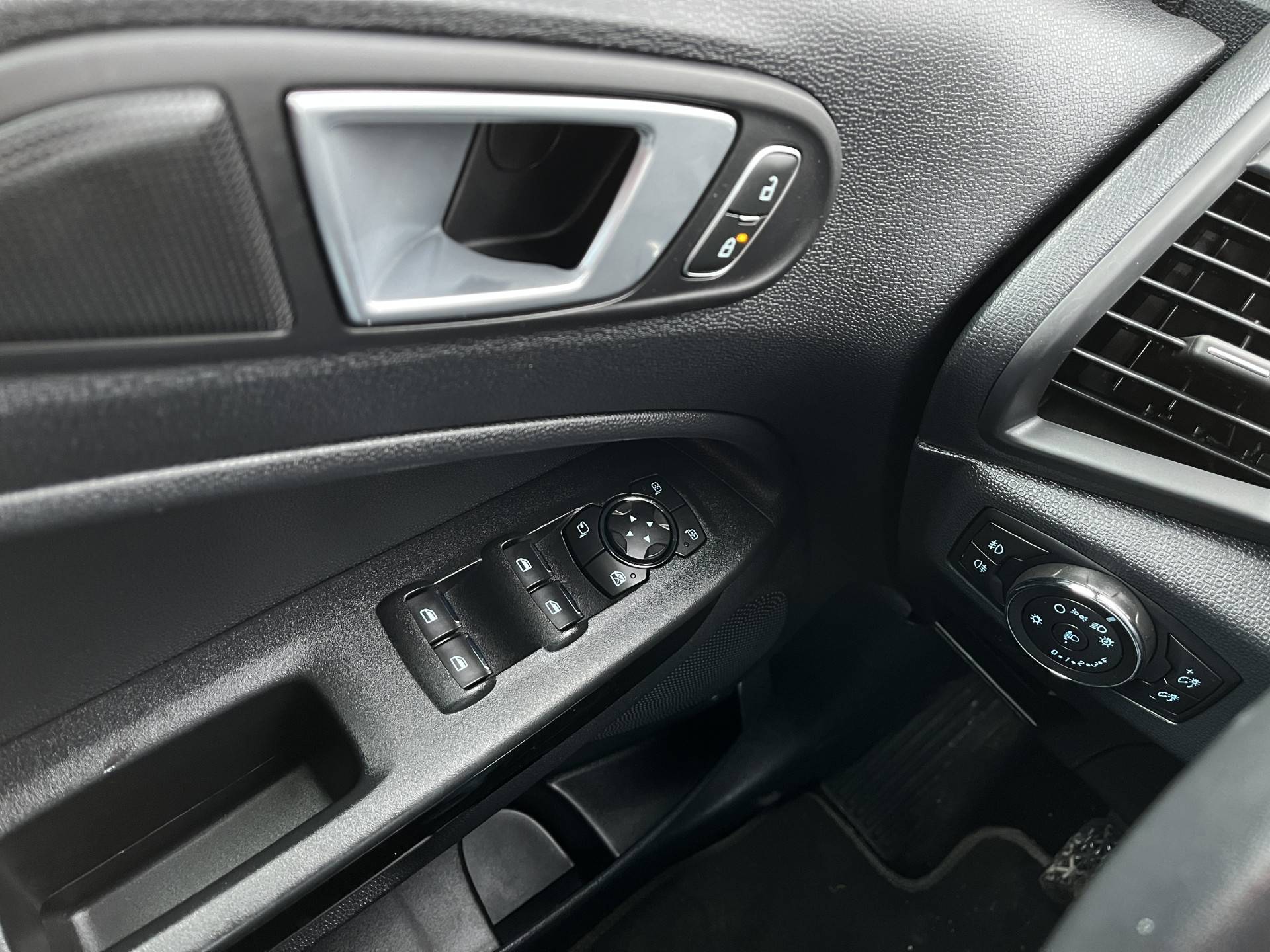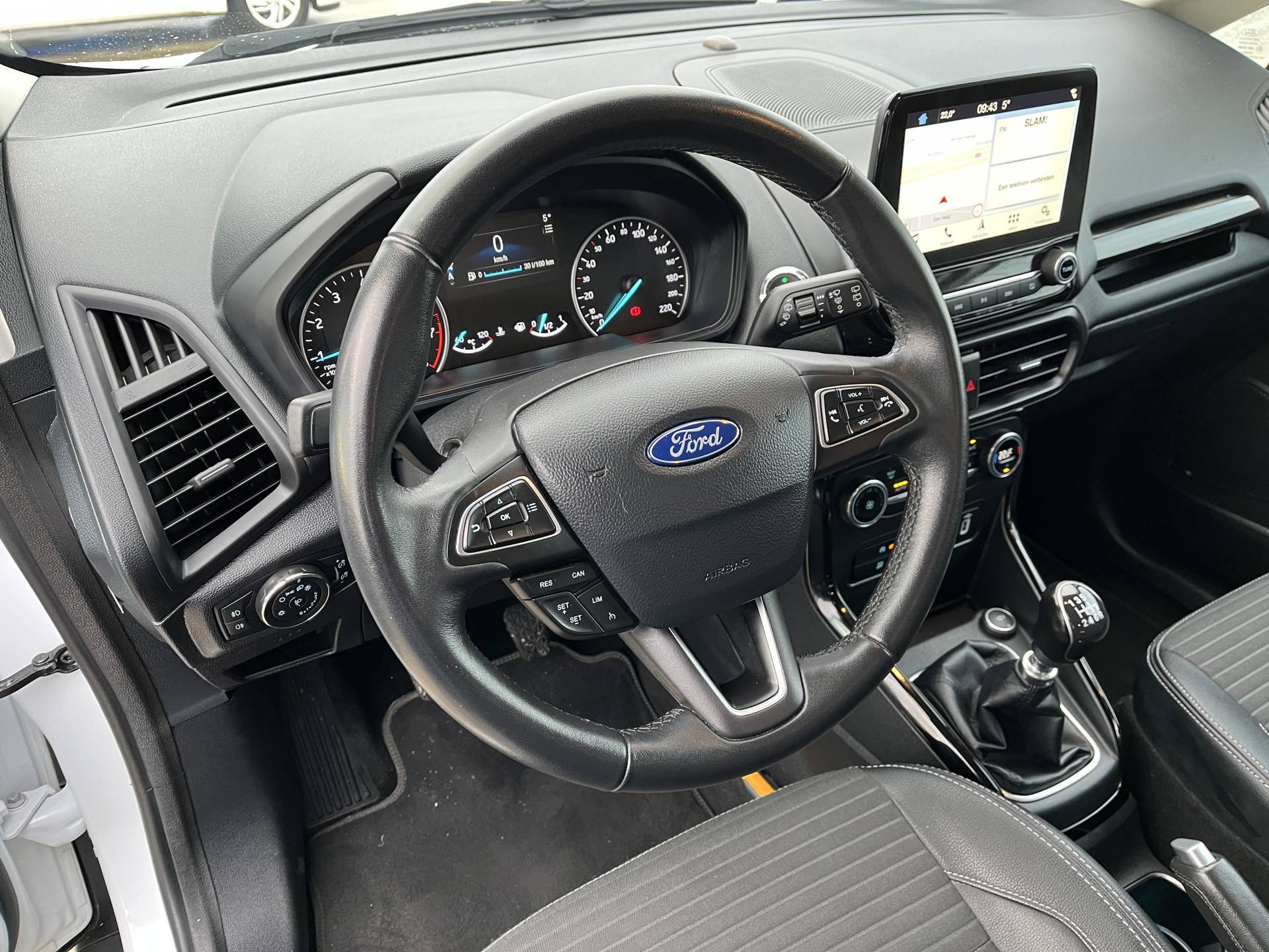 Terwijl het full map navigatiesysteem de ideale route voor jou uitstippelt, geniet jij van de kwaliteit van het audiosysteem. De bediening is bovendien gemakkelijk via knoppen op het stuur of via spraak. De automatische airconditioning zorgt voor een prettige binnentemperatuur. Je kunt bij het inparkeren natuurlijk niet aan alle kanten ogen hebben. Daarom is deze Ford EcoSport voorzien van parkeersensoren! In deze Ford kun je je concentreren op het verkeer, terwijl de auto de omgeving voor je in de gaten houdt. Een automatisch inschakelbare verlichting zorgt dat de verlichting aangaat als het donkerder wordt - in tunnels bijvoorbeeld - en de regensensor schakelt de ruitenwissers in als het nodig is. Je hoeft er niets aan te doen. Ook op de korte stukken is de cruise control een uitkomst. Kijk maar bij de benzinepomp! De uitrusting van deze auto is met automatisch dimmende binnenspiegel, lederen stuur, centrale deurvergrendeling met afstandsbediening, boordcomputer en lederen versnellingspook behoorlijk compleet.