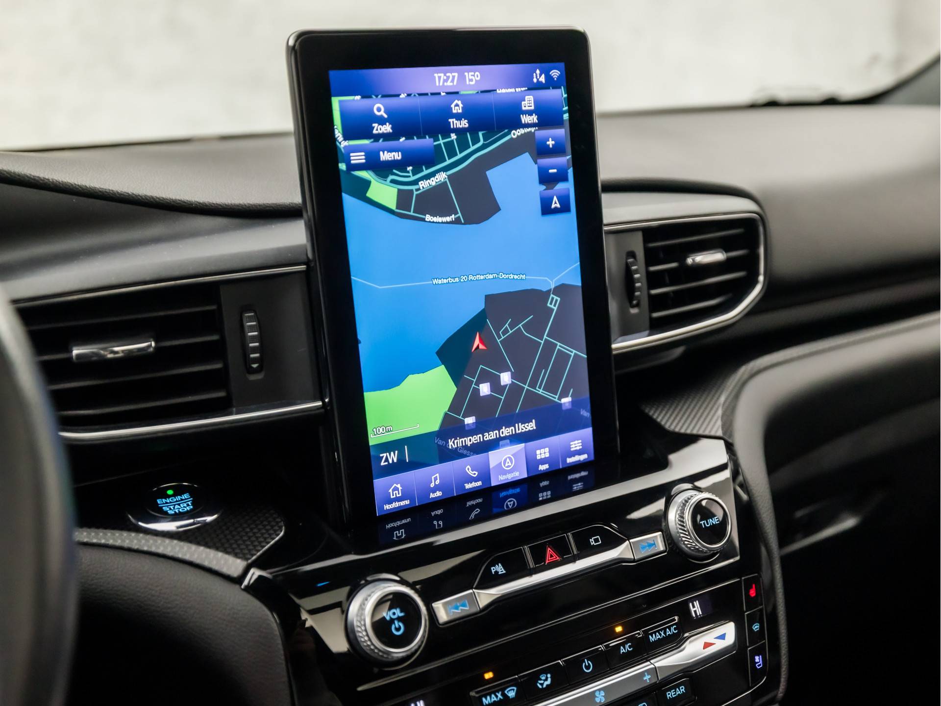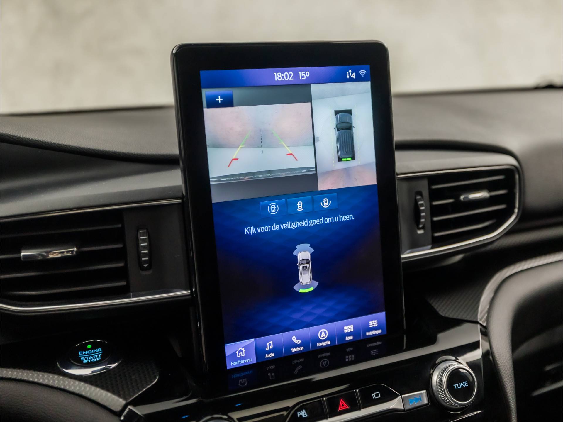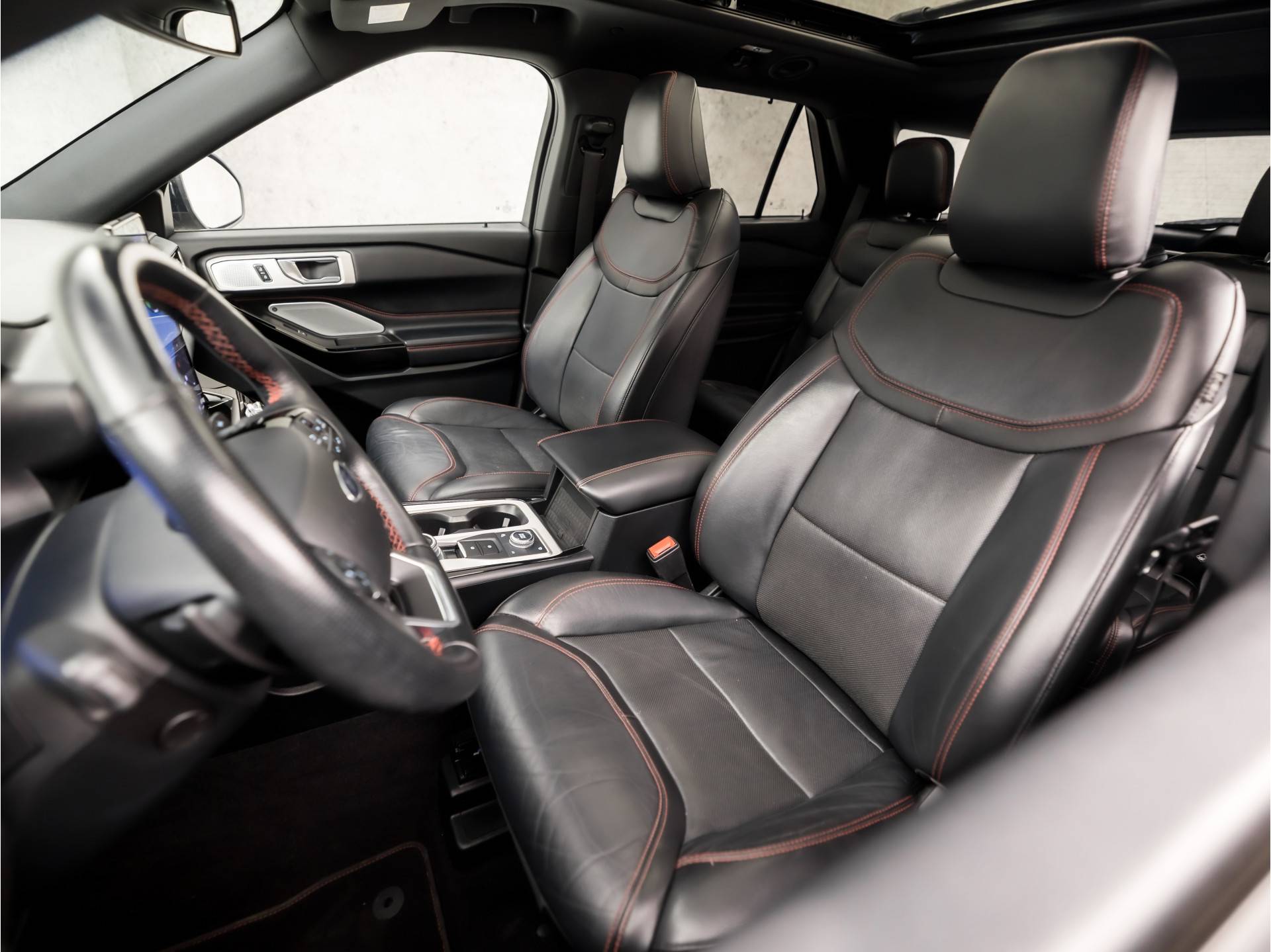 Natuurlijk brengt het digitale dashboard alle ritinformatie perfect in beeld. Maar ook communicatie, navigatie en tal van andere functies zijn permanent te volgen. De functie van deze 360 graden camera is vooral nuttig in smalle straatjes waar het zicht beperkt is. Adaptive cruise control houdt de ingestelde snelheid vast en houdt afstand tot het voertuig voor u. Deze Ford Explorer is voorzien van remote services. Via uw smartphone bedient u diverse functies ook op afstand en krijgt u informatie over de status van uw auto. Het high performance audiosysteem produceert krachtige bassen en heldere hoge tonen. Met met leder bekleed dashboard, dashboard met spraakbediening, full map navigatiesysteem, WIFI-hotspot, achteropkomend verkeer waarschuwing en automatische airconditioning is deze Ford helemaal compleet.