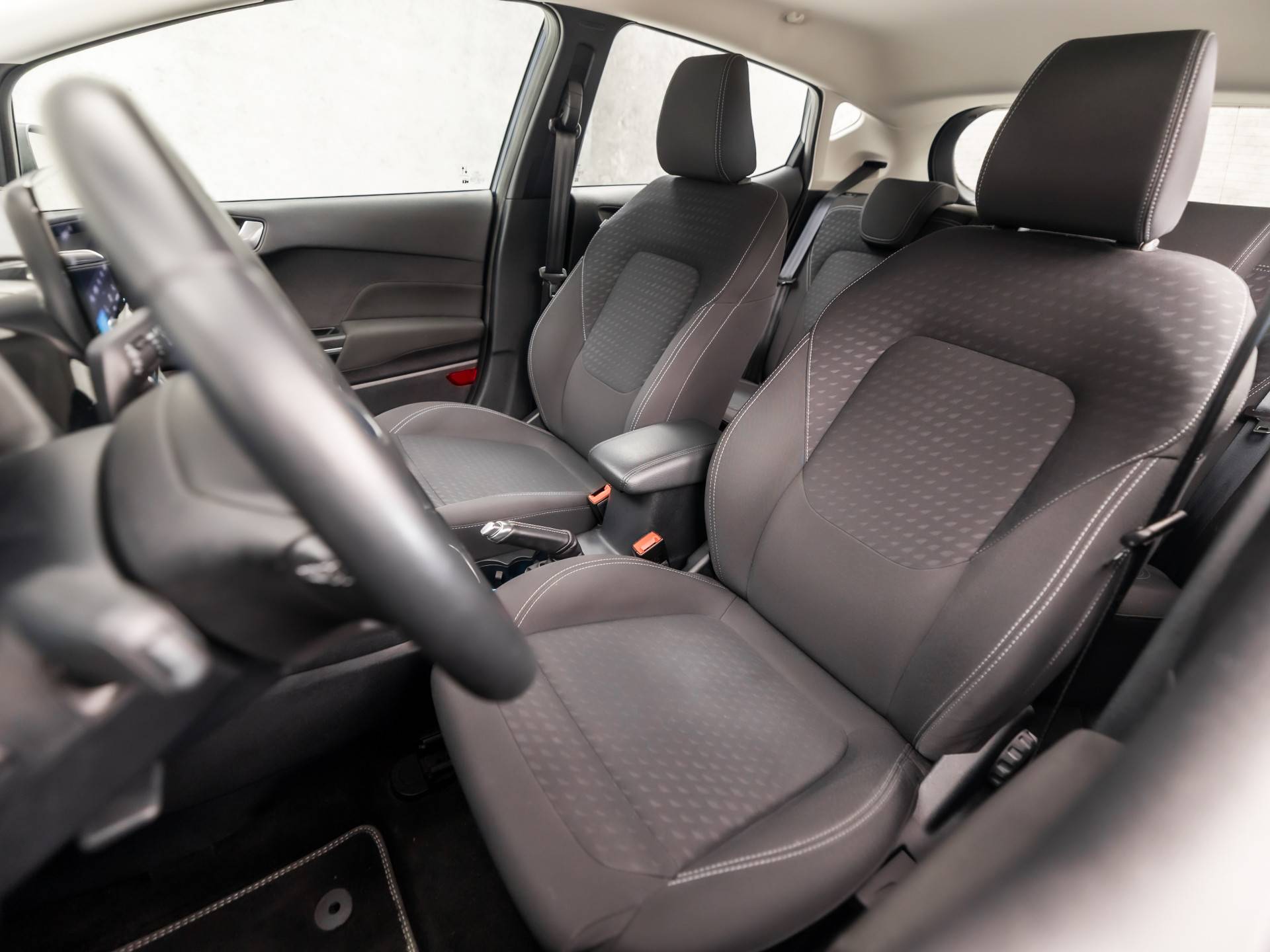 De nieuwste veiligheidssystemen komen in deze Ford Fiesta samen. De camera van de verkeersborddetectie herkent verschillende soorten verkeersborden en toont deze op het dashboard. Een camera houdt de juiste koers binnen de rijstrook in de gaten en het Lane-keeping systeem corrigeert bij afwijkingen. Met de vermoeidheidsassistent bent u ook op lange ritten veilig op pad. Het systeem geeft een waarschuwing zodra het tijd is voor een pauze. De veiligheid van deze auto wordt verder verhoogd door hill hold functie, brake assist en bandenspanningcontrolesysteem.