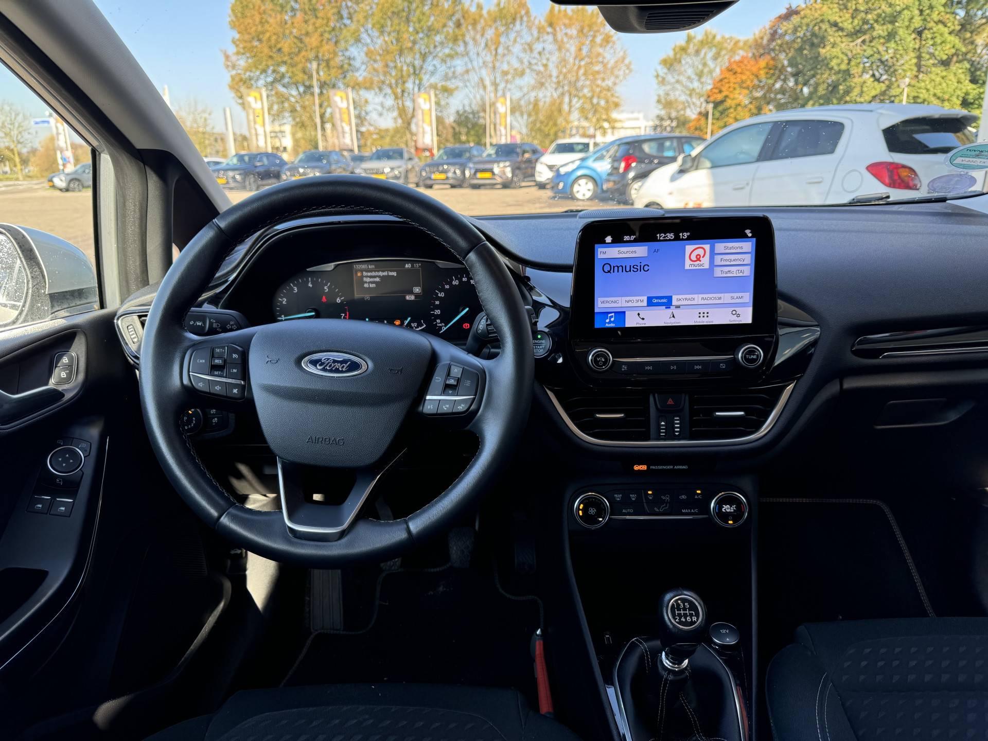 Spraaksturing is onderdeel van de uitrusting van deze auto. Met uw stem kunt u de belangrijkste voertuigfuncties bedienen. Kilometerstand? Oliepeil? Accuspanning? Allemaal te zien via de app. Overal. Altijd. Dankzij Connected Services. Nooit meer te warm of te koud. De automatische airconditioning zorgt altijd voor de temperatuur die u kiest. Het drukke verkeer eist onderweg al uw aandacht op. Daarom is het goed dat deze Ford is voorzien van diverse systemen die u assisteren tijdens de rit. Een automatisch inschakelbare verlichting neemt het waar als het donker wordt of gaat schemeren, en schakelt dan automatisch de verlichting in. Op dezelfde manier "ziet" de regensensor de eerste spatjes regen en schakelt dan de ruitenwissers in, en als het harder gaat regenen zet hij de ruitenwissers ook in een snellere stand. U bedient de cruise control eenvoudig zonder uw handen van het stuur te halen. Ook is de Ford uitgerust met: automatisch dimmende binnenspiegel, lederen stuur, centrale deurvergrendeling met afstandsbediening, boordcomputer en lederen versnellingspook.