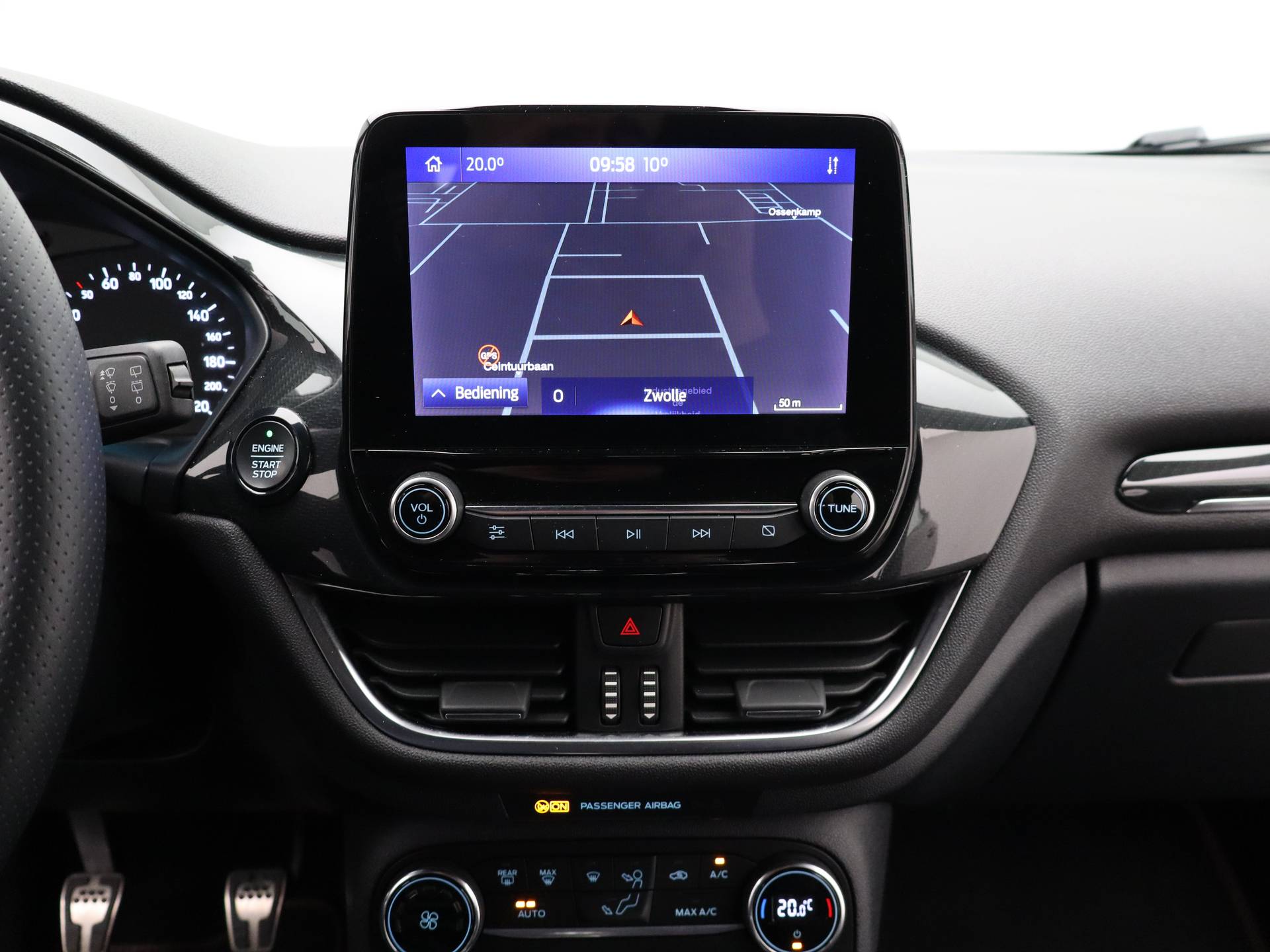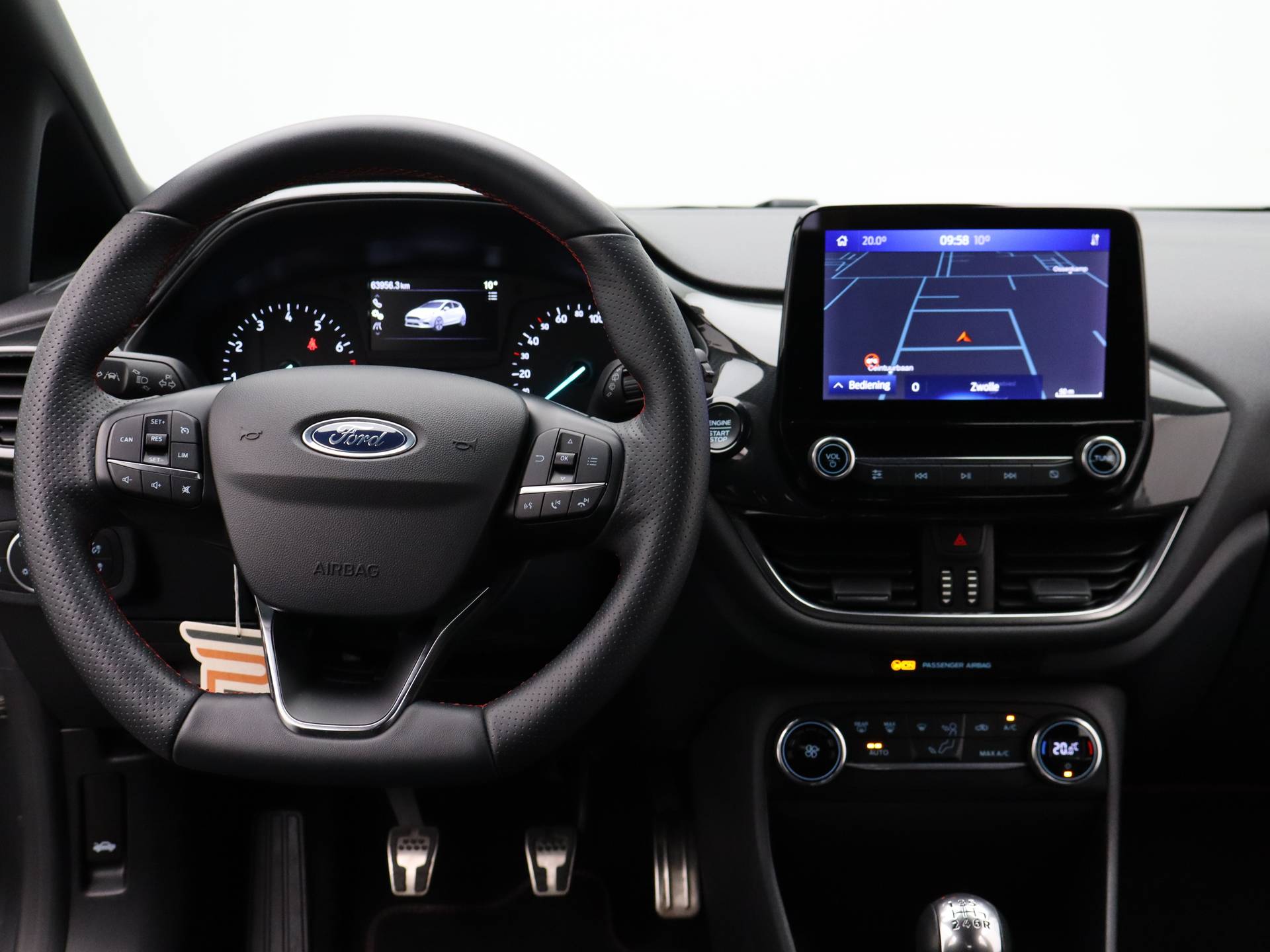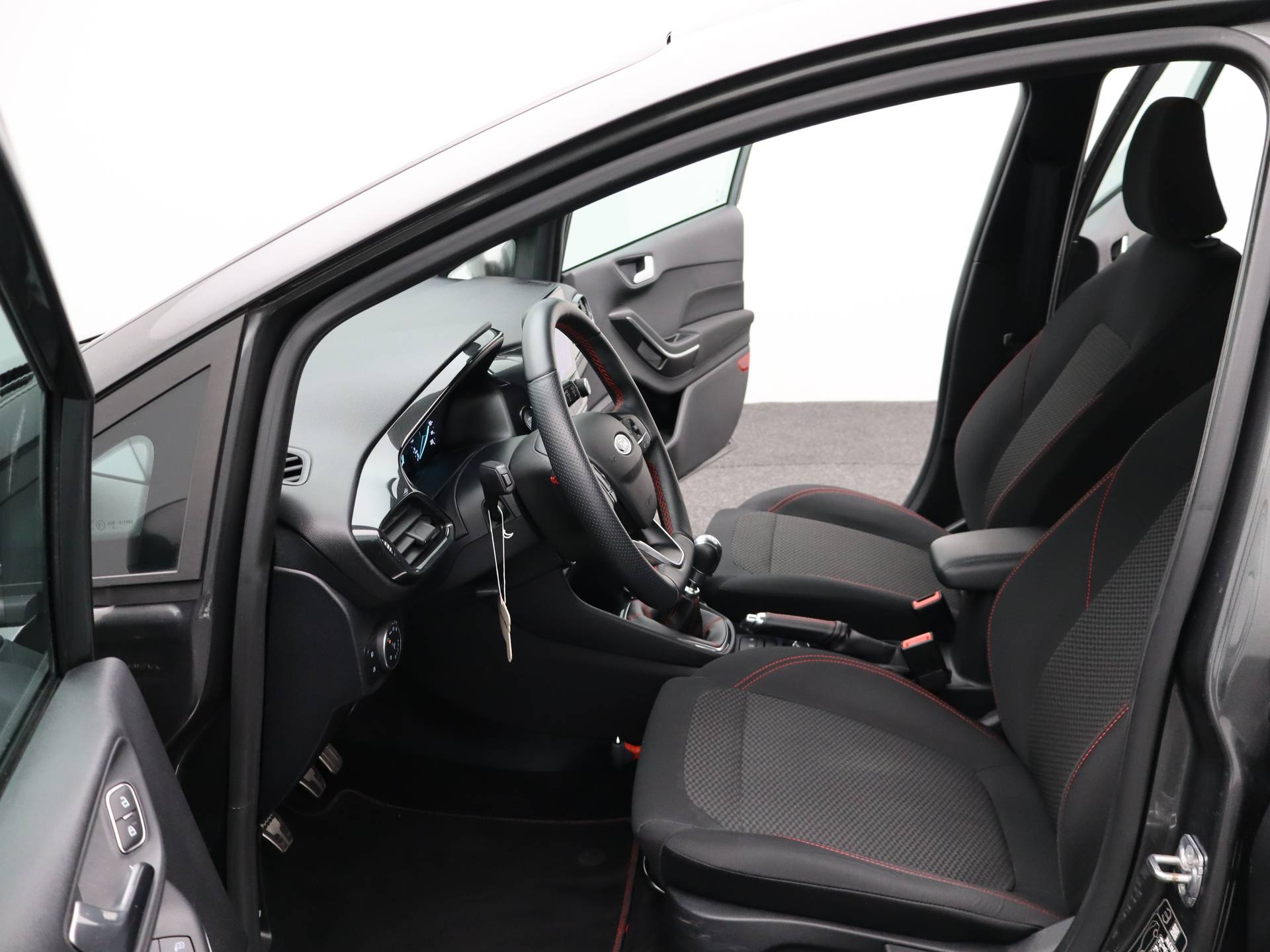 Combineer de functionaliteit van een gezinsauto met de prestaties van een sportwagen, en je krijgt deze sportieve Ford Fiesta. Hij heeft een benzinemotor en een handgeschakelde zesversnellingsbak. In het interieur domineren de sportstoelen, die er niet alleen stijlvol uitzien, maar die u ook optimaal ondersteunen tijdens de rit. Tot de voorzieningen van deze auto behoren 17 inch lichtmetalen velgen, sportonderstel, LED-dagrijverlichting, in delen neerklapbare achterbank, LED-achterlichten en verstelbare lendensteunen. De jeugd is niet los te maken van hun smartphone, en dat zie je ook aan deze jonge auto. Via een speciale app staat u overal en altijd in contact met uw vierwieler. Superhandig! Deze Ford is voorzien van spraakbediening voor het audiosysteem met DAB-ontvangst. Maar u kunt ook de knoppen op het stuur gebruiken. De achteropkomend verkeer waarschuwing geeft een signaal als degene achter u te dicht op u zit. Ook handig en veilig bij het wisselen van rijbaan. Of het buiten nu warm is of koud, dankzij automatische airconditioning is het binnen altijd behaaglijk. Parkeersensoren zijn een handig hulpmiddel om parkeerschades te voorkomen. En dan is deze auto ook nog eens voorzien van regensensor, cruise control, sportstuurwiel, automatisch dimmende binnenspiegel, centrale deurvergrendeling met afstandsbediening en boordcomputer. Zoals u mag verwachten van deze Ford Fiesta is hij uitgerust met een reeks aan actieve veiligheidssystemen. Het Lane-keeping systeem doet precies wat nodig is: waarschuwen en corrigeren bij onbedoelde overschrijding van de rijstrooklijnen. Vermoeidsheidsherkenning neemt tekenen van vermoeidheid waar bij de bestuurder. Het systeem voorkomt dat er daardoor ongelukken gebeuren. Een noodsituatie? Dan is remmen cruciaal. Daarom heeft deze Ford Fiesta Brake Assist als remondersteuning. De auto is ook uitgerust met hill hold functie en bandenspanningcontrolesysteem. Natuurlijk kunt u de kwaliteiten van deze auto pas echt beoordelen na een proefrit. Neem nu contact met ons op, dan zetten wij hem voor u klaar.