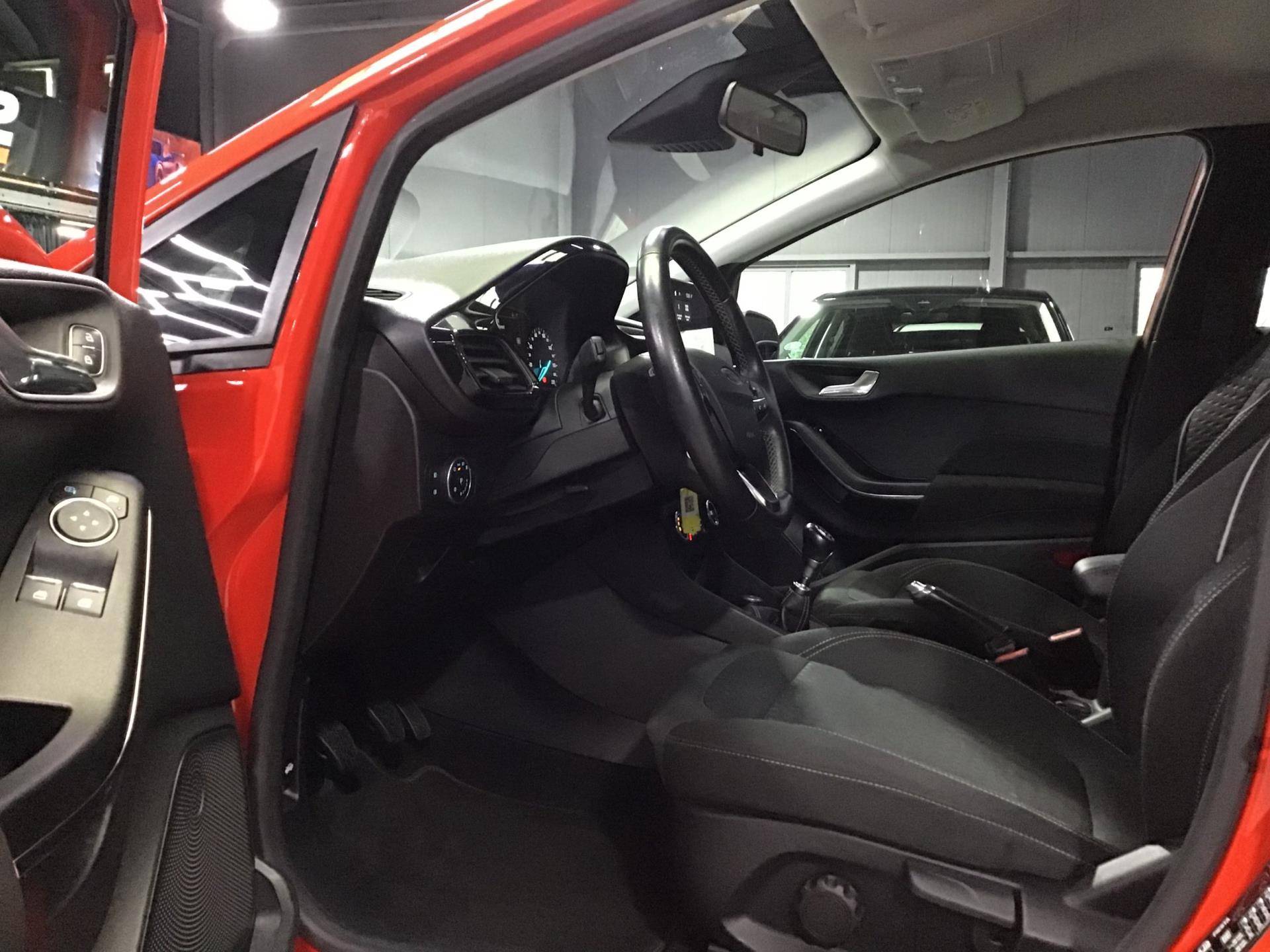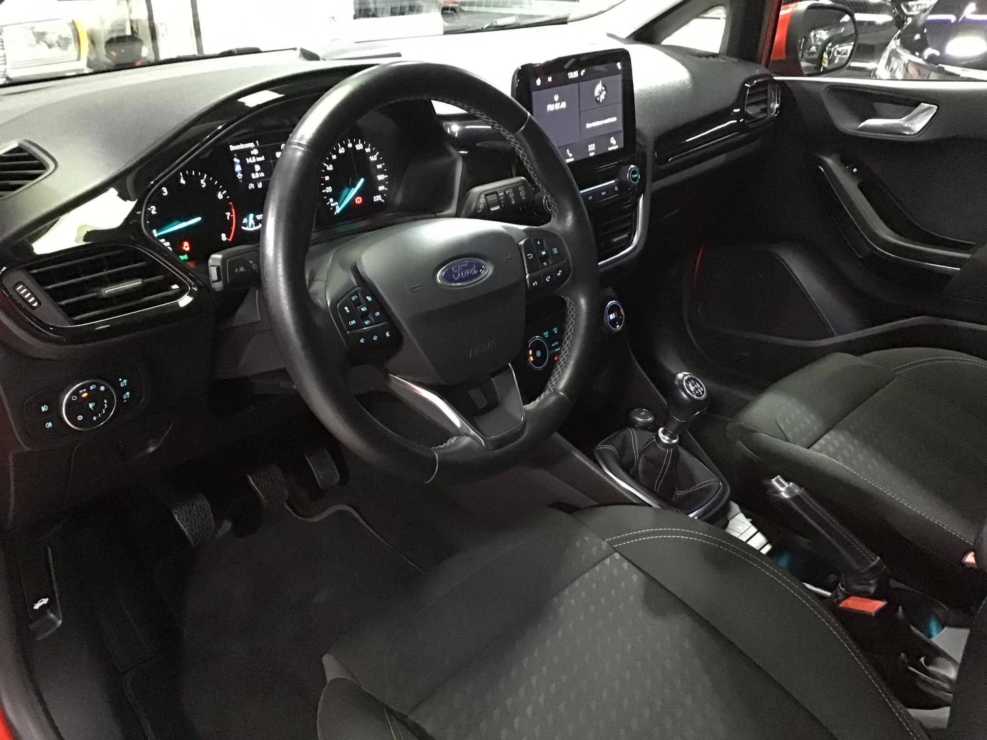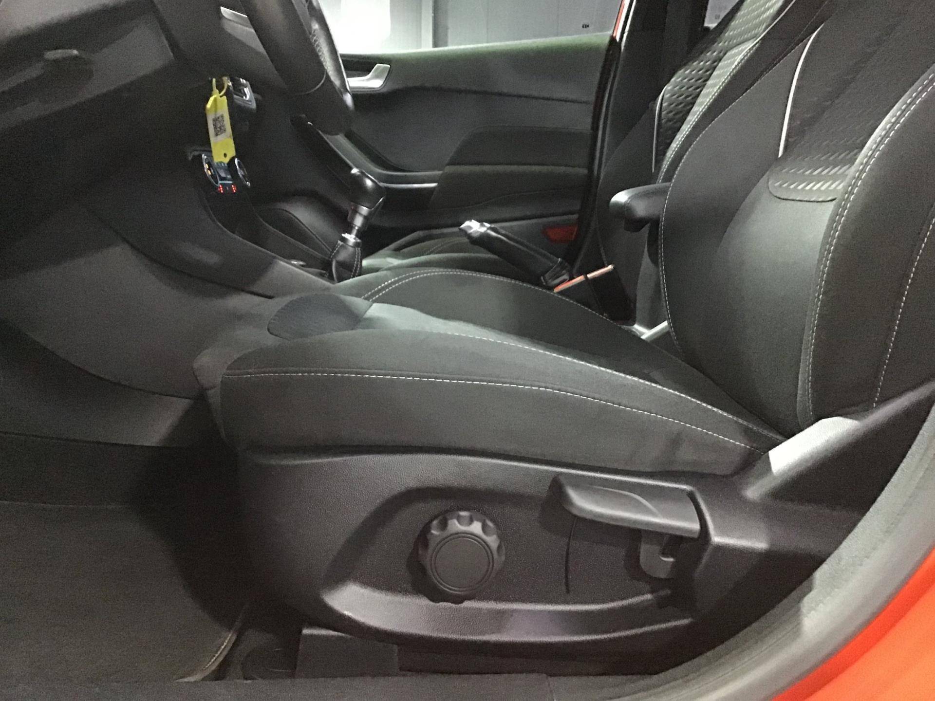Neem plaats in de cockpit, start de motor en voel het vermogen. Met deze sportieve Ford FIESTA hebt u altijd de controle. De aandrijving van deze Ford wordt verzorgd door een driecilinder motor en een handgeschakelde zesversnellingsbak. De verwarmbare voorstoelen zijn een heerlijke extra optie, waarmee u uzelf en uw bijrijder een groot plezier doet. Voor het pittige uiterlijk én goed gesteund zitten zorgen de sportstoelen. Geen gekleum meer in de koude dagen. Het verwarmd stuurwiel voelt als een weldaad na het ijskrabben. Ook 16 inch lichtmetalen velgen, LED-dagrijverlichting, dakspoiler, in delen neerklapbare achterbank, LED-achterlichten en verstelbare lendensteunen horen tot de voorzieningen op deze auto.