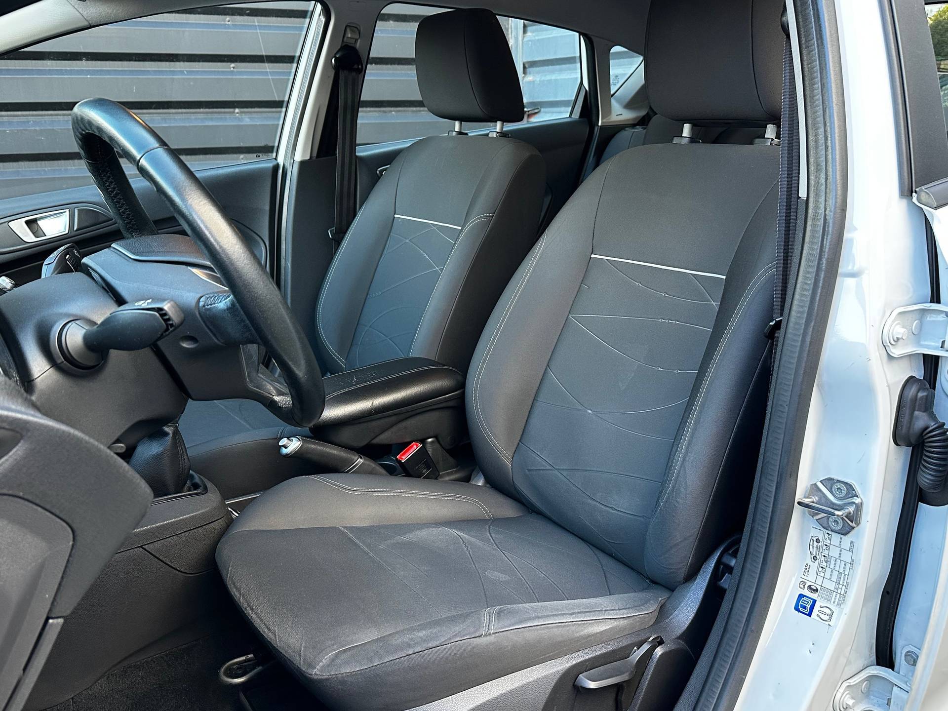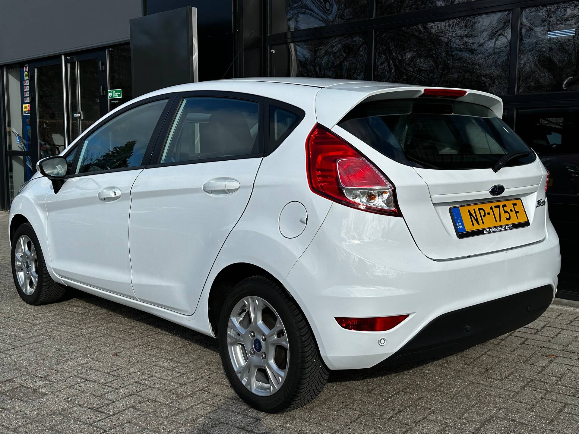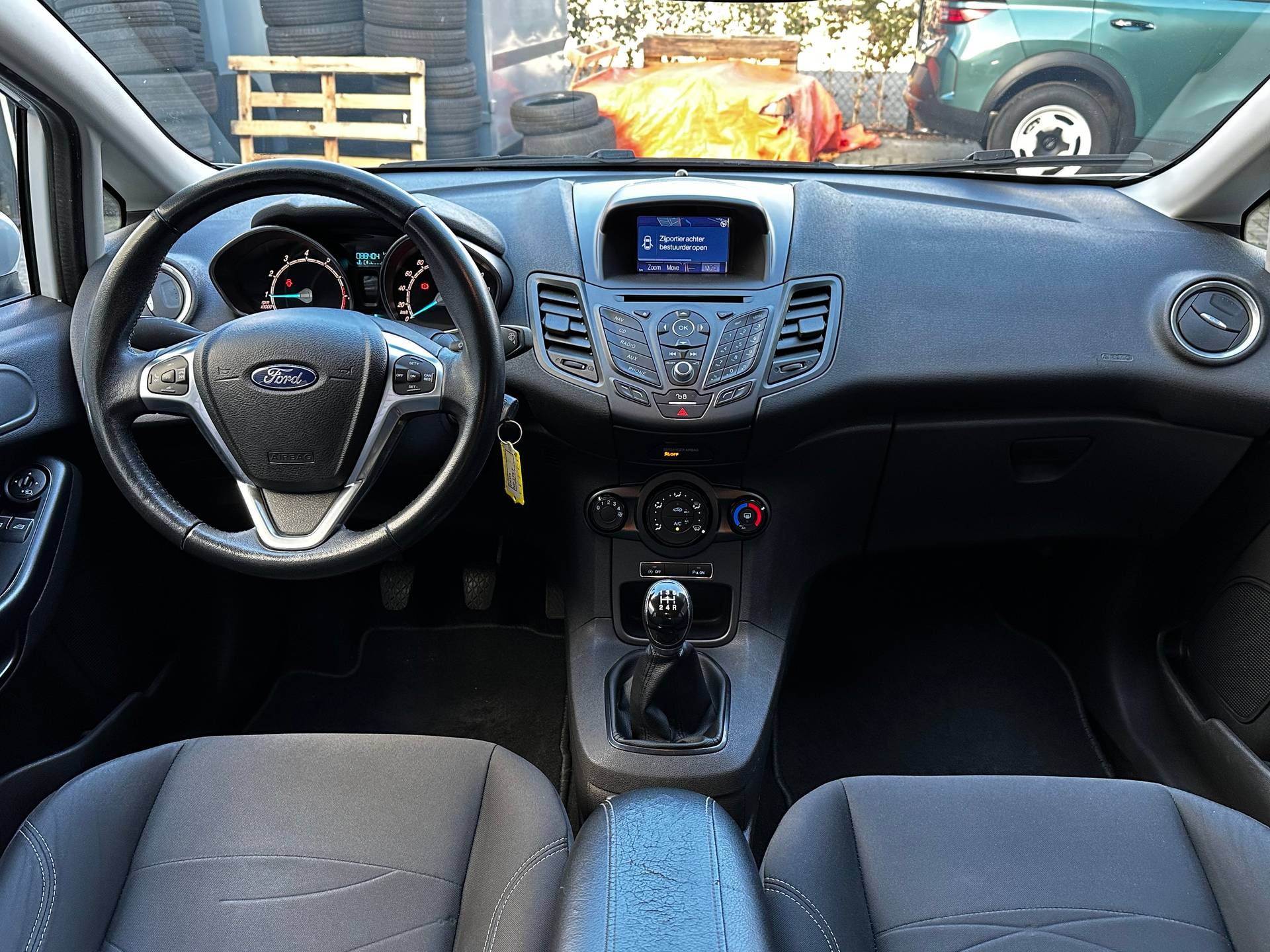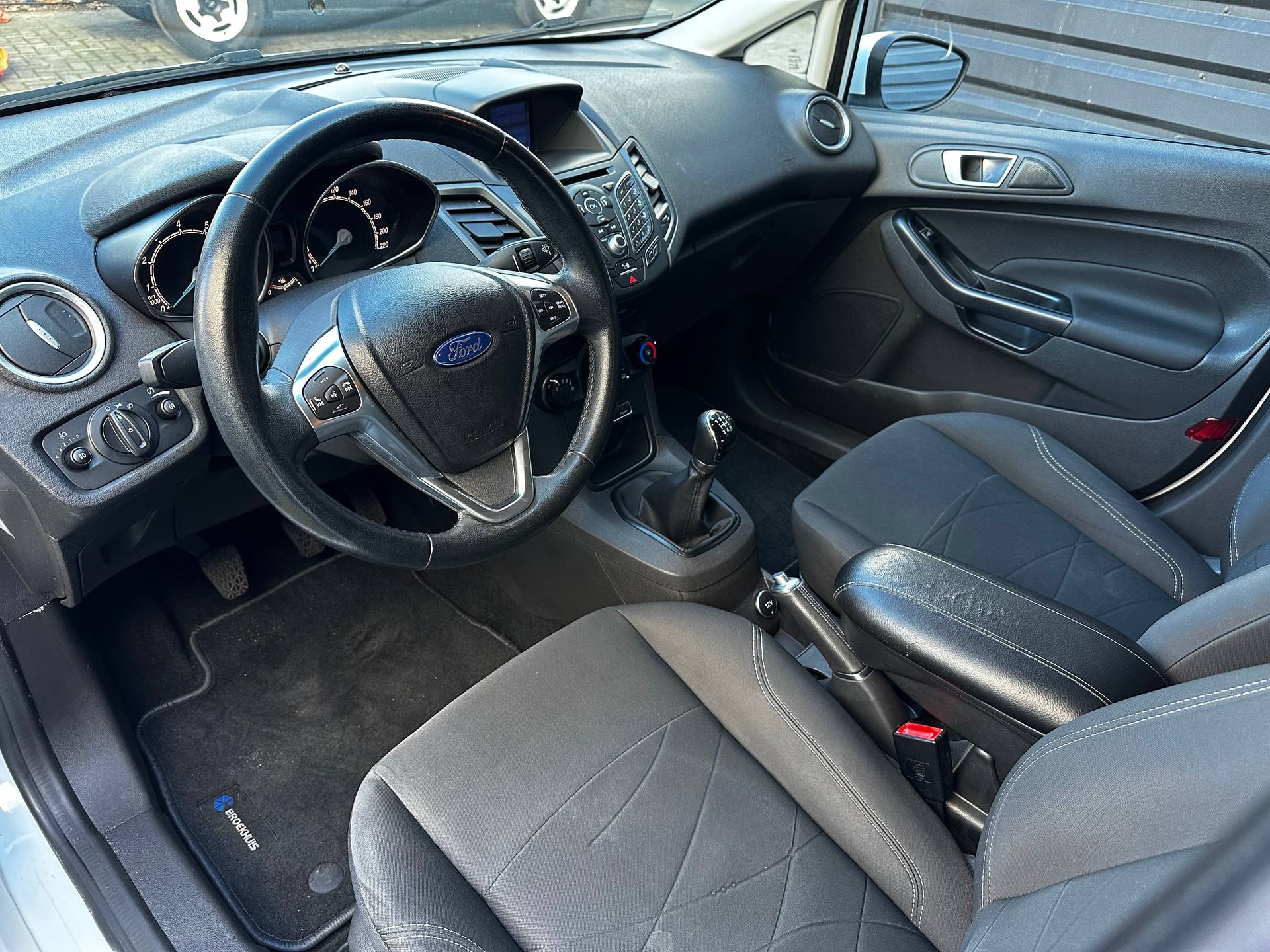 Dit is een fijne, compacte auto die u desondanks zal verrassen door de geboden ruimte. Met zijn benzinemotor en handgeschakelde vijfversnellingsbak is dit een prima auto voor nog vele kilometers. Verder is de Ford uitgerust met: 15 inch lichtmetalen velgen, LED-dagrijverlichting en in delen neerklapbare achterbank. Audiosysteem en navigatiesysteem zijn gecombineerd. Zo wordt zelfs gesproken route-informatie een luisterervaring! En dankzij bluetooth klinkt uw favoriete playlist geweldig. Parkeersensoren zijn een handig hulpmiddel om parkeerschades te voorkomen. Cruise control is aanwezig; prettig voor de lange einden. Het hele jaar door zorgt airconditioning voor een prettige temperatuur. En deze auto heeft ook dashboard met spraakbediening, lederen stuur, centrale deurvergrendeling met afstandsbediening, boordcomputer en lederen versnellingspook als standaard uitrusting. Zoals u mag verwachten van deze Ford Fiesta is hij uitgerust met een reeks aan actieve veiligheidssystemen. U bent mede dankzij hill hold functie en bandenspanningcontrolesysteem steeds veilig onderweg. Als u wilt, kunt u een proefrit maken met deze Ford Fiesta. Bel of mail ons nu voor een afspraak.