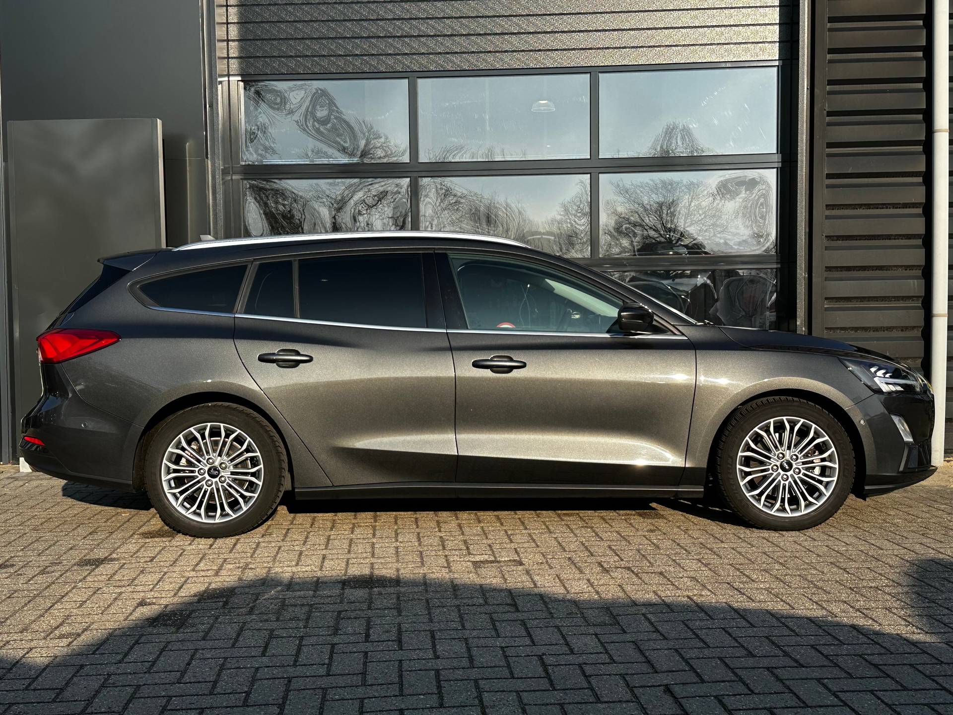 Laat u niets wijsmaken, deze Ford Focus Wagon biedt alles wat u van een auto verlangt. De aandrijving komt voor rekening van een benzinemotor en een handgeschakelde zesversnellingsbak. Onderdeel van de uitgebreide uitrusting van deze auto is stoelverwarming. Koude handen? Da's voorbij met het verwarmd stuurwiel. Pak aan! U wordt in deze auto ook getrakteerd op 17 inch lichtmetalen velgen, LED koplampen, dakspoiler, extra getint glas, in delen neerklapbare achterbank en LED-achterlichten. Afstand schatten bij het achteruitrijden? Niet nodig. U weet het precies, dankzij de achteruitrijcamera. Connected Services voegt nog meer comfort en veiligheid toe aan deze auto. Het high performance audiosysteem is volledig afgestemd op de akoestiek van de auto; genieten dus! De achteropkomend verkeer waarschuwing geeft een signaal als degene achter u te dicht op u zit. Ook handig en veilig bij het wisselen van rijbaan. De automatische airconditioning zorgt onder alle omstandigheden voor een prettige temperatuur. U bent in deze Ford ook voorzien van dashboard met spraakbediening, full map navigatiesysteem, DAB ontvangst, regensensor, cruise control en keyless entry. In de Ford Focus Wagon heeft uw veiligheid en die van uw omgeving prioriteit. Het Lane-keeping systeem zorgt voor een automatisch constante positie binnen de rijstrook. Afdwalen is uitgesloten. Voor meer veiligheid detecteert deze auto het risico van een aanrijding tijdig via de forward collision warning. De veiligheid van deze auto wordt verder verhoogd door hill hold functie, brake assist en bandenspanningcontrolesysteem. Om deze auto zelf te ervaren, hoeft u alleen maar contact met ons op te nemen. Mailt of belt u ons direct?
