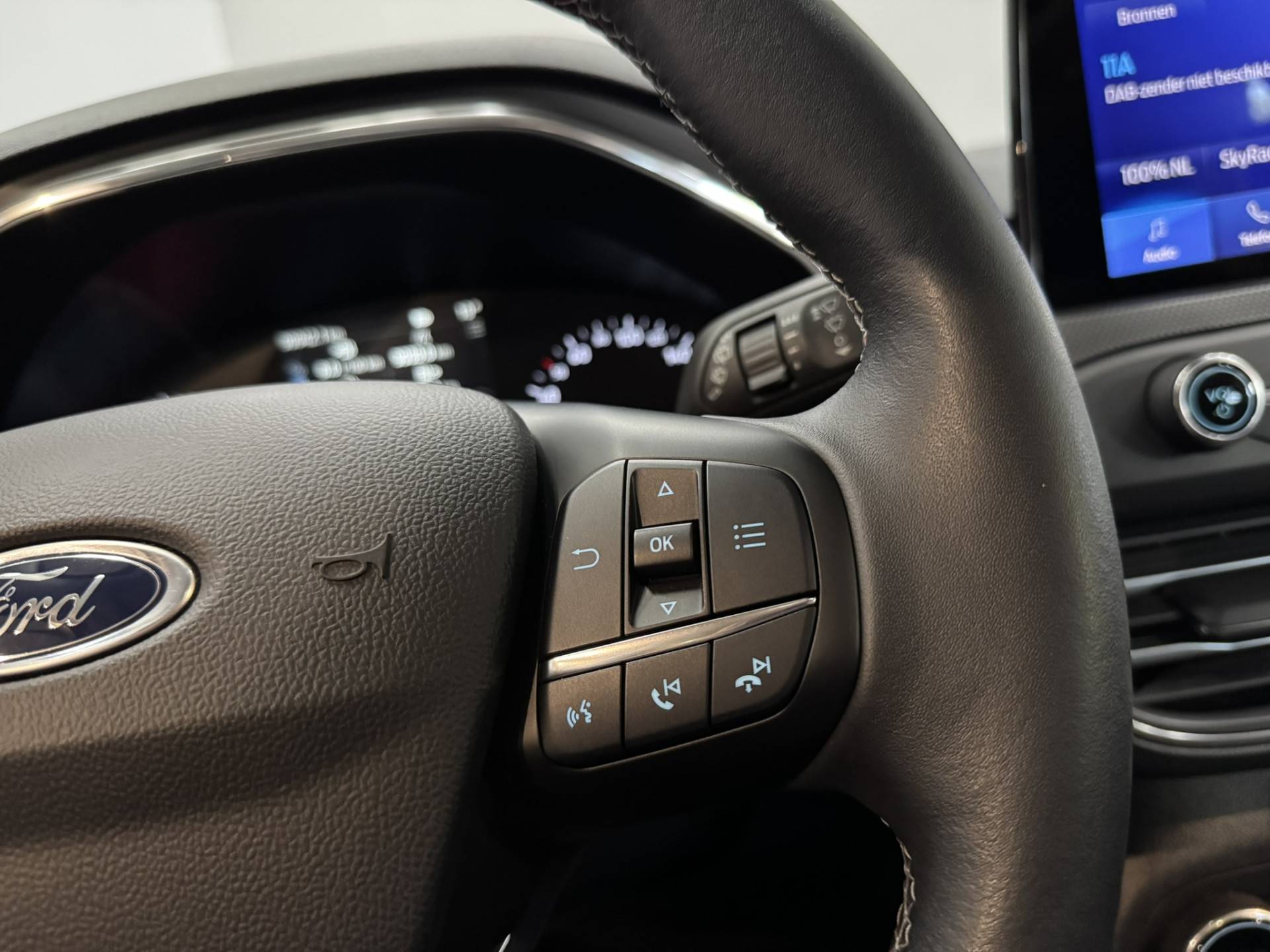Spraakbediening verhoogt de veiligheid en het gebruiksgemak. De auto luistert naar uw instructies en volgt ze op. Dankzij Connected Services heeft u overal en altijd uw dashboard op zak. Alle belangrijke functies zijn te checken via de app. Beste route, verwachte aankomsttijd: uw eigen full map navigatiesysteem vertelt u alles! De kans op een kop-staart botsing wordt sterk gereduceerd door het systeem van achteropkomend verkeer waarschuwing. Altijd en overal verbonden: dat kan dankzij de ingebouwde WIFI-hotspot. Met WIFI-hotspot, automatische airconditioning, DAB ontvangst, parkeersensoren achter, regensensor en cruise control is deze Ford helemaal compleet.