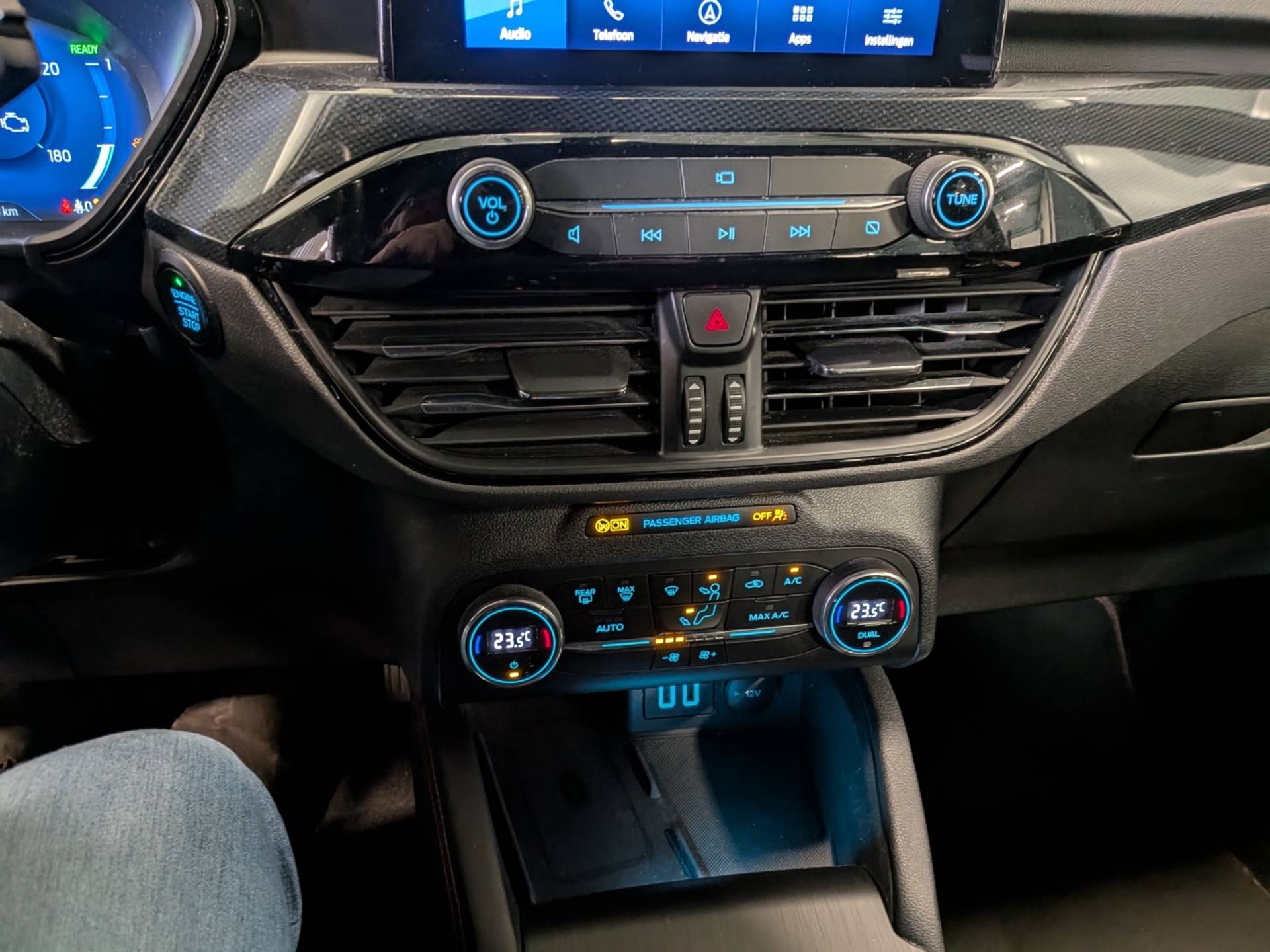 Deze goed onderhouden Ford Kuga heeft nog maar weinig op de teller staan. Een jonkie voor een oude prijs! Op een dag rijden we allemaal elektrisch. Maar voor nu is de hybride oplossing van elektrisch en benzine ideaal! Zo ook bij deze Ford Kuga. Altijd al een voorkeur voor een lederen interieur gehad? Deze Ford Kuga heeft het! De sportstoelen geven u veel zitsteun. In deze Ford profiteert u onder andere ook van: 18 inch lichtmetalen velgen, sportonderstel, LED-dagrijverlichting, in delen neerklapbare achterbank, LED-achterlichten en sportuitlaat. Pas de interface van uw cockpit moeiteloos aan. Het is mogelijk door het digitale dashboard in deze auto. Met de 360 graden camera op deze auto wordt het rijden een heel stuk veiliger, dankzij het optimale zicht dat het biedt. Adaptive cruise control is veilig en comfortabel. De snelheidsregelaar houdt automatisch afstand tot het voertuig dat voor u rijdt. Praat tegen deze auto en de auto doet wat u wilt dankzij de ingebouwde spraakbediening. Kilometerstand? Oliepeil? Accuspanning? Allemaal te zien via de app. Overal. Altijd. Dankzij Connected Services. Deze auto is voorzien van full map navigatiesysteem, achteropkomend verkeer waarschuwing, automatische airconditioning, draadloos opladen, DAB ontvangst en regensensor. Pragmatisch en veilig als deze auto is, beschikt hij over diverse veiligheidssystemen. Verkeersborddetectie herkent tijdelijke en permanente verkeersborden langs en boven de weg. Indien u onbedoeld de rijstrook lijkt te verlaten, reageert het Lane-keeping systeem meteen en corrigeert. Het systeem van forward collision warning, of in gewoon Nederlands 'botswaarschuwing', treedt in werking als de sensor te weinig afstand signaleert met een voor- of tegenligger. Bovenop deze veiligheidsfeatures heeft deze Ford bovendien dodehoekdetectie, hill hold functie, vermoeidheidsherkenning, autonoom remsysteem en bandenspanningcontrolesysteem. Een proefrit levert het bewijs. Neem contact op en we maken een afspraak!