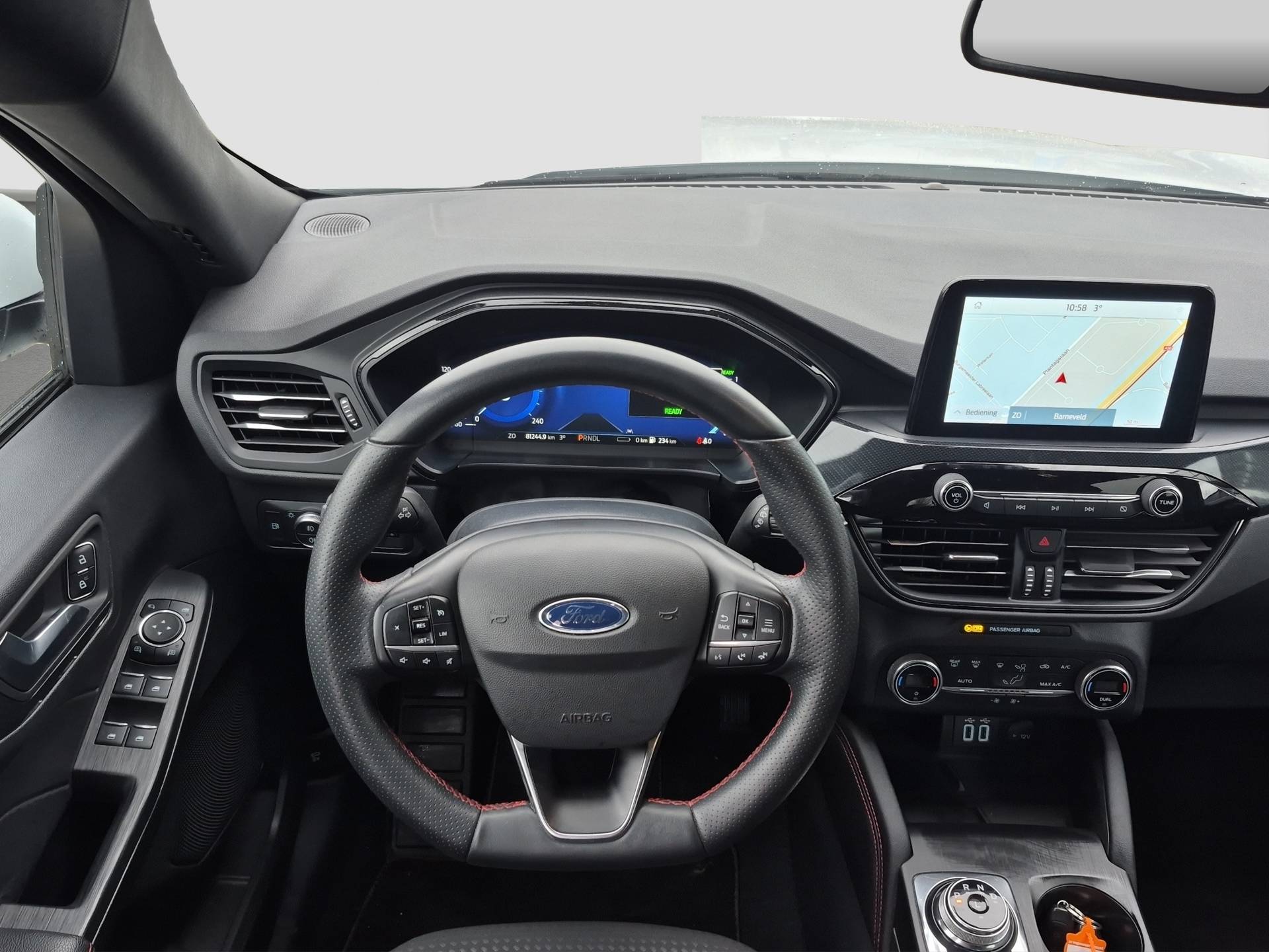Het is een mooie auto, deze Ford Kuga uit 2021, hij heeft 81245 kilometer gelopen. Met de huidige benzineprijzen is deze hybride motor van deze auto misschien wel de allerbeste oplossing. Zuiniger, schoner en toch van alle markten thuis. Comfort? Luxe? Stijl? Allemaal meegeleverd in de vorm van het lederen interieur. Rijden met pit? Geen punt! De sportstoelen geven steun en stevigheid! Verder is de Ford uitgerust met: 18 inch lichtmetalen velgen, sportonderstel, LED-dagrijverlichting, extra getint glas, in delen neerklapbare achterbank en LED-achterlichten. Voor een goed en duidelijk overzicht onderweg is het digitale dashboard uitermate slim ingedeeld. Kinderfietsje niet gezien bij het inparkeren? Dat gebeurt u nooit meer. Daar zorgt de achteruitrijcamera wel voor! Kilometerstand? Oliepeil? Accuspanning? Allemaal te zien via de app. Overal. Altijd. Dankzij Connected Services. Voor de veiligheid op de weg is het goed dat u uw ogen op de weg kunt houden en uw handen aan het stuur. Want het audiosysteem, met DAB-ontvangst, en het full map navigatiesysteem bedient u vanaf het stuurwiel en met spraakbediening. Telefoon onderweg aan de lader? Daar komt geen kabeltje aan te pas, want deze Ford Kuga is voorzien van een draadloze oplaadmogelijkheid voor telefoons. Deze Ford is voorzien van achteropkomend verkeer waarschuwing, automatische airconditioning, regensensor, cruise control, sportstuurwiel en keyless entry. Pragmatisch en veilig als deze auto is, beschikt hij over diverse veiligheidssystemen. Het Lane-keeping systeem garandeert dat u zich niet onverhoeds buiten de lijnen van de rijstrook begeeft. Forward collision warning waarschuwt voor een kop-staart botsing. De auto is ook uitgerust met hill hold functie, autonoom remsysteem en bandenspanningcontrolesysteem. Even bellen voor een afspraak en u kunt deze auto van top tot teen zelf bekijken.