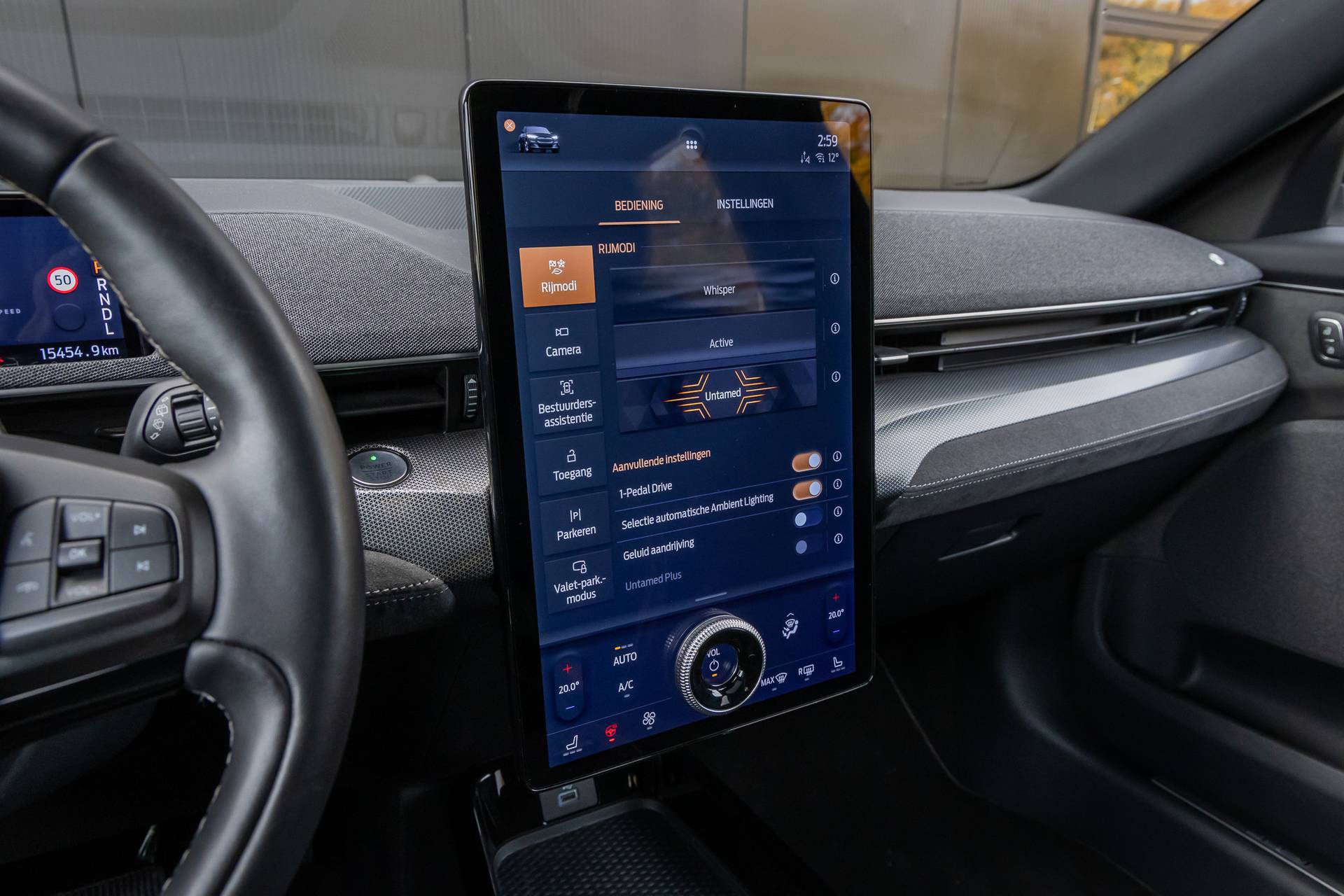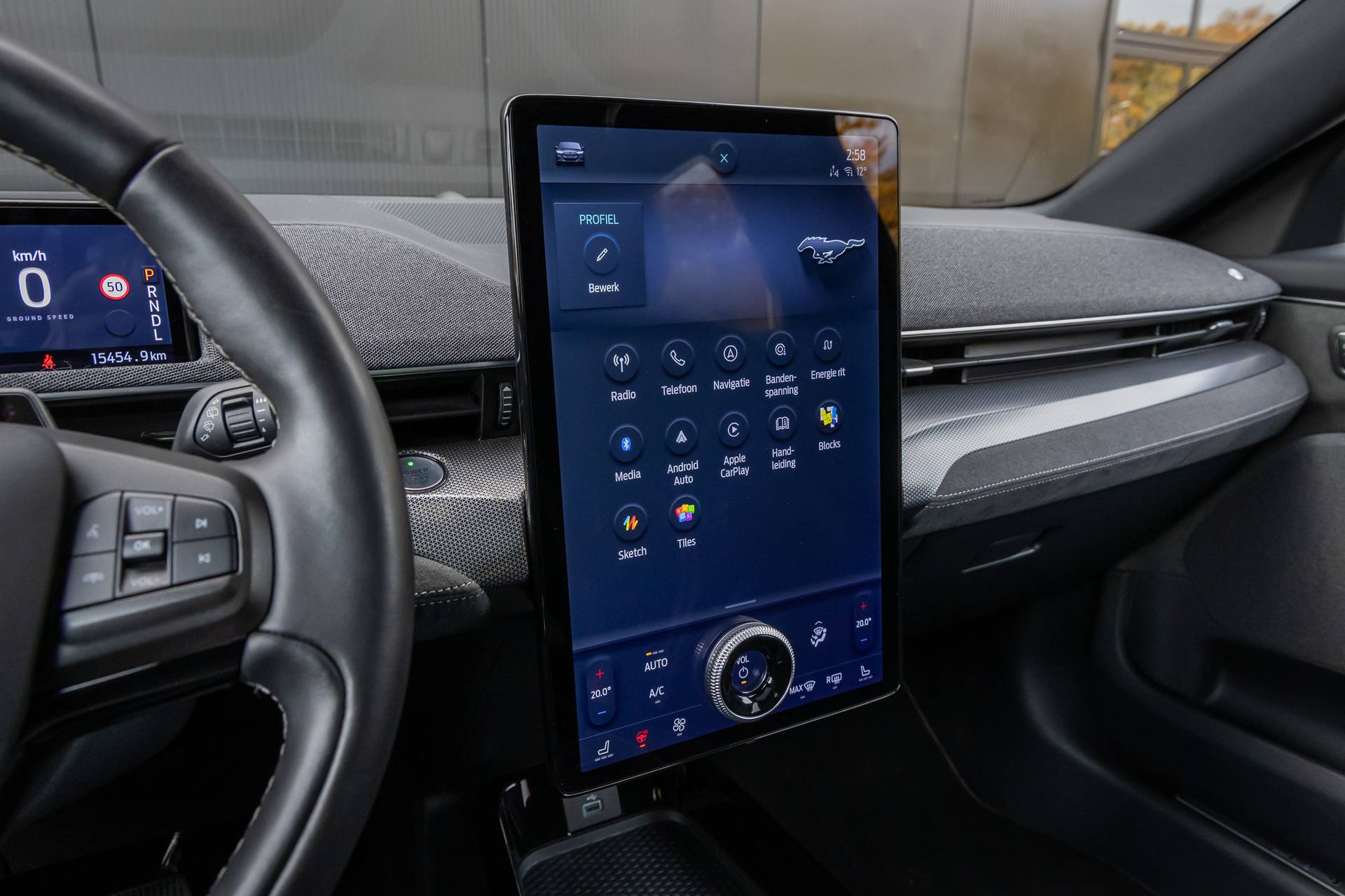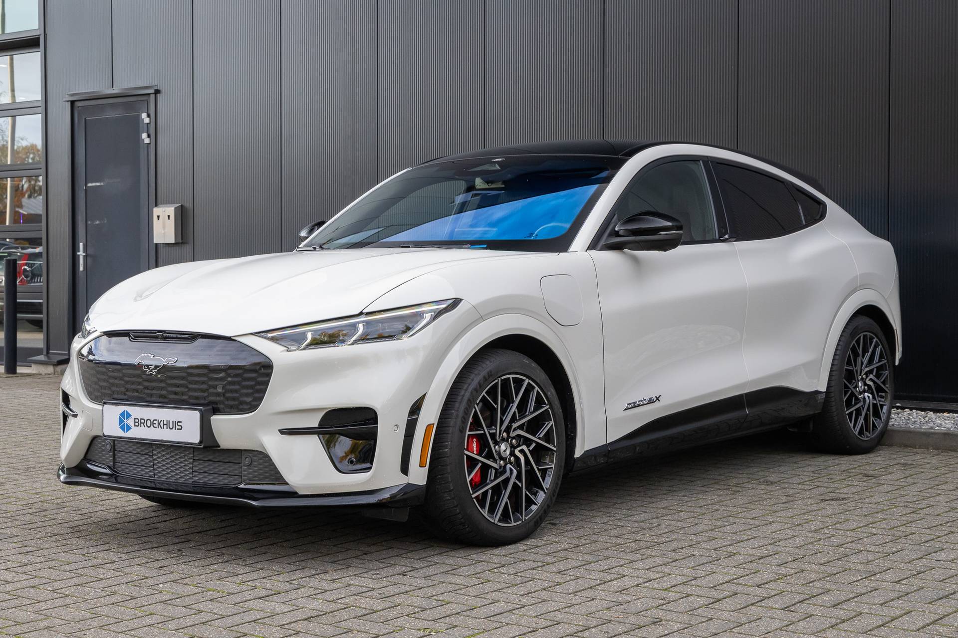 De Ford Mustang Mach-E vertegenwoordigt de nieuwe generatie auto's en verenigt elektrische kwaliteit en duurzaamheid met elkaar. Bent u ook toe aan een auto met elektromotor? Goeie keuze! De krachtige motor geeft deze Ford uitstekende prestaties. Bestuurder en bijrijder krijgen een warm welkom: deze Ford Mustang Mach-E is voorzien van verwarmbare voorstoelen. Scherpe bochten, pittige acceleraties? In de sportstoelen blijft u altijd in positie. Een praktische extra is de elektrisch bedienbare achterklep die opent en sluit met een druk op de knop. Zicht, licht en toch dicht! Een geweldige rijervaring met het glazen panoramadak. Deze Ford Mustang Mach-E heeft een verwarmd stuurwiel. Nooit meer koude handen onderweg. Bij de zeer complete uitrusting van deze auto behoren ook 20 inch lichtmetalen velgen, LED koplampen, adaptief dempingsysteem, geluidsisolerende ramen, in delen neerklapbare achterbank en LED-achterlichten. Met de standkachel stelt u vooraf in wanneer de auto opgewarmd voor u klaar moet staan. U hoeft nooit meer te krabben en de koude start behoort tot het verleden. Duik in de digitale wereld van mobiliteit waar alles wat u nodig heeft voor een comfortabele en veilige rit, wordt geprojecteerd op het digitale dashboard. Dankzij de 360 graden camera op de auto, wordt manoeuvreren in smalle straatjes ineens veel eenvoudiger. Adaptive cruise control is een comfortabele en veilige optie. Het systeem reguleert de snelheid en houdt automatisch afstand tot uw voorligger. Als u 'm vraagt 'hoe gaat het?' geeft deze auto zelf het antwoord. Via de app op uw smartphone. U checkt de meters waar u maar wilt, of activeert diverse functies alvast. Met dashboard met spraakbediening, premium audiosysteem, full map navigatiesysteem, automatische airconditioning, draadloos opladen en DAB ontvangst is deze Ford helemaal compleet. Het zal u verbazen hoe deze auto in staat is om voor u de omgeving en het verkeer om u heen in de gaten te houden. Wat deze auto ook kan, is lezen. Hij 'leest' voor u de verkeersborden tijdens de rit en attendeert u erop door ze op het dashboard te projecteren. Met het Lane-keeping systeem gaat u nooit onbedoeld over de streep. Het risico van een kop-staartbotsing wordt aanzienlijk verminderd door de forward collision warning. Met voorzieningen als dodehoekdetectie, vermoeidheidsherkenning, autonoom remsysteem en bandenspanningcontrolesysteem, bent u altijd veilig onderweg. Wanneer wilt u een proefrit maken? Neem contact op en we maken een afspraak voor een muisstille rit in deze elektrische droomauto!