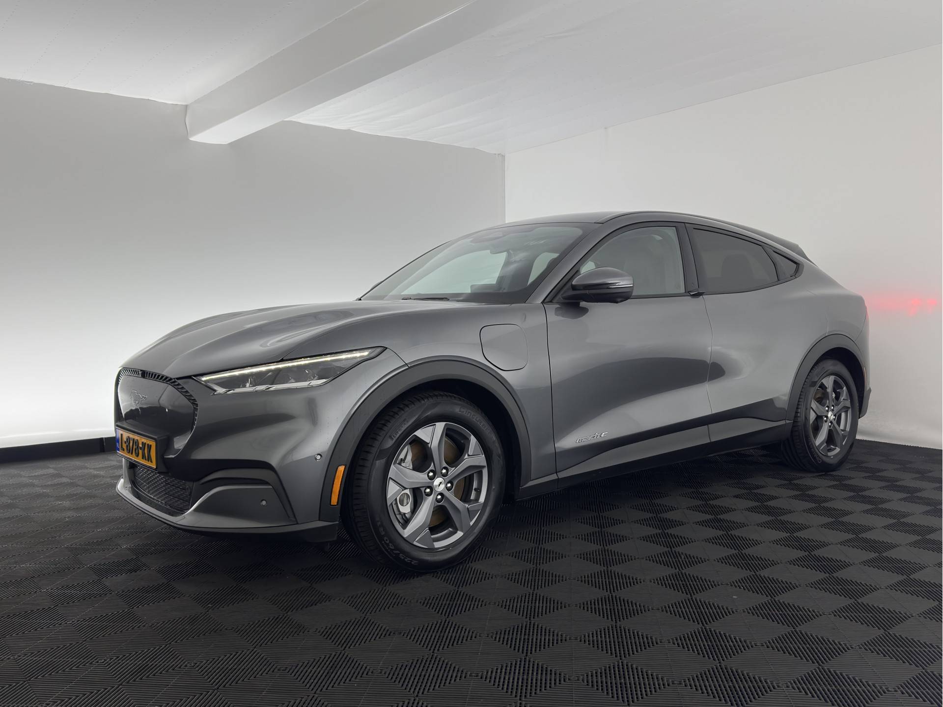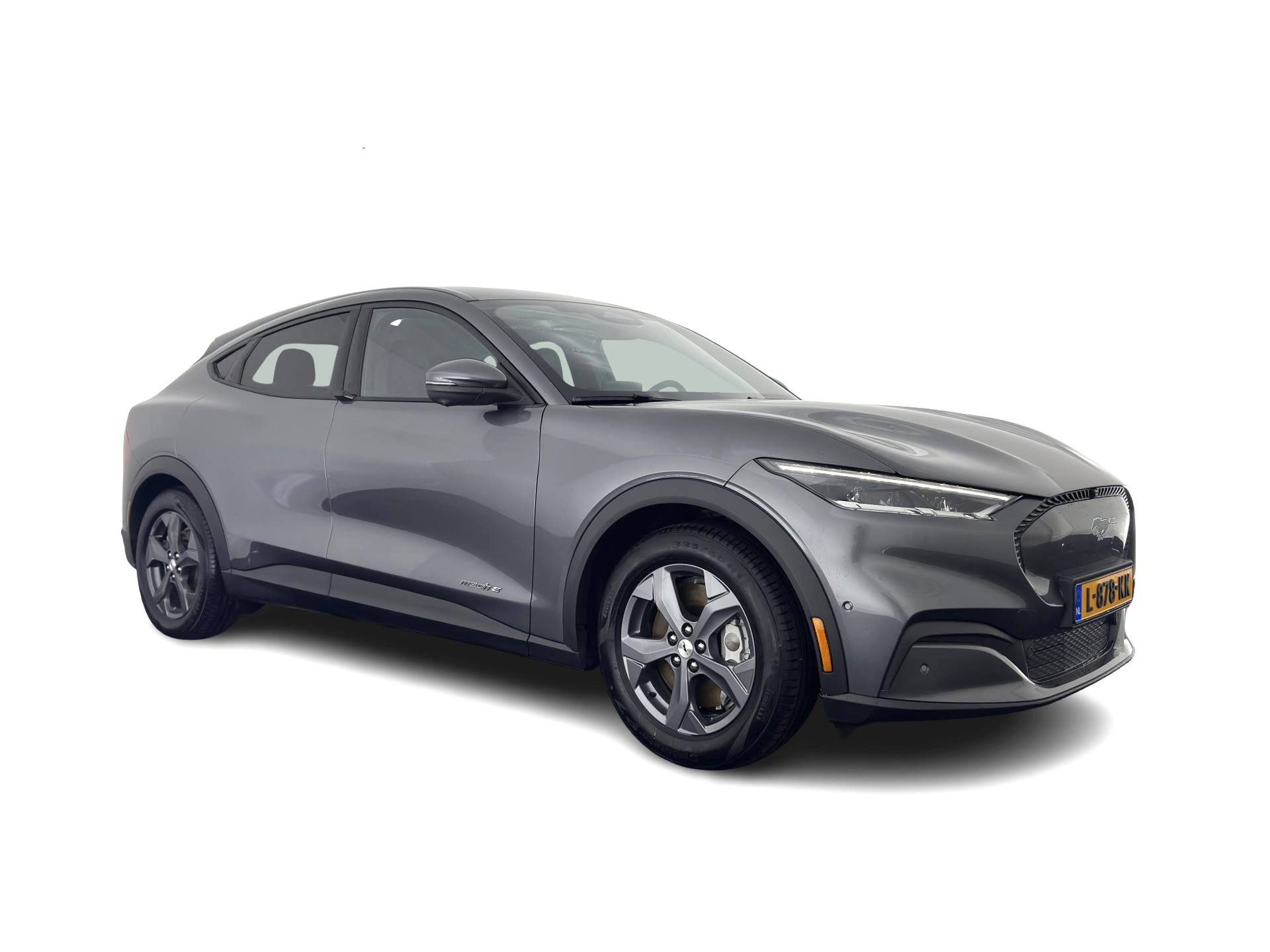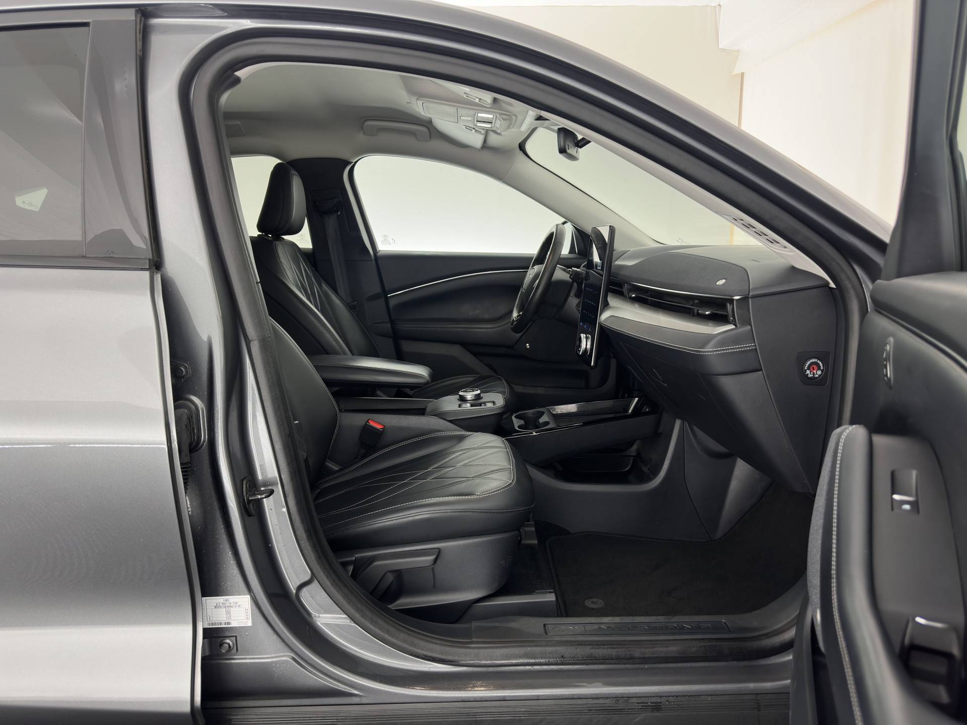 ⭐ Ford Mustang Mach-E RWD 75 kWh Automatic | in Carbonized Gray Metallic met ActiveX zwart Onyx Lederen Interieur met witte "Diamond" Stiksel | Elektrisch, Comfort & Geavanceerde Technologie