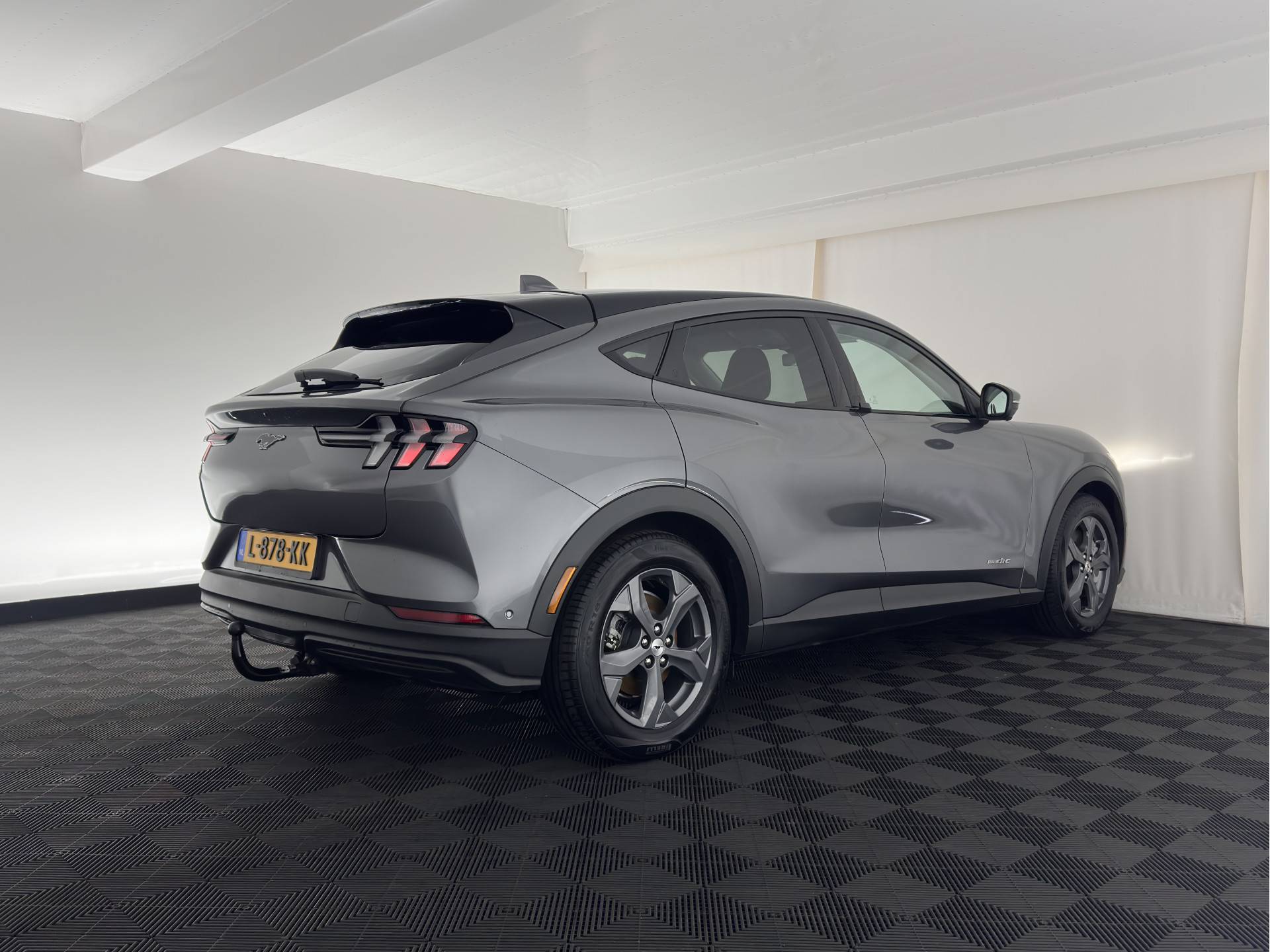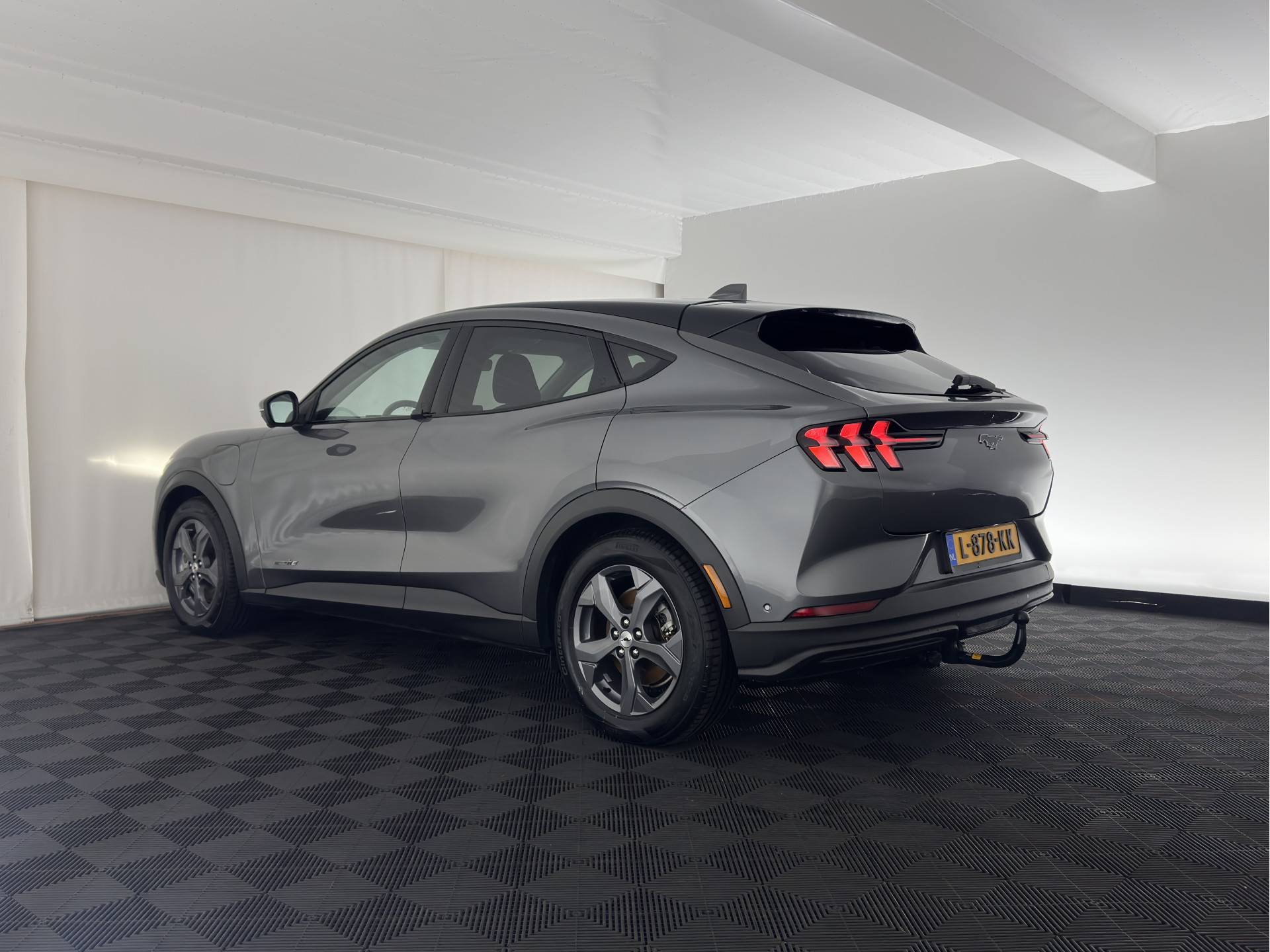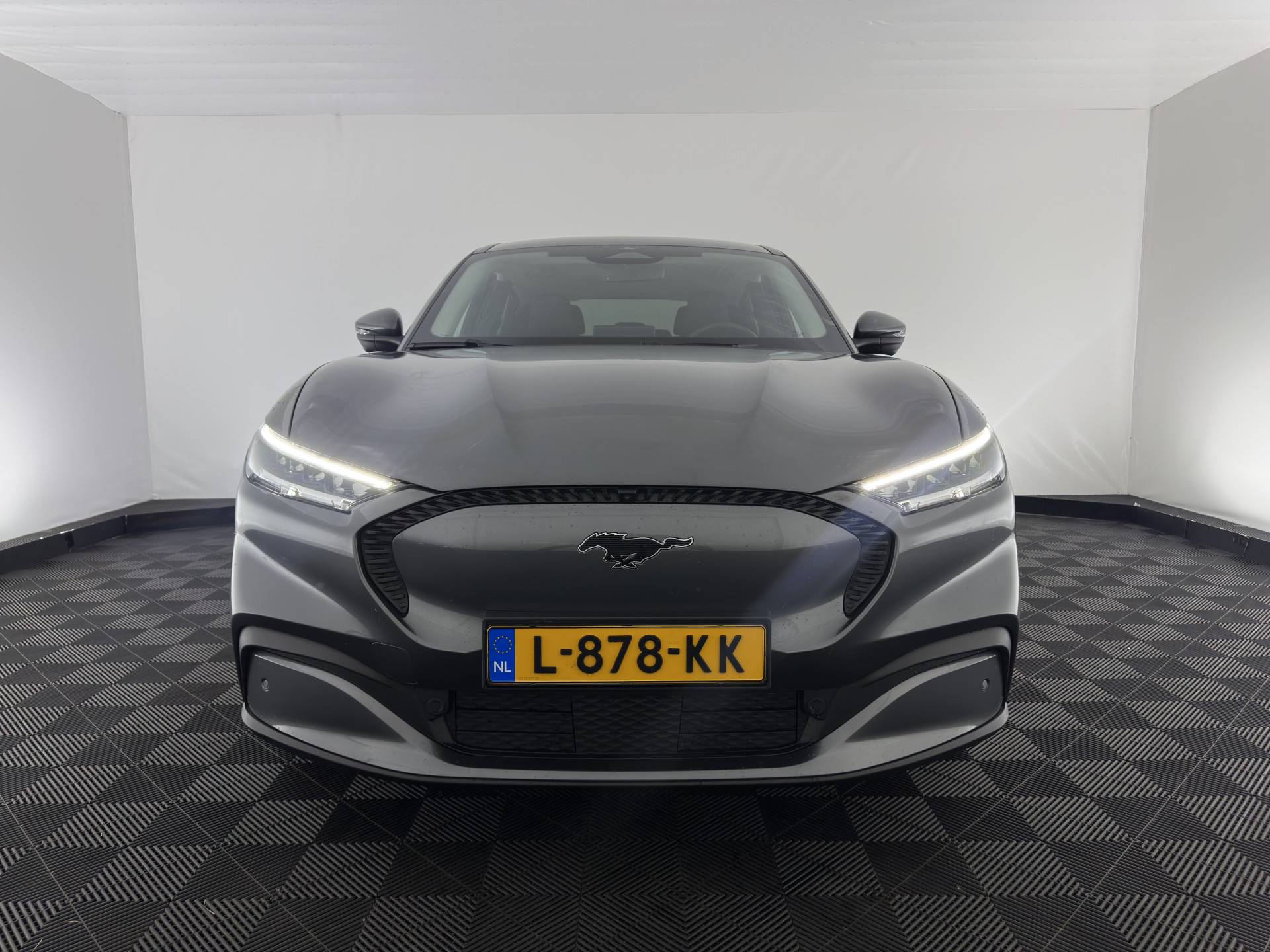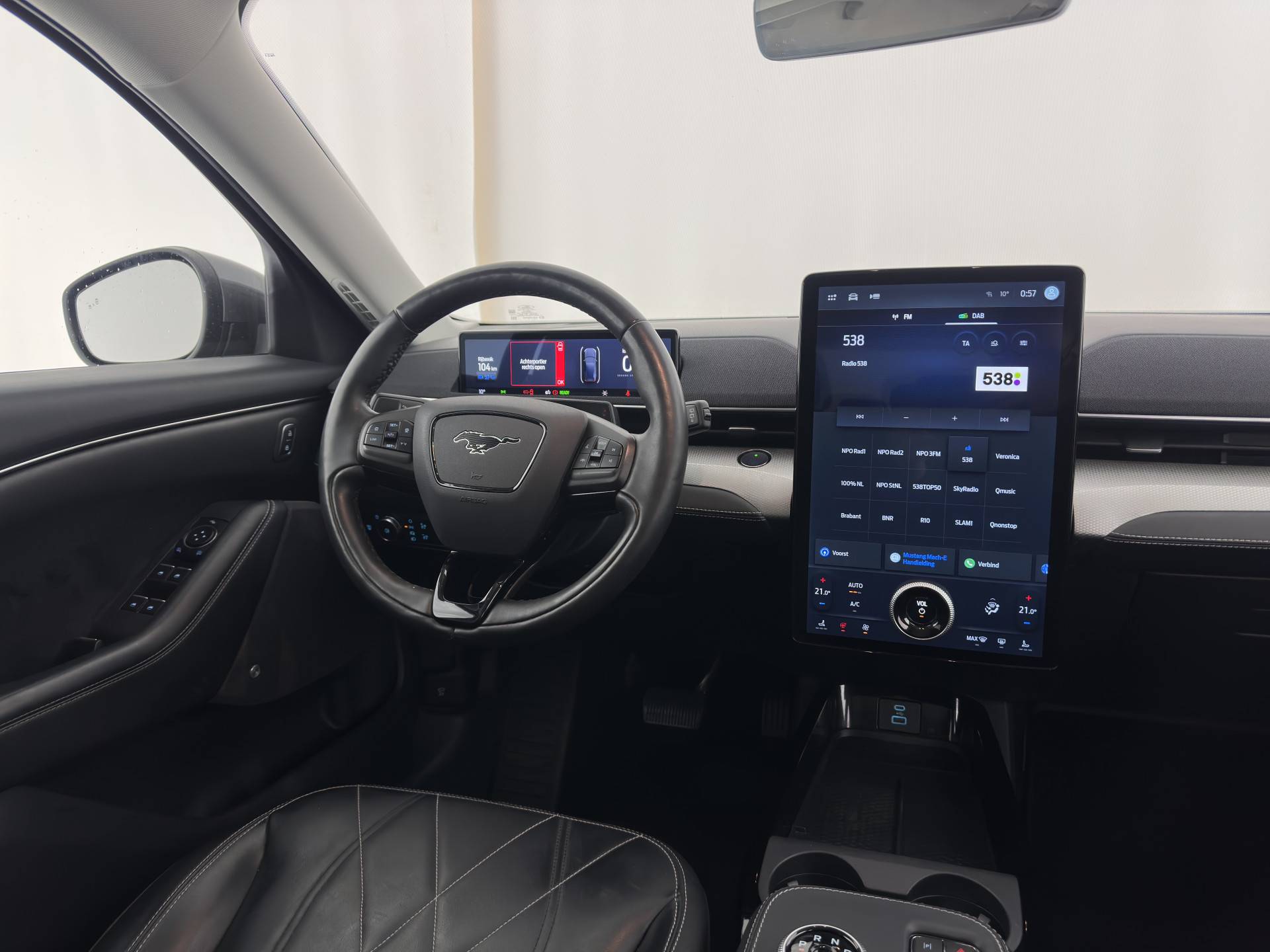 ⭐ Ford Mustang Mach-E RWD 75 kWh Automatic | in Carbonized Gray Metallic met ActiveX zwart Onyx Lederen Interieur met witte "Diamond" Stiksel | Elektrisch, Comfort & Geavanceerde Technologie