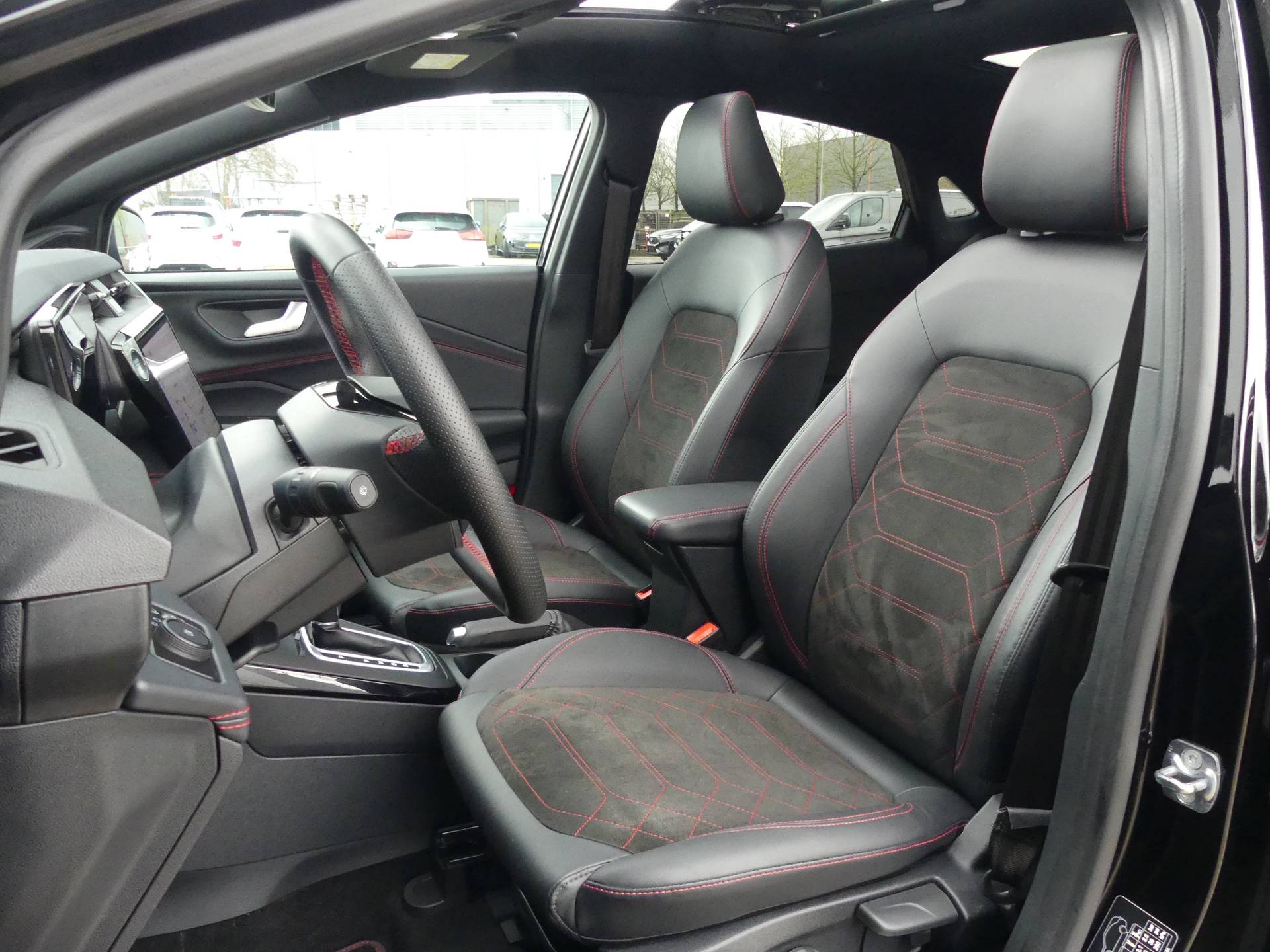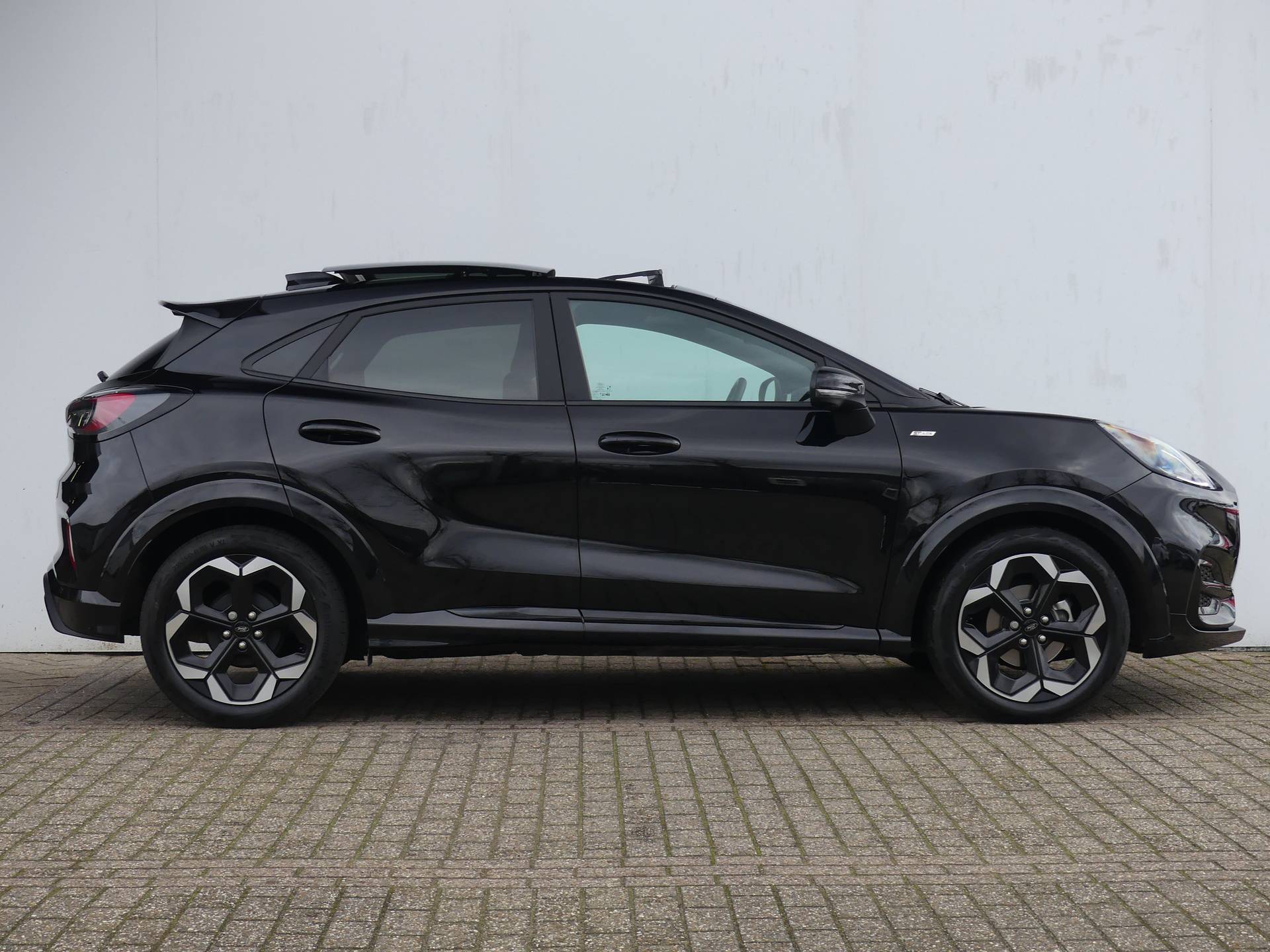 Met zijn ruimte en zijn prestaties is dit de auto die bij u past. Met zijn benzinemotor en automatische transmissie is dit een prima auto voor nog vele kilometers. Ruimte? Ja hoor! Open maar eens de elektrisch bedienbare achterklep en check de bagageruimte; stap daarna in om het weidse gevoel te ervaren dat het elektrisch bediende glazen panorama dak u bezorgt. In de verwarmbare voorstoelen zitten is elke keer een welkom gevoel. De sportstoelen zorgen ervoor dat u goed en comfortabel zit, ook als het gas erop gaat. Een verwarmd stuurwiel overbodige luxe? Wacht maar tot het kouder wordt! Ook is de auto voorzien van: 18 inch lichtmetalen velgen, Full LED koplampen, sportonderstel, geluidsisolerende ramen, in delen neerklapbare achterbank en LED-achterlichten. Het digitale dashboard vertelt u alles wat u wilt weten voor een slimme, comfortabele en veilige rit. Door het combineren van beelden van vier camera's, biedt de 360 graden camera een naadloos en gedetailleerd beeld van de hele omgeving rondom deze auto. Adaptive cruise control is veilig en comfortabel. De snelheidsregelaar houdt automatisch afstand tot het voertuig dat voor u rijdt. Het infotainmentsysteem bedient u met uw vingers of met uw stem, met dank aan de geïntegreerde stembediening. Navigatie, onderhoudsstatus, vergrendeling, audio... de mogelijkheden van remote services zijn haast oneindig. Ook deze auto laat zich bedienen en analyseren via uw smartphone! Met premium audiosysteem, full map navigatiesysteem, automatische airconditioning, draadloos opladen, DAB ontvangst en regensensor is deze auto helemaal compleet. In de Ford Puma heeft uw veiligheid en die van uw omgeving prioriteit. Tijdens de rit hebt u altijd een bijrijder, want de verkeersbord-detectie leest de borden langs de weg en projecteert ze voor u op het instrumentarium. Het Lane-keeping systeem let constant op en waarschuwt of corrigeert als u onoplettend over de lijnen van de rijstrook gaat. Bij een noodstop levert de Brake Assist automatisch nóg meer remkracht om de remweg te verkorten. Bovenop deze veiligheidsfeatures heeft deze Ford bovendien dodehoekdetectie en bandenspanningcontrolesysteem. Lijkt deze Ford u wat? Neem dan nu contact op voor een afspraak of een proefrit!