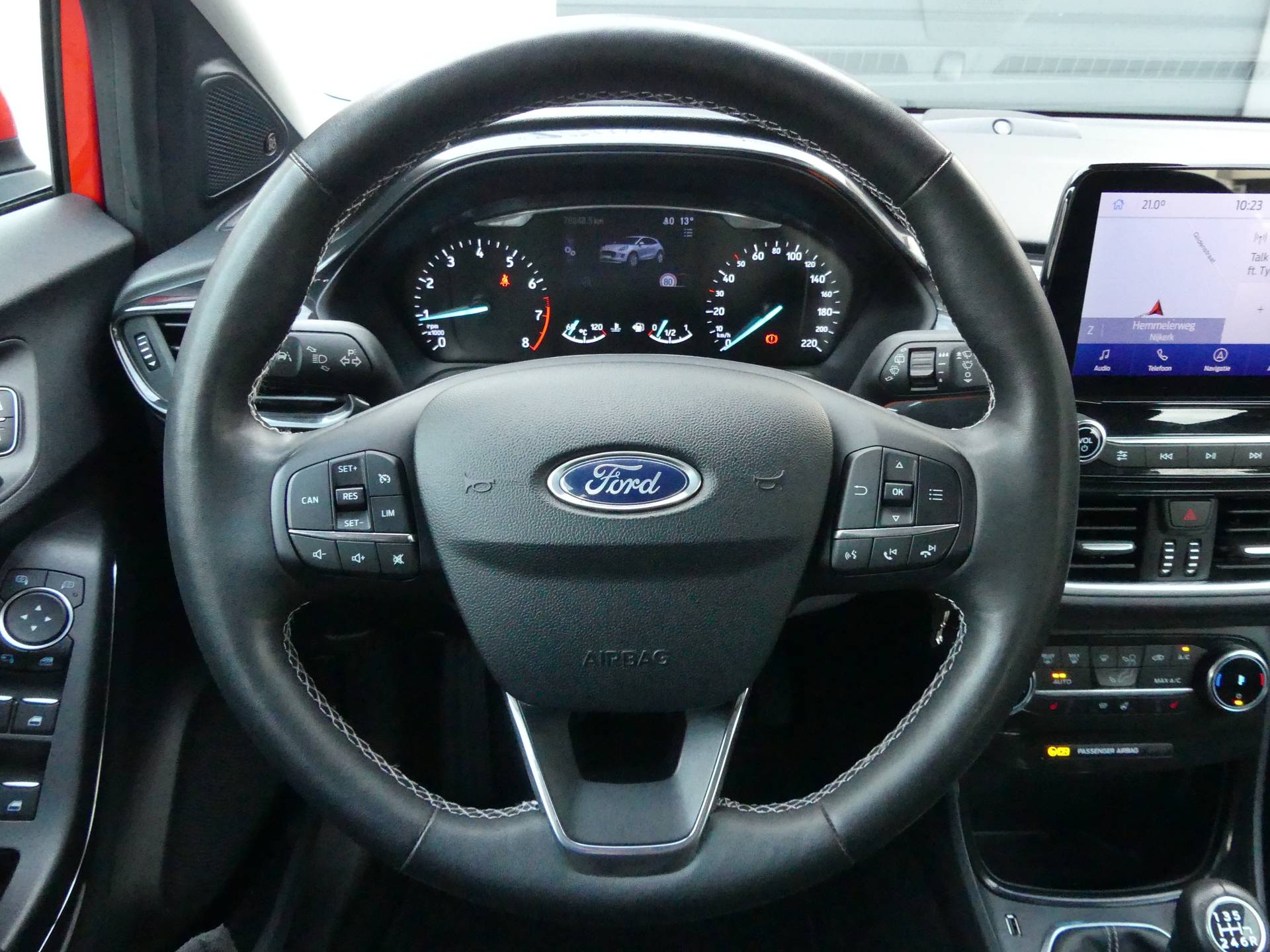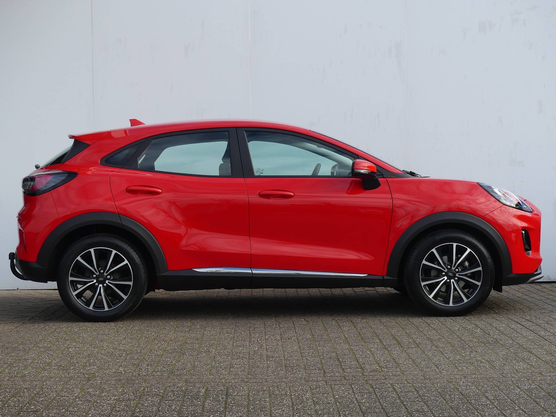 Omdat rijden een plezier mag zijn, staat deze Ford Puma enthousiast te glimmen in de showroom. Technisch in topconditie, strak in de lak... echt een droomauto! De krachtige benzinemotor van deze auto is gekoppeld aan een handgeschakelde zesversnellingsbak. Op koude en donkere dagen zijn de verwarmbare voorstoelen een uitkomst. De sportstoelen geven het interieur een super strakke look. Deze Ford Puma heeft een verwarmd stuurwiel. Nooit meer koude handen onderweg. Ook 17 inch lichtmetalen velgen, LED koplampen, in delen neerklapbare achterbank, LED-achterlichten, verstelbare lendensteunen en snelheidsafhankelijke stuurbekrachtiging horen tot de voorzieningen op deze auto. Als u regelmatig met een aanhanger of een fietsendrager op pad bent, is de afneembare trekhaak een praktische extra. Functies activeren en storingen opsporen? Bij deze auto gaat het eenvoudig via uw smartphone. Overal en altijd. Voor een krachtige en natuurlijke geluidsweergave zorgt het high performance audiosysteem. De achteropkomend verkeer waarschuwing geeft een signaal als degene achter u te dicht op u zit. Ook handig en veilig bij het wisselen van rijbaan. De automatische airconditioning zorgt voor een prettige binnentemperatuur. Ook dashboard met spraakbediening, full map navigatiesysteem, DAB ontvangst, parkeersensoren achter, regensensor en cruise control zijn aan boord. Zoals u mag verwachten van deze Ford Puma is hij uitgerust met een reeks aan actieve veiligheidssystemen. In het instrumentarium kunt u bovendien de verkeersborden zien die u onderweg tegenkomt. Zo helpt deze Ford u om veiliger te rijden. Ongemerkt buiten de rijstrook raken? Nee hoor, het Lane-keeping systeem waarschuwt en corrigeert. Forward collision warning waarschuwt bij een dreigende aanrijding met een voorligger. Verder is deze auto uitgerust met hill hold functie, brake assist en bandenspanningcontrolesysteem. Neem contact op voor een afspraak en laat een proefrit het bewijs leveren!