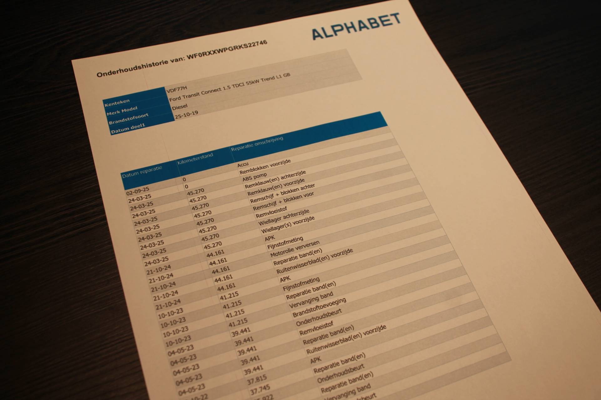 Daarnaast is deze Connect voorzien van een onderhoudshistorie.