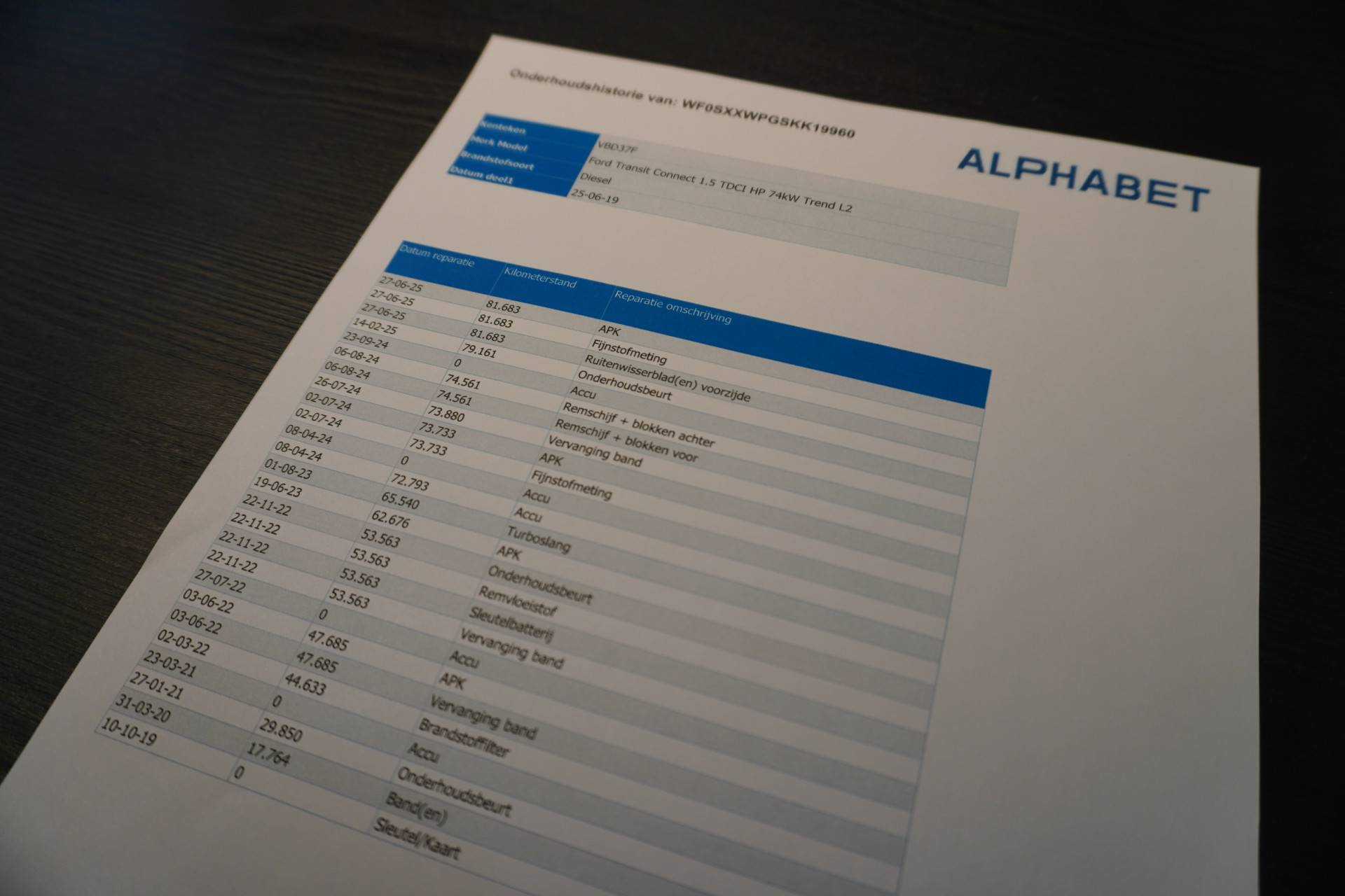 Daarnaast is deze Connect voorzien van een onderhoudshistorie.