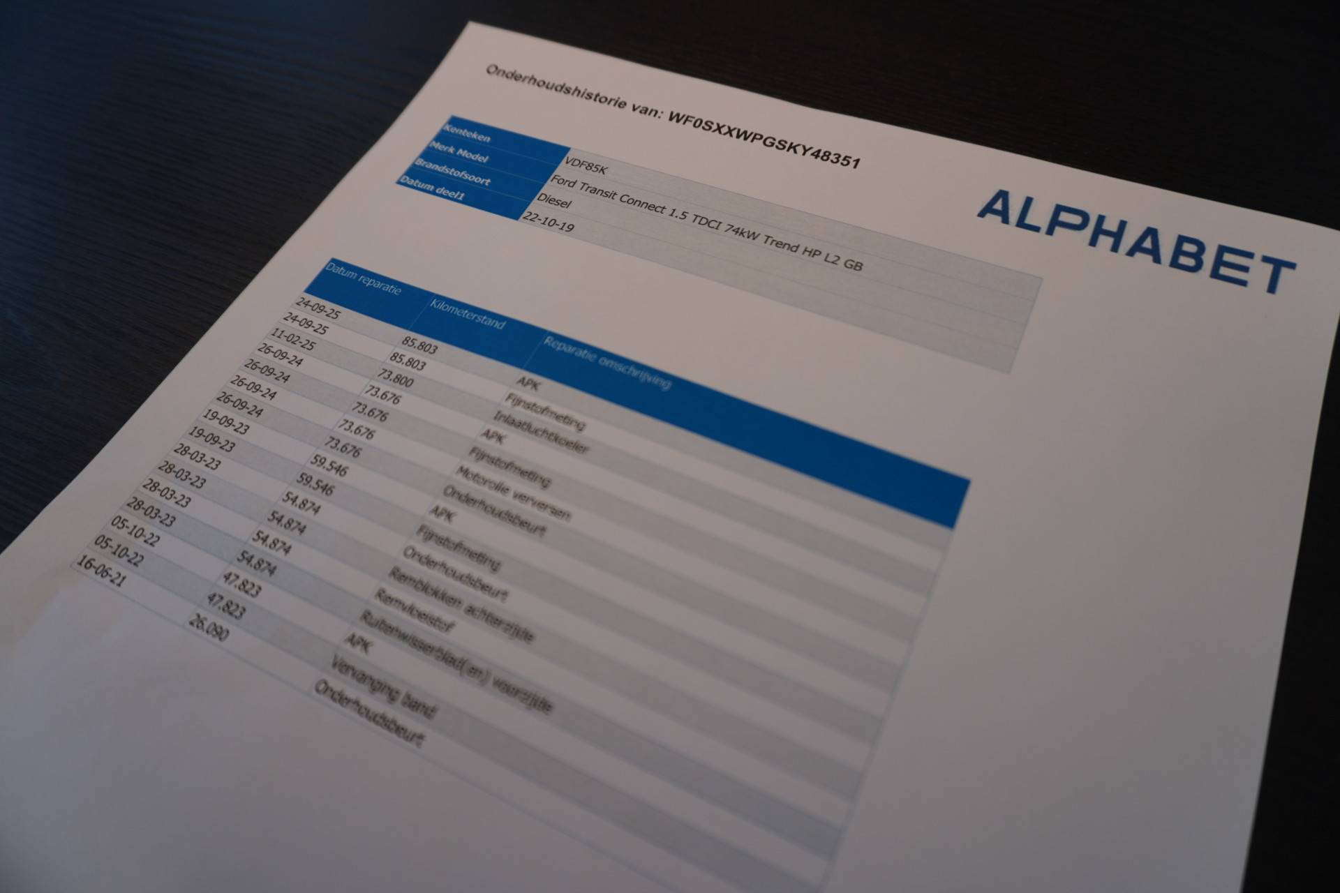 Daarnaast is deze Connect voorzien van een onderhoudshistorie.