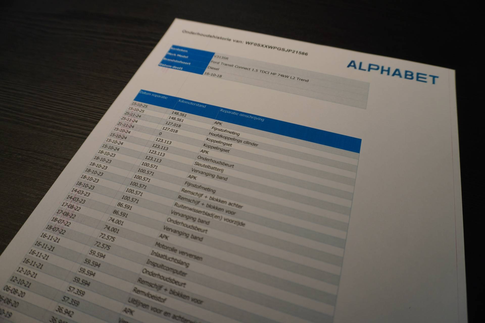Daarnaast is deze Connect voorzien van een onderhoudshistorie.
