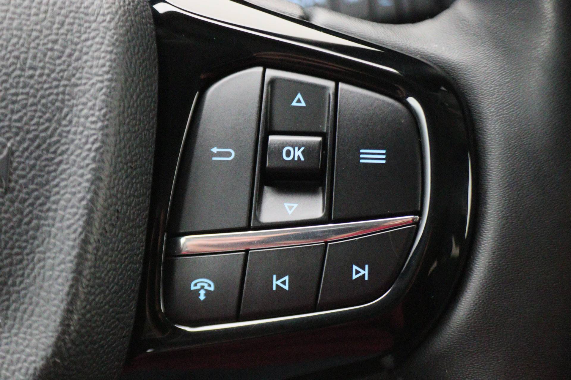 Via het digitale dashboard bent u permanent op de hoogte van alle informatie die u nodig heeft voor een veilige rit. Wat een gemak, die achteruitrijcamera. Alles in beeld zonder capriolen. Adaptive cruise control is een comfortabele en veilige optie. Het systeem reguleert de snelheid en houdt automatisch afstand tot uw voorligger. Had u de auto nou wel afgesloten? Met Connected Services checkt u het overal en altijd. Onderweg kunt u veilig genieten van het audio-installatiesysteem met DAB-radio en het App-connect navigatiesysteem. Want in deze Ford bedient u ze vanaf het stuurwiel. U bent in deze Ford ook voorzien van WIFI-hotspot, automatische airconditioning, regensensor, keyless entry, buitentemperatuurmeter en lederen stuur.