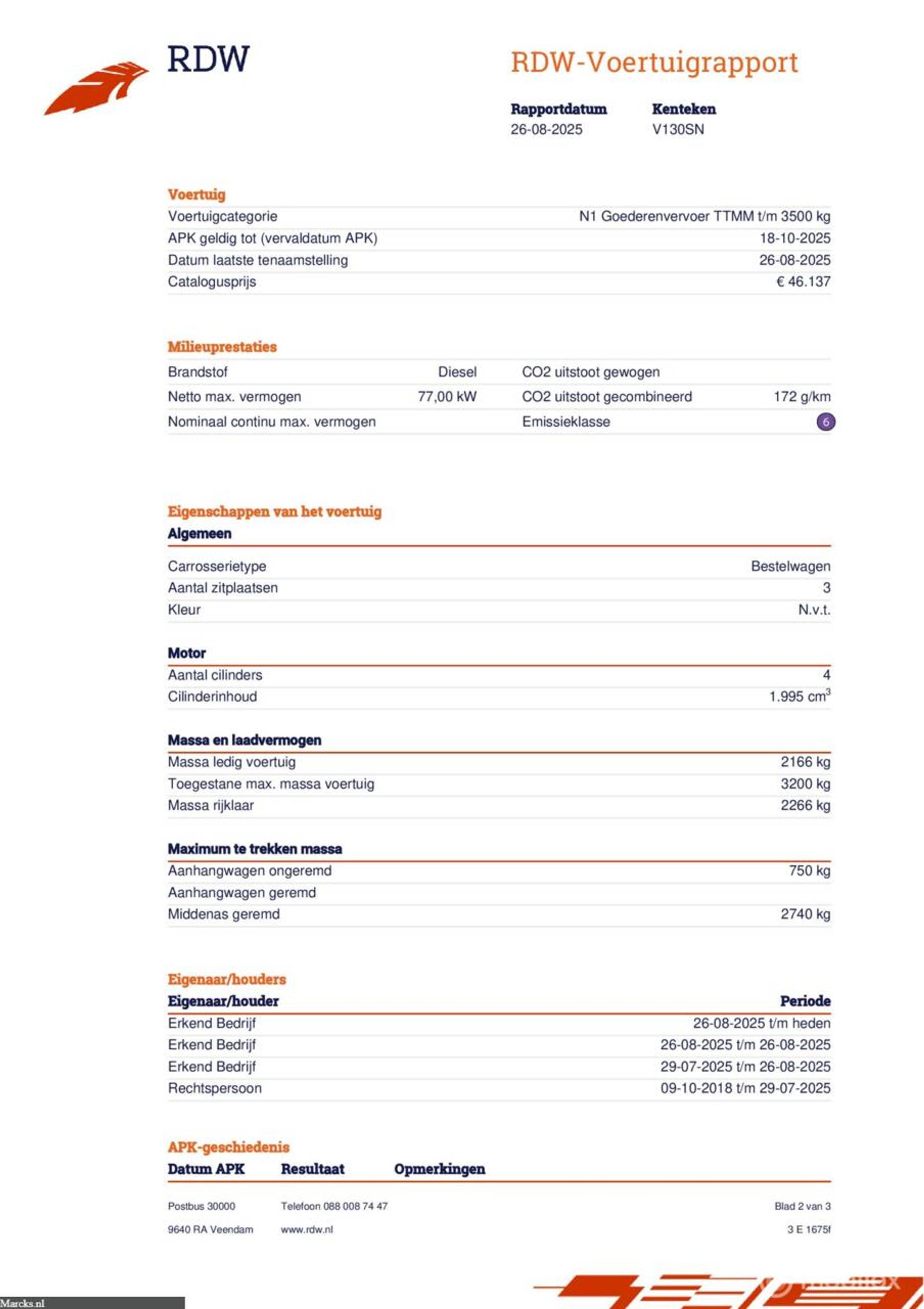 ✓ APK bij aflevering: J