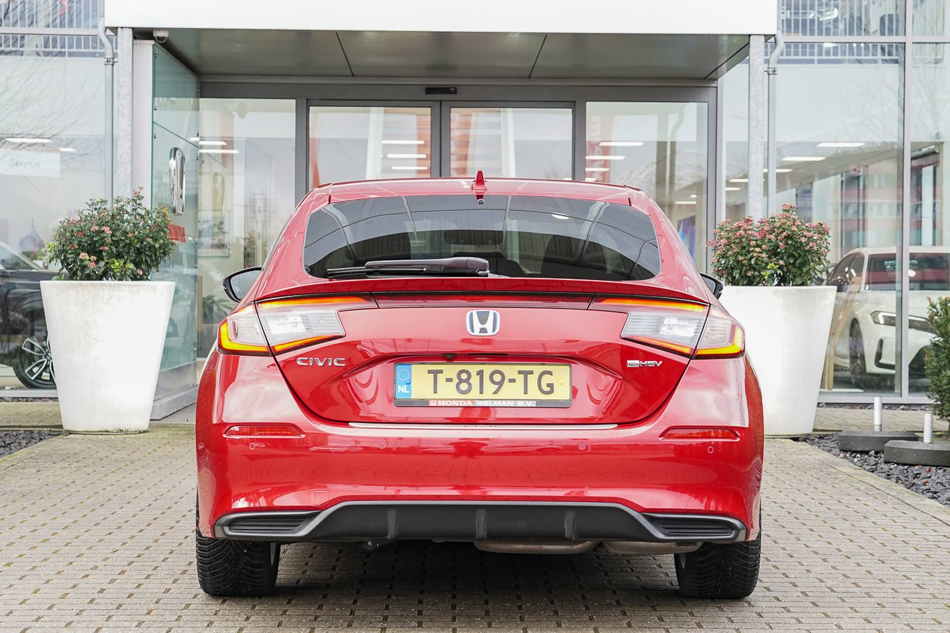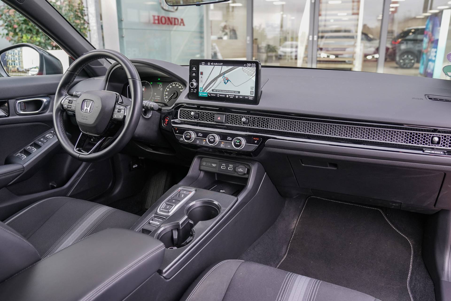 Fantastisch mooie Civic 2.0i e:HEV SPOR Full HybridT!!! Rechtstreeks van 1e eigenaar, nieuw door ons geleverd en 100% Honda dealer onderhouden (aan ons bedrijf) Deze pracht Civic inclusief: Michelin Cross Climates All Weather banden, instaplijsten en chroom kofferdeksel sierlijst, half Lederen/stof interieur, Honda Connect, Garmin Navigatie, Parkeersensoren voor en achter, Adaptieve Cruise control, Wireless telefoon Charger, Automatische airconditioning twee zones, Rijstrookassistentie, 18" Inch zwarte velgen, Bluetooth carkit, Dual-Zone Climate control, Achteruitrijcamera met parkeerhulp, Actief stadnoodremsysteem, LED dag -rijverlichting, Elektrisch Lendensteun voor bestuurder, Blind Spot Information, Achteruitrijcamera, Grootlichtondersteuning, E-Call, Premium / hifi installatie met 8 luidsprekers, Smart Entry & Start, Verwarmbare voorstoelen, Sportpedalen, Zwarte Hemelbekleding, Privacy Glass, Verkeersbordenherkenning, Stoelverwarming voor, Alarmsysteem, Automatische ruitenwissers, Automatische verlichting met High Beam Support, Dode hoek waarschuwingssysteem en Car Play voor Android of Apple. Wij leveren onder vaste en uiterst scherpe prijscondities, Deze Civic Sport e:HEV wordt met resterende fabrieksgarantie geleverd. Uniek; informeer ook naar de mogelijkheden van Honda&Selectie, waarbij u zorgeloos geniet van 48 maanden volledige Honda garantie, gratis haal en brengservice bij onderhoud en/of reparatie en 48 maanden gratis Honda Assistance.