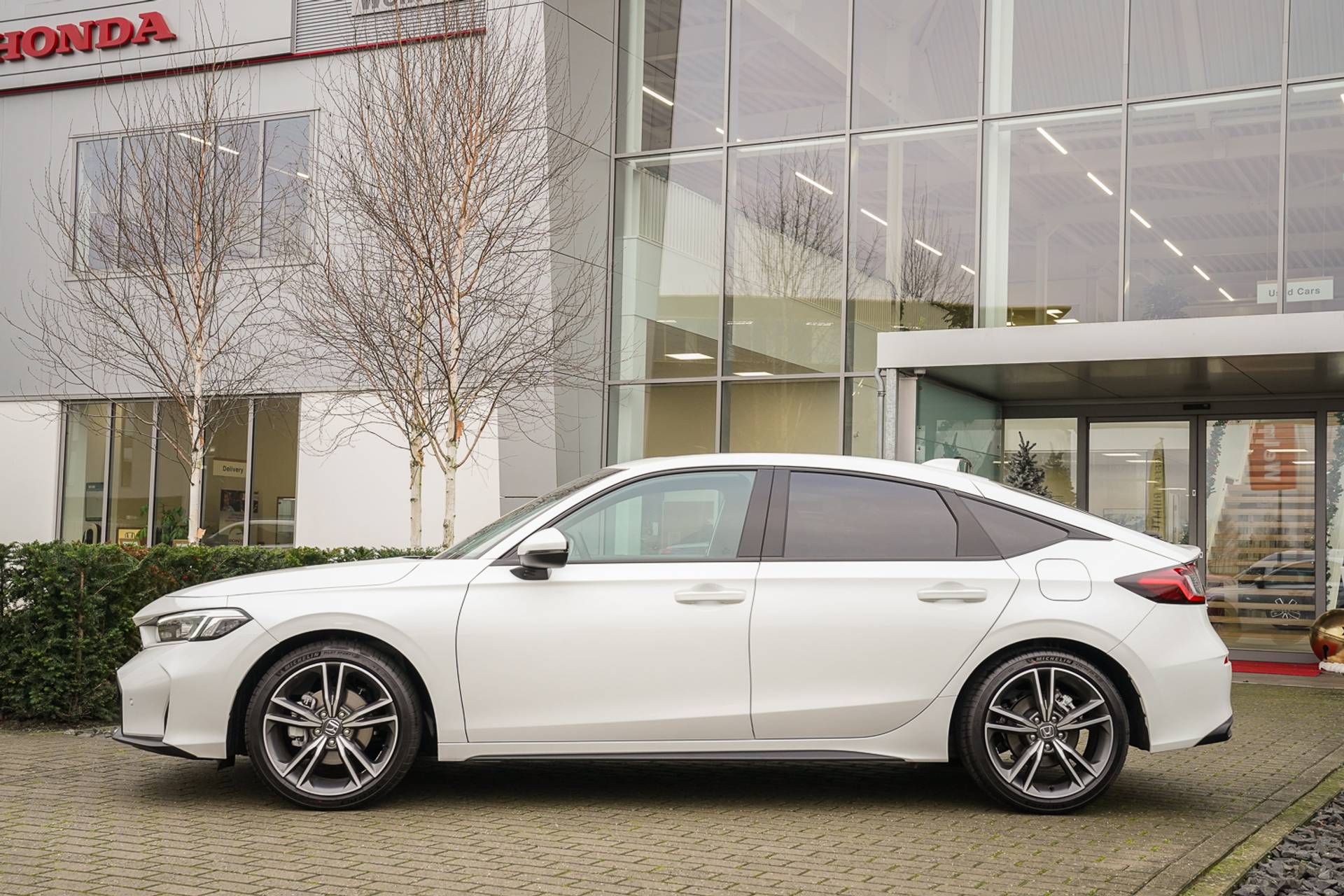 Nieuw en direct uit voorraad leverbaar: Deze Honda Civic Advance e:HEV, modeljaar 2026, nu volledig rijklaar voor € 45.595,- Deze Sportieve en zeer luxe uitvoering van de Civic is rijk uitgerust en voorzien van onder andere Full Nappa lederen interieur, Panorama/schuifdak, Groot 10,2” multifunctioneel informatiescherm, Premium audio Hifi Sound systeem met 12 Bose-luidsprekers, Elektrisch verstelbare voorstoelen, Adaptief grootlicht assistentie, Verwarmd stuurwiel, Elektrische Lendensteun voor beide voorstoelen, Honda Connect Navigatie (met 5 jaar lang gratis kaart updates) Parkeersensoren voor en achter, Adaptieve Cruise control, Wireless telefoon charger, Rijstrookassistentie, Bluetooth carkit, Dual-Zone Climate control, Achteruitrijcamera met parkeerhulp, LED dag -rijverlichting, Privacy Glass, Verkeersbordenherkenning, Stoelverwarming voor en achter, Zwarte raamlijsten, Alarmsysteem, Automatische ruitenwissers, Automatische verlichting met High Beam Support, Dode hoek waarschuwingssysteem en Car Play voor Android of Apple, Automatische airconditioning twee zones, 18" Inch l.m. velgen, Elektrisch Lendensteun voor bestuurder, Blind Spot Information, Achteruitrijcamera, Grootlichtondersteuning, E-Call, Smart Entry & Start, Verwarmbare voorstoelen, Sportpedalen, Alarmsysteem.