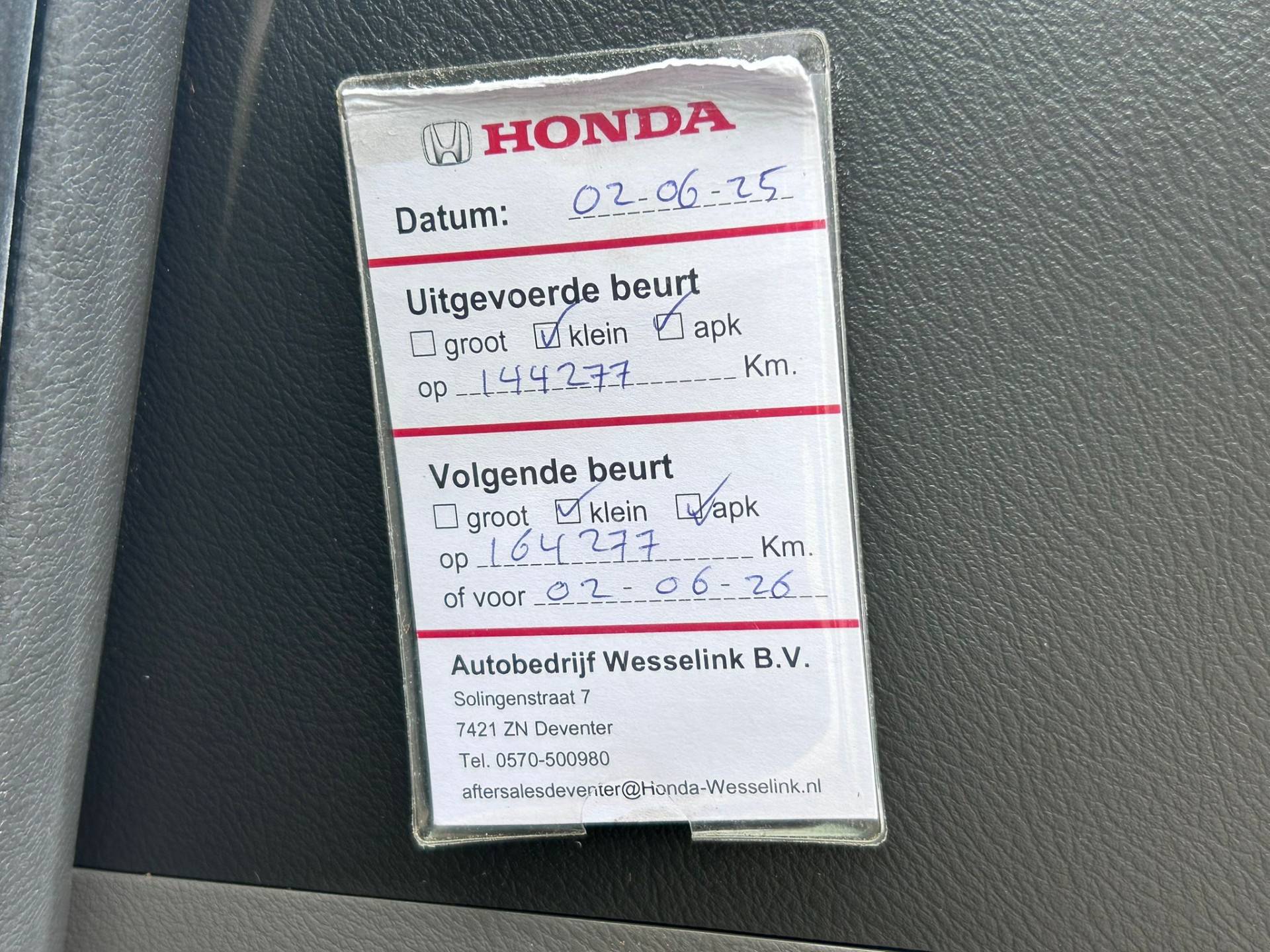 Fabrikant: Wesselink Deventer B.V. Solingenstraat 7 7421ZN DEVENTER, NL 0570-500980 http://www.honda-wesselink.nl info@auto-wesselink.nl