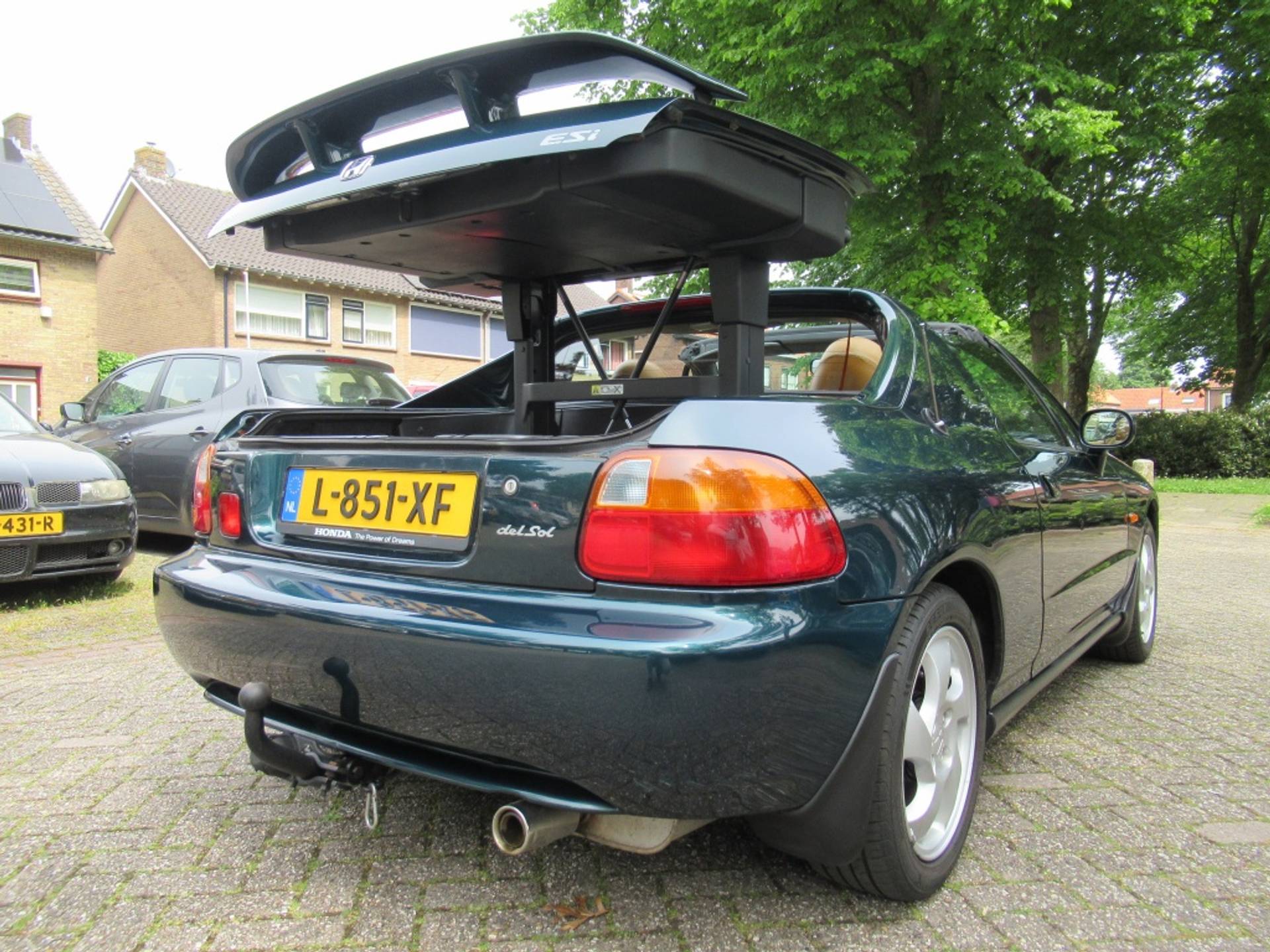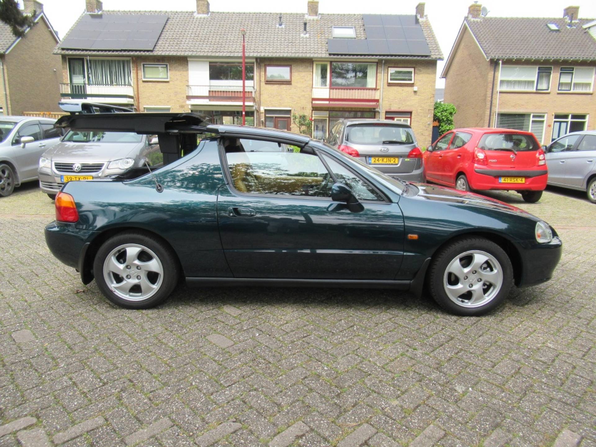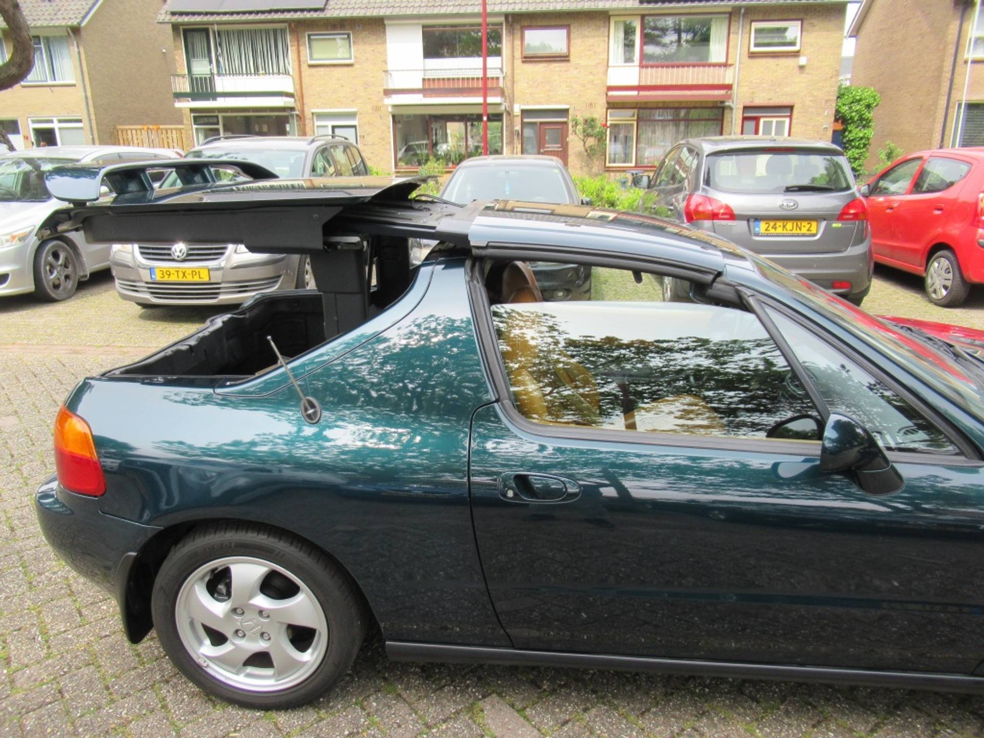 Maar wacht, er is meer! Deze CRX DEL SOL wordt geleverd met zeldzame VTi-velgen, bruin/oranje leer, CRX achterspoiler en een Trekhaak (nergens te vinden), die de uitstraling van de auto versterken. Vergeet niet de ijskoude airconditioning, ooit een dure optie die nu standaard is, waardoor je comfortabel kunt genieten van elke rit, zelfs op de warmste dagen. Dit is een absolute liefhebbersauto, er zijn er weinig in deze staat ( geen roest mooi in de lak etc) en model te vinden!