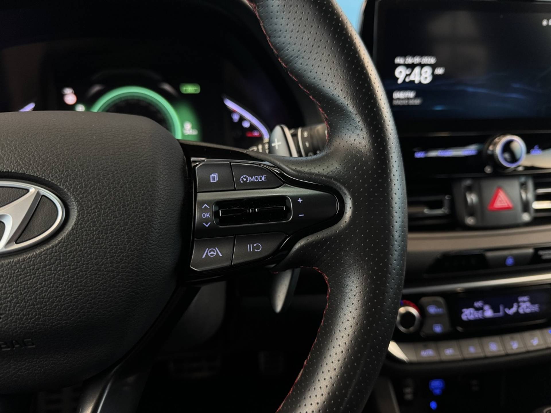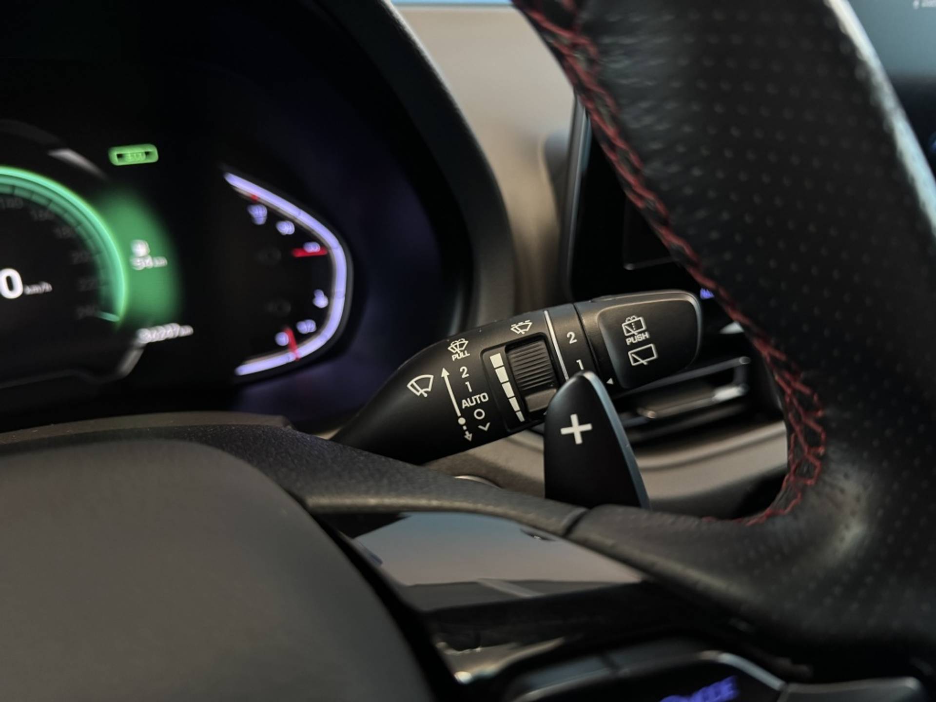 Achteruitrijden en inparkeren worden een eitje dankzij de achteruitrijcamera. Had u de auto nou wel afgesloten? Met Connected Services checkt u het overal en altijd. Voor een veilige rit is het belangrijk dat uw handen het stuur vasthouden en uw ogen gefocust blijven op de weg; daarom kunt u het audiosysteem, met DAB-ontvangst en navigatiesysteem bedienen met het stuurwiel of via spraakbediening. Deze Hyundai i30 is een complete auto anno nu, en dat merk je. Bijvoorbeeld door de aanwezige draadloze oplaadmogelijkheid voor telefoons. Dankzij automatische airconditioning is het interieur behaaglijk warm of verfrissend koel. En dan is deze auto ook nog eens voorzien van schakelpaddles aan het stuur, regensensor, adaptive cruise control, keyless entry, automatisch dimmende spiegels en bagage afdekhoes.