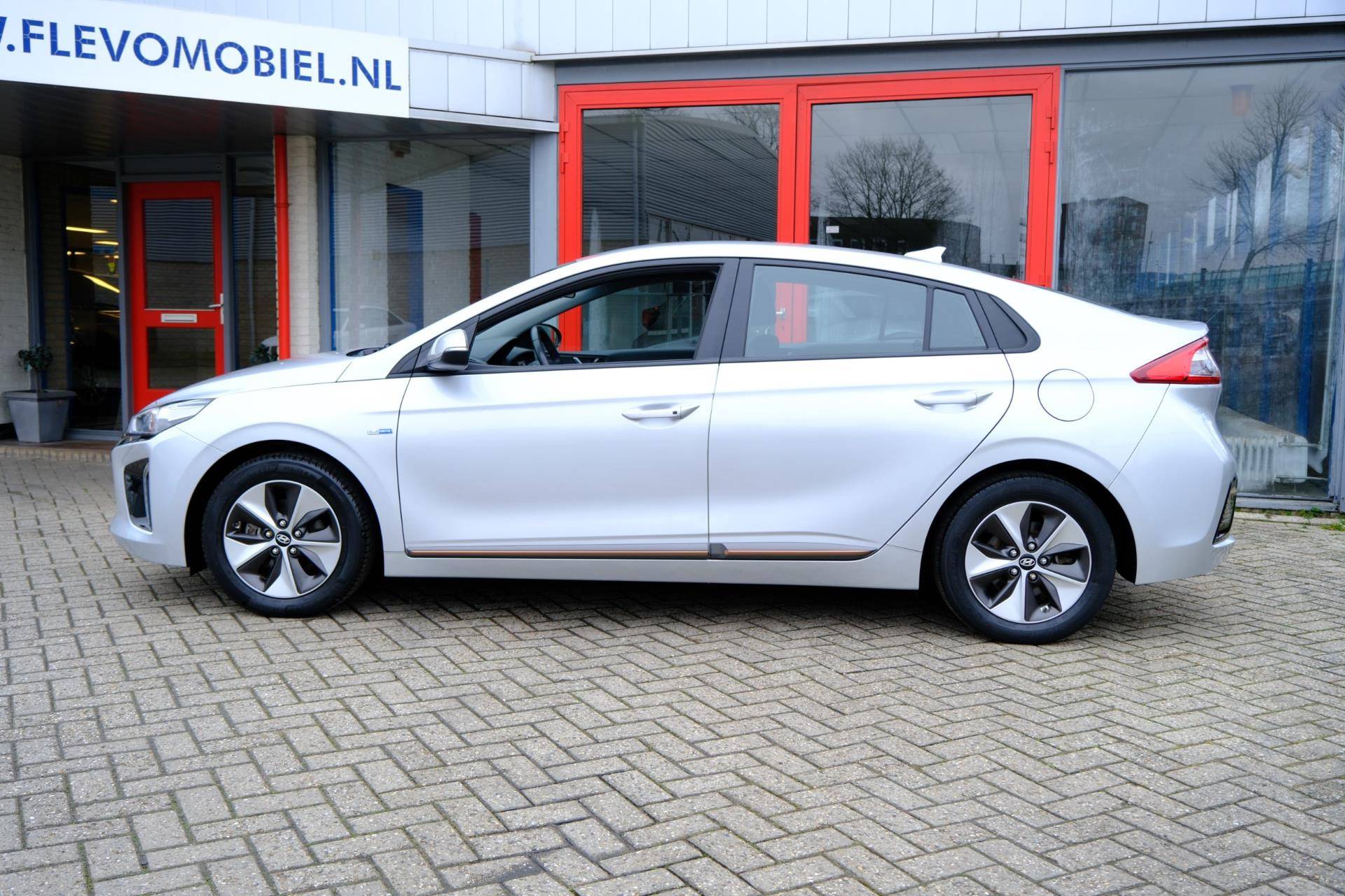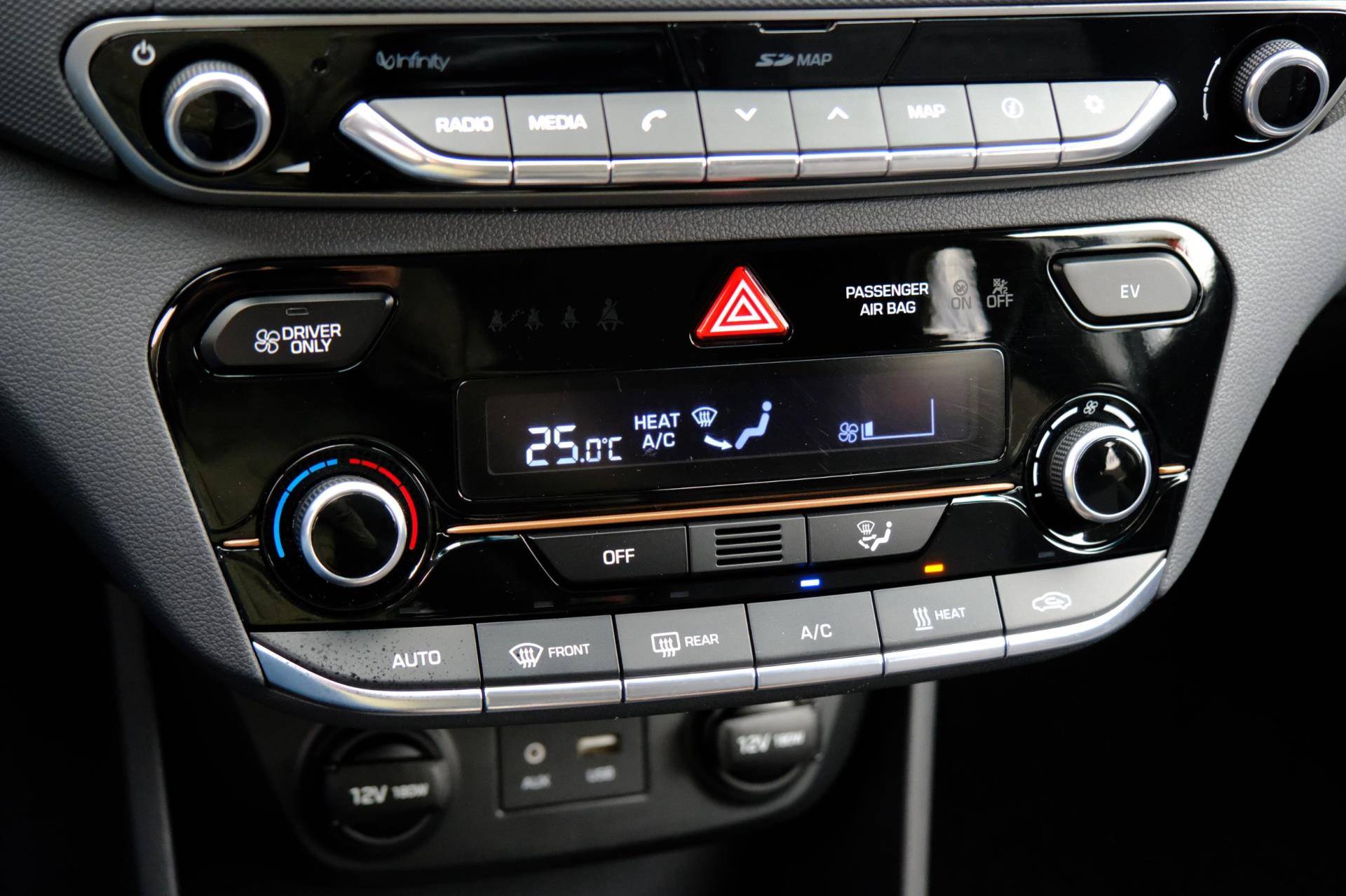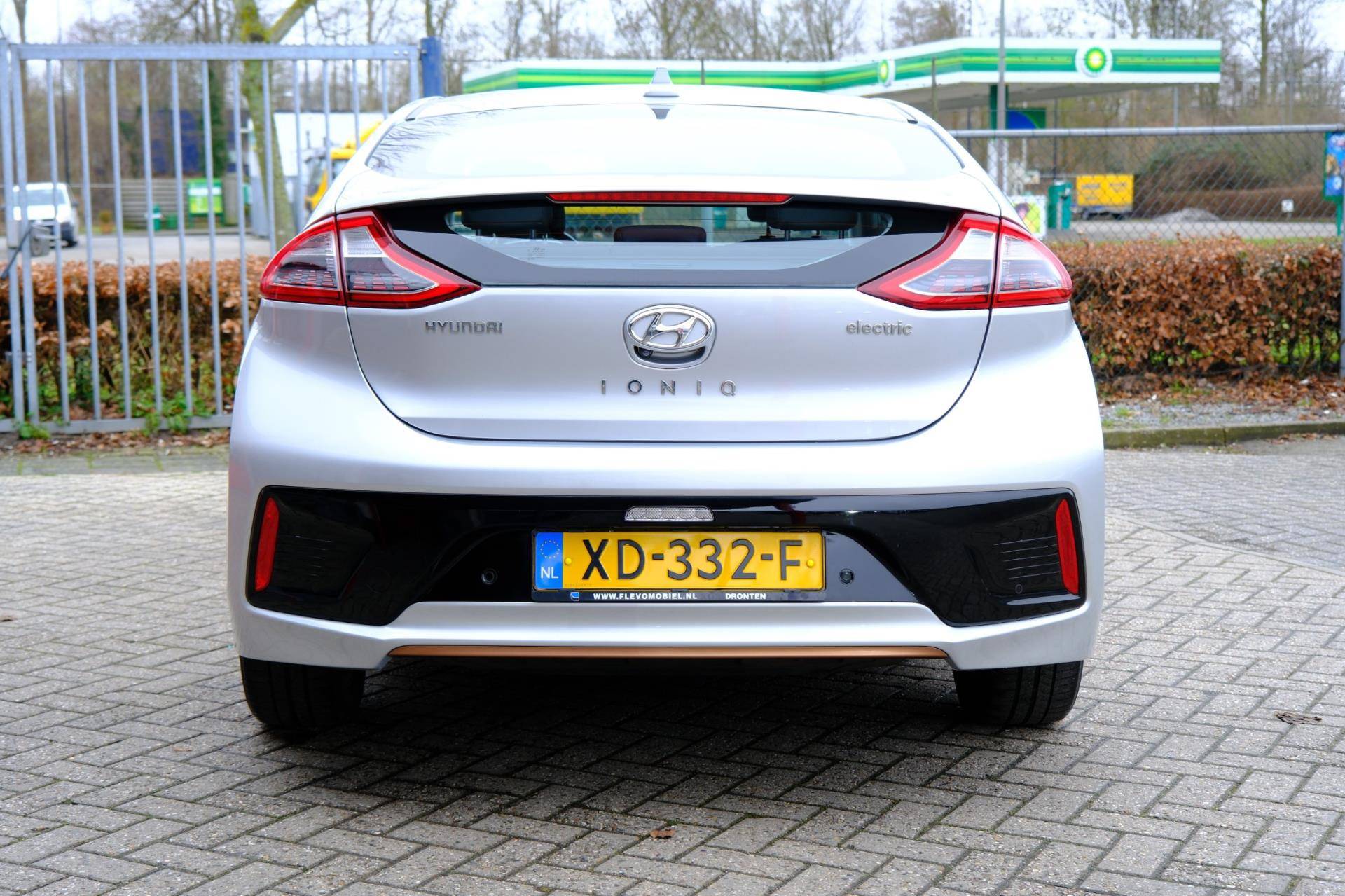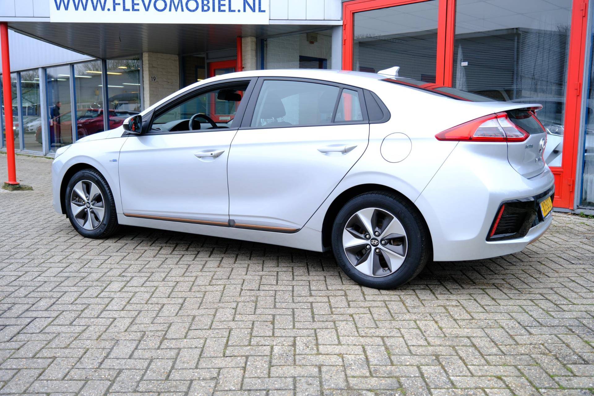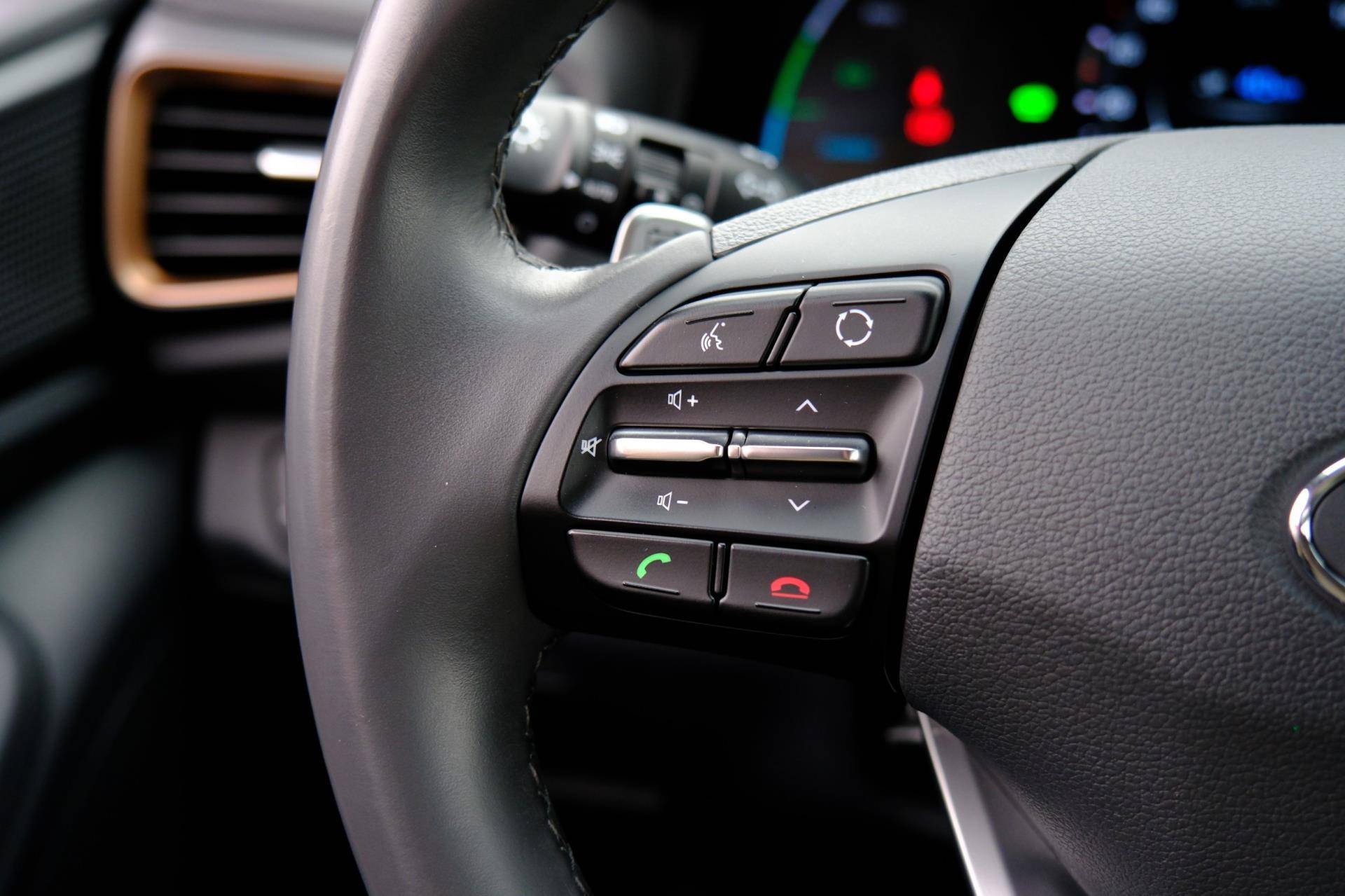Kom maar, kom maar, kom maar... ho! Prettig hoor, zo'n achteruitrijcamera. Adaptive cruise control houdt de ingestelde snelheid vast en houdt afstand tot het voertuig voor u. Deze Hyundai is voorzien van knoppen op het stuur om het navigatiesysteem en het audio-installatiesysteem met DAB-ontvangst te bedienen. Deze Hyundai IONIQ is voorzien van sensoren aan de achterzijde om een achteropkomend verkeer waarschuwing te geven als de afstand tussen u en een achterligger te klein is. De automatische airconditioning zorgt voor een prettige binnentemperatuur. Deze Hyundai is voorzien van keyless entry, lederen stuur, boordcomputer en lederen versnellingspook.