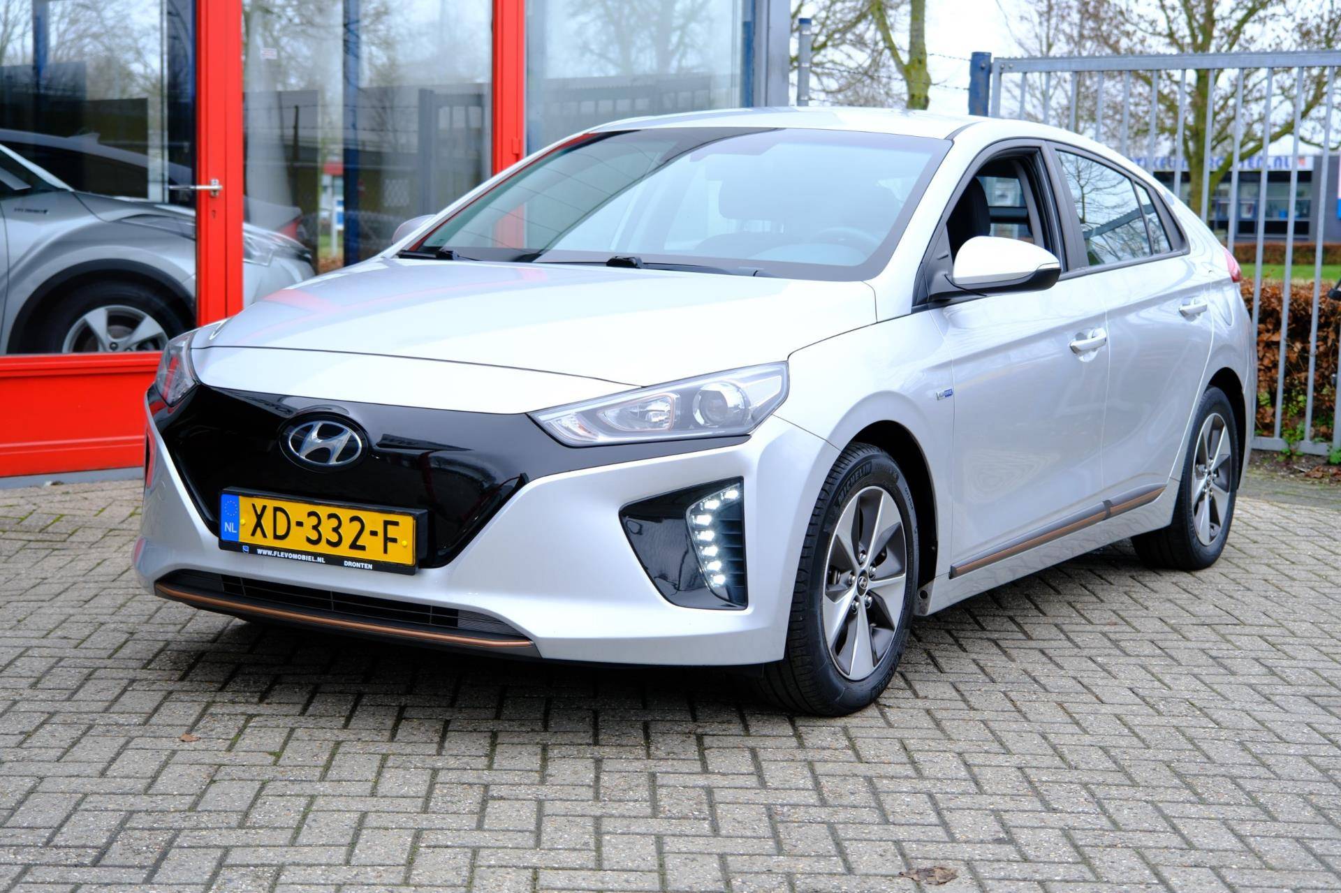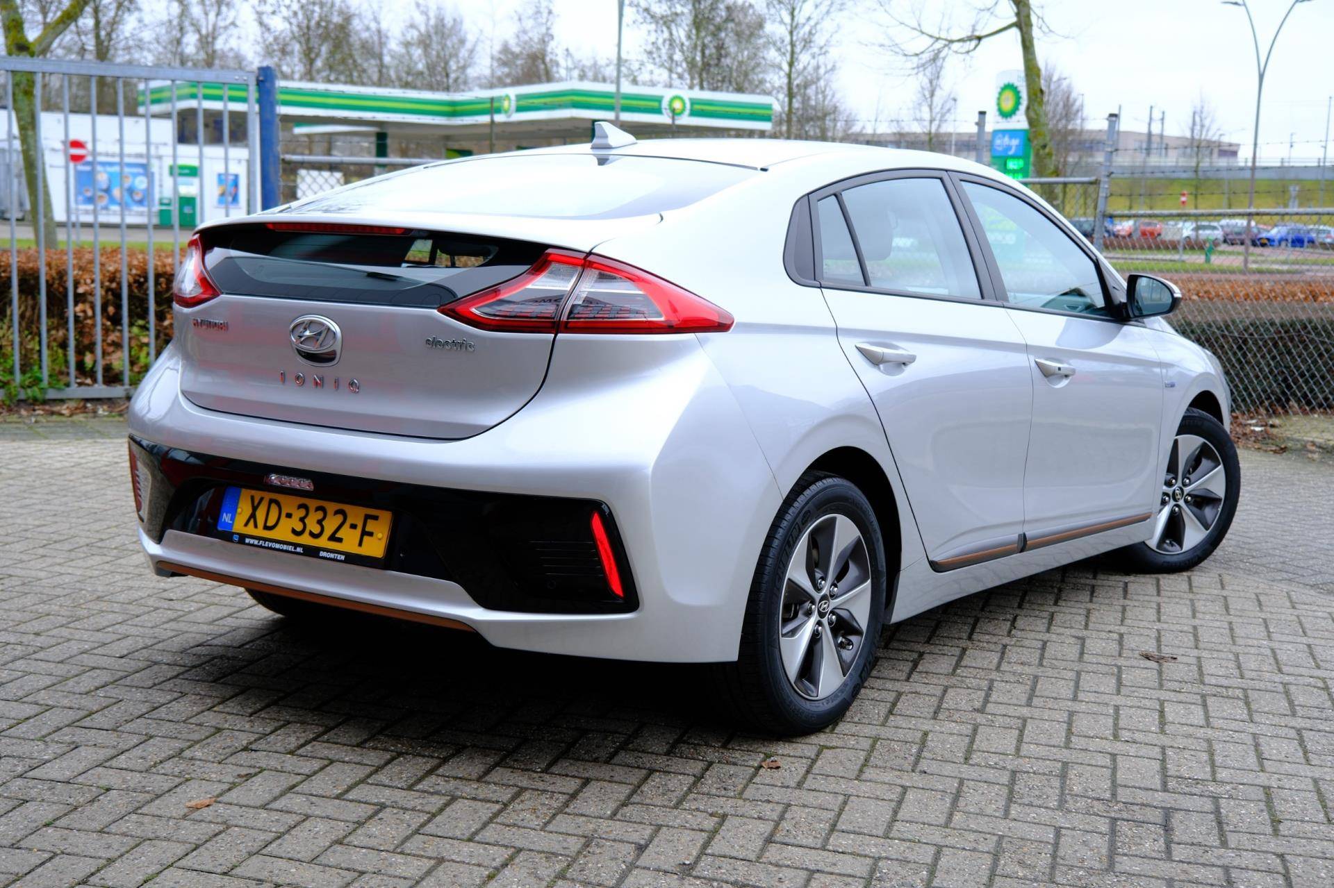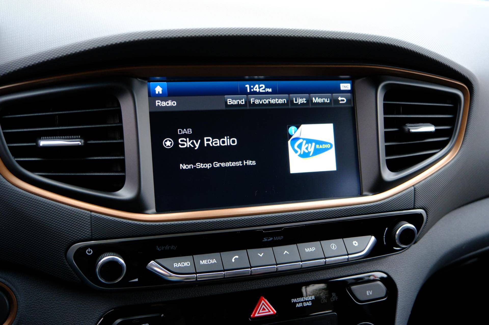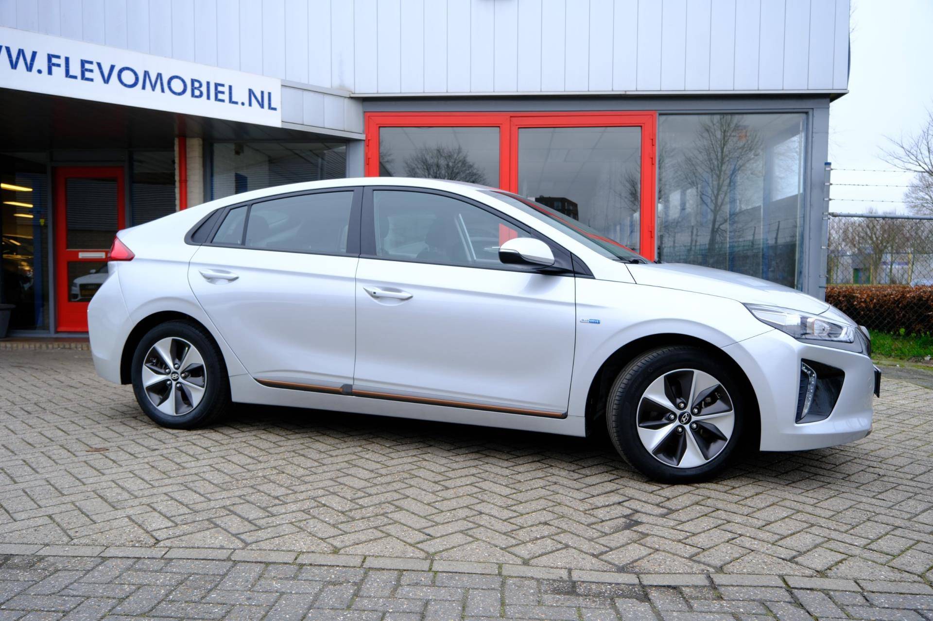 Kom maar, kom maar, kom maar... ho! Prettig hoor, zo'n achteruitrijcamera. Adaptive cruise control houdt de ingestelde snelheid vast en houdt afstand tot het voertuig voor u. Deze Hyundai is voorzien van knoppen op het stuur om het navigatiesysteem en het audio-installatiesysteem met DAB-ontvangst te bedienen. Deze Hyundai IONIQ is voorzien van sensoren aan de achterzijde om een achteropkomend verkeer waarschuwing te geven als de afstand tussen u en een achterligger te klein is. De automatische airconditioning zorgt voor een prettige binnentemperatuur. Deze Hyundai is voorzien van keyless entry, lederen stuur, boordcomputer en lederen versnellingspook.