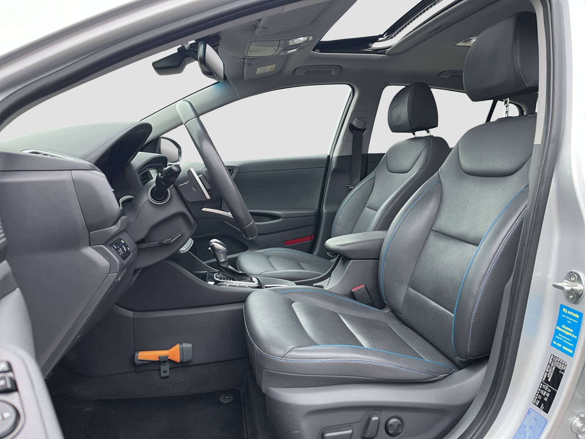 Laat u niets wijsmaken, deze Hyundai IONIQ biedt alles wat u van een auto verlangt. Deze Hyundai IONIQ is voorzien van een hybride motor. Dat betekent dat de aandrijving wordt geleverd door zowel een brandstofmotor als een elektromotor, die slim samenwerken om zuinig over de weg te gaan. Rijcomfort wordt naar een hoger niveau getild in deze auto, met inbegrip van stoelverwarming, een verwarmbare achterbank en een verwarmbaar stuur. Een heerlijk zonnetje, of indrukwekkende wolkenpartijen? Bekijk ze onbelemmerd door het elektrisch bediende glazen panoramadak. Met de krachtige xenonverlichting rijdt u ontspannen in het donker. Bij de uitrusting van deze auto horen onder meer 15 inch lichtmetalen velgen, in delen neerklapbare achterbank, LED-achterlichten en verstelbare lendensteunen. Omdat u nou eenmaal geen ogen in uw achterhoofd heeft, is het altijd lastig om achteruit te rijden zonder brokken te maken. De achteruitrijcamera lost dat probleem op. Als u de adaptive cruise control inschakelt, regelt de auto zelf de snelheid en de afstand tot de auto voor u. Met de knoppen op het stuur regelt u het audio-installatiesysteem en het full map navigatiesysteem, terwijl u uw blik op de weg gericht houdt. De audio-installatie biedt daarbij glasheldere ontvangst dankzij DAB-ontvangst. Geen onnodige spaghetti van oplaadsnoertjes voor de smartphone: deze Hyundai IONIQ heeft een draadloze oplaadmogelijkheid voor telefoons. Bij het wisselen van rijbaan kan een dode hoek ontstaan waardoor achterliggers te dichtbij kunnen komen. De achteropkomend verkeer waarschuwing geeft in dat geval automatisch een signaal. Met automatische airconditioning, regensensor, keyless entry, automatisch dimmende binnenspiegel en boordcomputer is deze Hyundai helemaal compleet. De nieuwste veiligheidssystemen komen in deze Hyundai IONIQ samen. Het Lane-keeping systeem registreert permanent of u binnen de lijnen van de rijstrook blijft; dwaalt u onbedoeld af, dan waarschuwt het systeem en corrigeert de koers. De forward collision warning reduceert het gevaar van een botsing met een voorligger significant. De auto is ook uitgerust met dodehoekdetectie, hill hold functie, autonoom remsysteem en bandenspanningcontrolesysteem. Even bellen voor een afspraak en u kunt deze auto van top tot teen zelf bekijken.