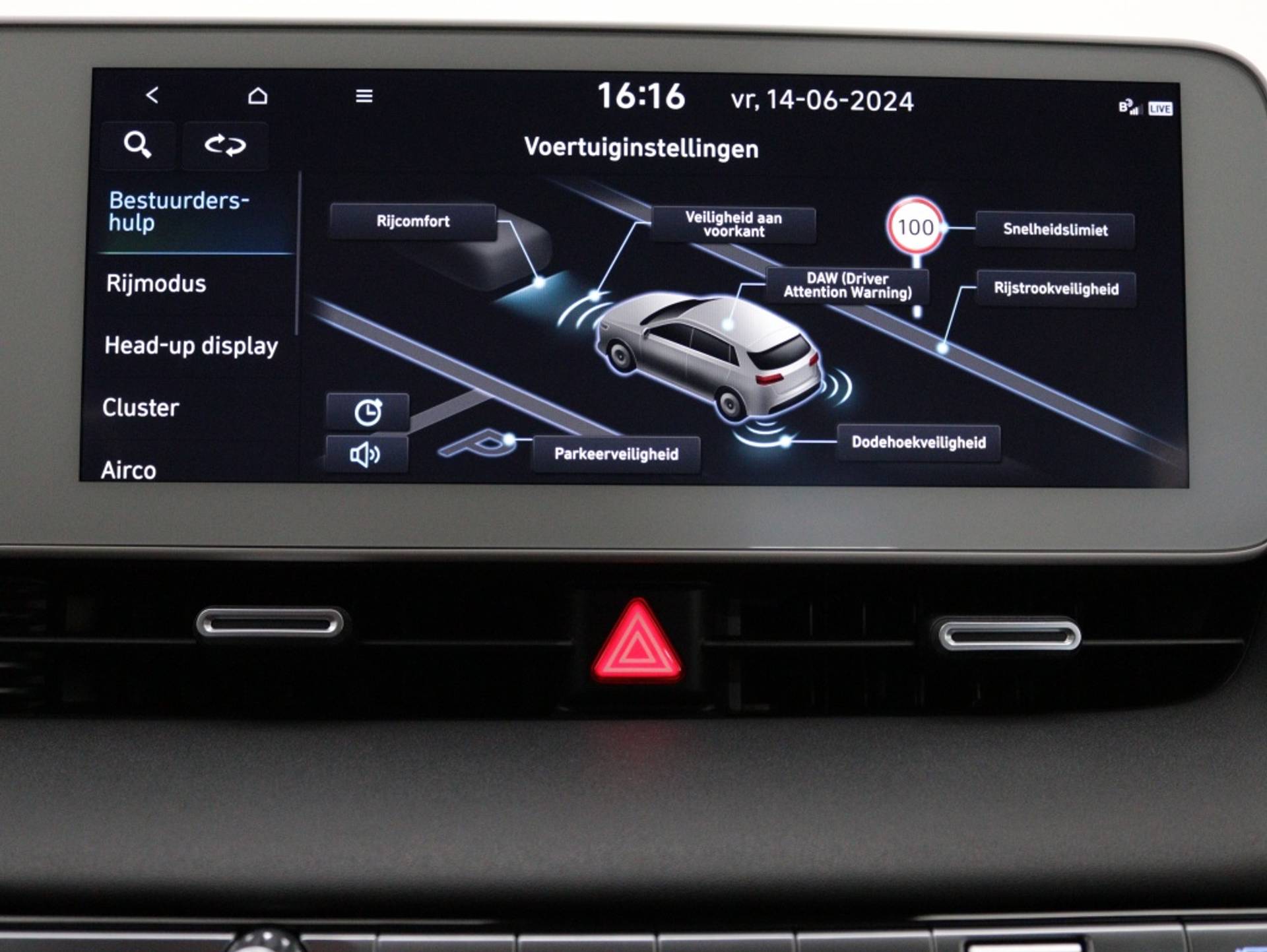Het head-up display van deze auto zorgt ervoor dat u alle belangrijke informatie zoals snelheid en navigatie-instructies gemakkelijk kunt aflezen zonder uw ogen van de weg te halen. Dit draagt bij aan een veilige en comfortabele rijervaring, waarbij u altijd volledig geïnformeerd achter het stuur zit.