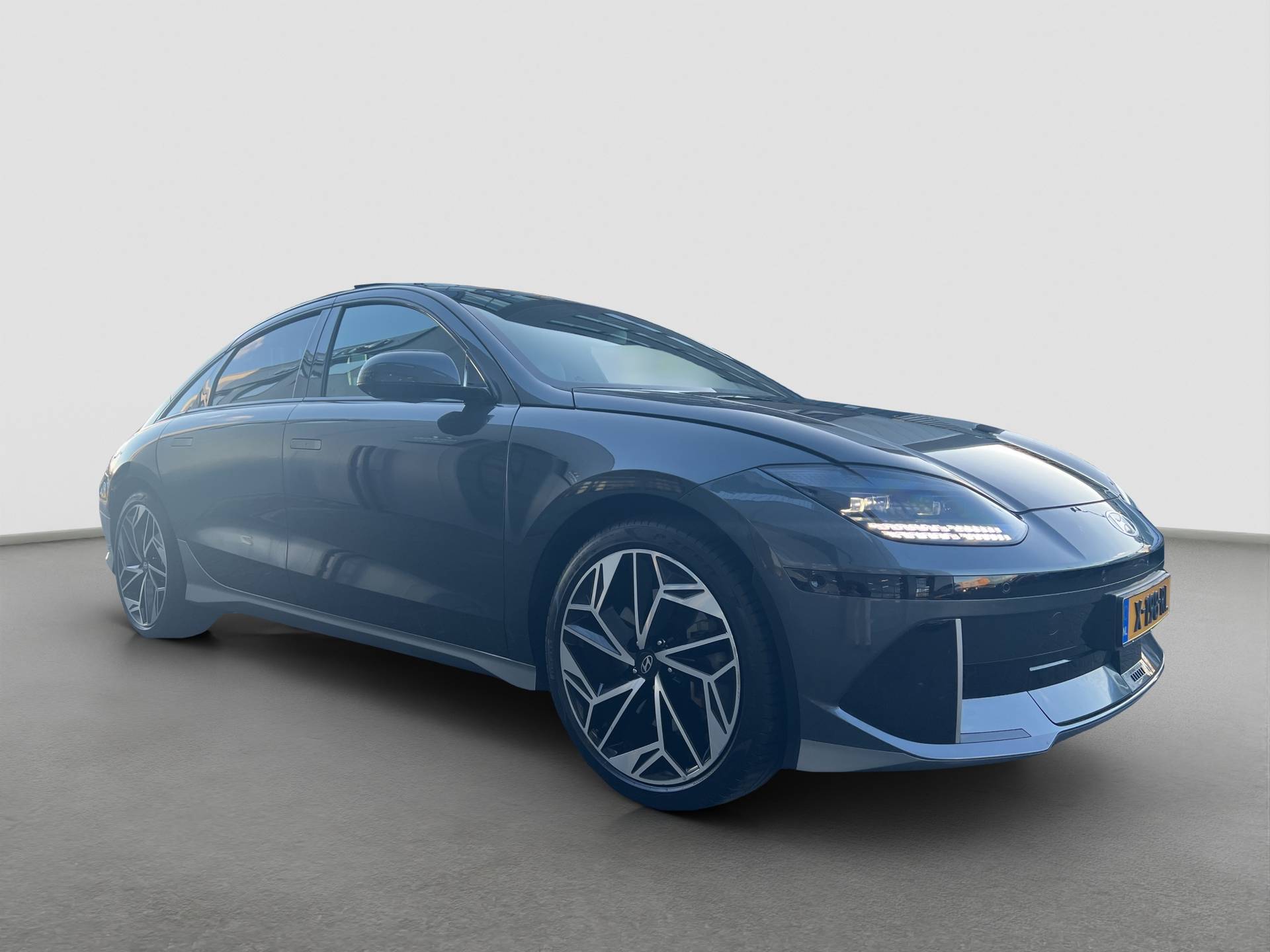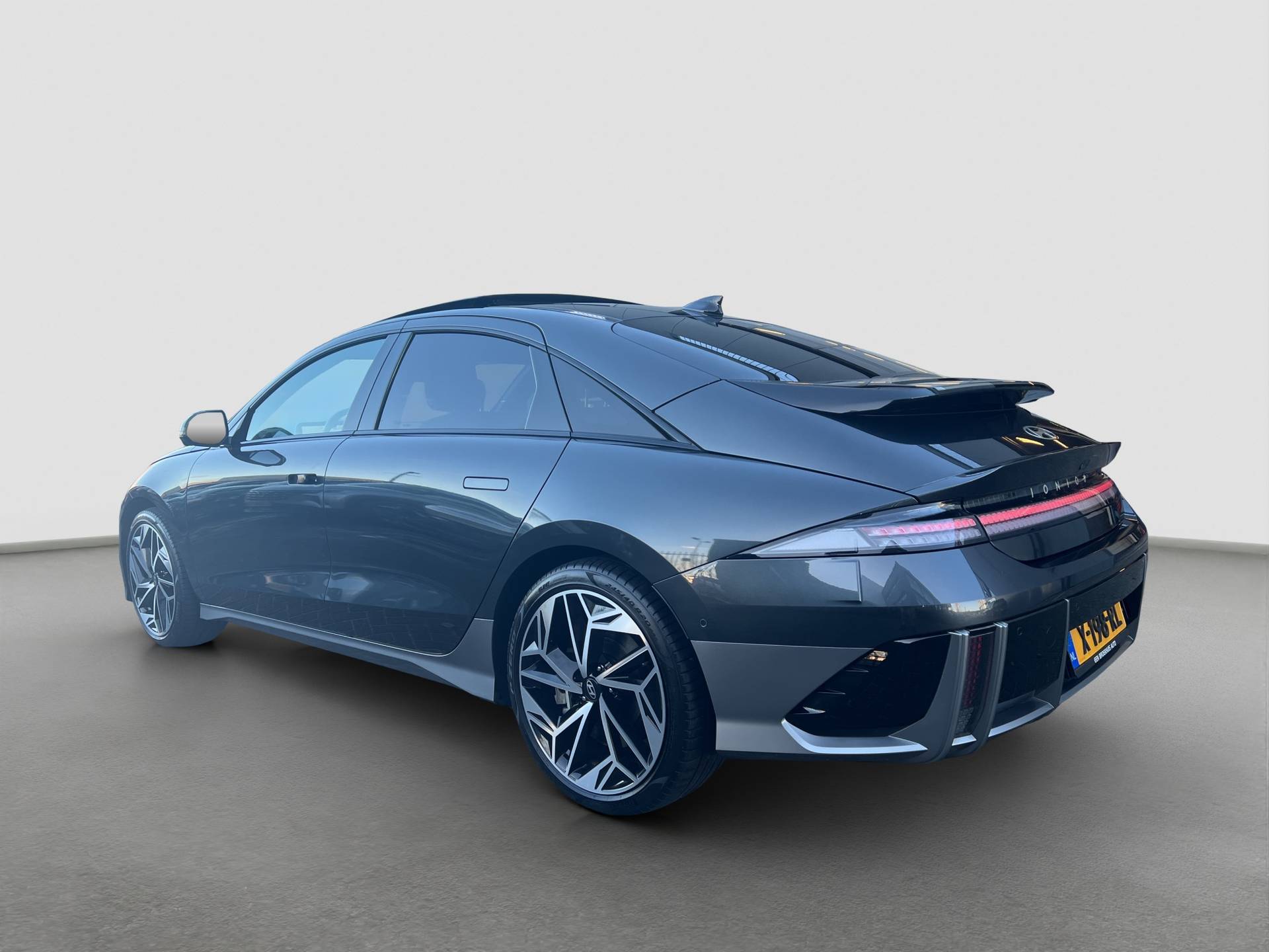 Bij Hyundai geldt het motto 'New Thinking. New Possibilities'. En dat merk je aan ieder model. De batterijtechniek heeft de afgelopen jaren enorme vooruitgang geboekt, zodat u met deze auto op een volle acculading echt ver kunt komen. En als u de auto 's avonds aan de lader koppelt, is hij de volgende dag weer helemaal vol. Een krachtige motor geeft deze auto zijn sportieve prestaties. Elke rit in deze Hyundai IONIQ 6 heeft een tikje meer, dankzij het lederen interieur. Zelfs als het buiten ijzig koud is, kunnen zowel de bestuurder als de passagiers op de achterbank snel opwarmen, dankzij de verwarmbare stuurwiel en de achterbankverwarming. Met een druk op de knop gaat de elektrische achterklep open. Het glazen panoramadak biedt u een breed zicht op de omgeving. In deze auto profiteert u onder andere ook van: 20 inch lichtmetalen velgen, LED koplampen, adaptief dempingsysteem, warmtewerend glas, in delen neerklapbare achterbank en LED-achterlichten. Dankzij het digitale dashboard in deze auto kan u de interface van uw cockpit personaliseren. De functie van de 360 graden camera in deze auto is om u een totaaloverzicht van de omgeving te geven, ongeacht hoe smal de straat of parkeerplek is. Met adaptive cruise control houdt de auto zelfstandig afstand tot uw voorligger. Een veiligheidsverhogende optie waarmee u comfortabel onderweg bent. Dankzij Connected Services heeft u overal en altijd uw dashboard op zak. Alle belangrijke functies zijn te checken via de app. Qua muziekbeleving onderweg gaat deze auto ook een stevige stap verder dankzij het high performance audiosysteem. De uitrusting van deze auto is met dashboard met spraakbediening, navigatiesysteem, kruisend verkeer detectie, automatische airconditioning, draadloos opladen en DAB ontvangst behoorlijk compleet. Met de nieuwste technologieën aan boord is deze Hyundai in staat om zelf te reageren op potentieel gevaarlijke situaties op de weg. U verliest de weg geen seconde uit het oog. De dashboardinfo wordt in uw zichtveld geprojecteerd door de head-up display. Dat de auto steeds meer taken van de bestuurder overneemt, merkt u bijvoorbeeld aan het systeem voor verkeersbord-detectie in deze Hyundai. Deze Hyundai IONIQ 6 is ook behulpzaam als het gaat om een rechte koers. Het Lane-keeping systeem signaleert en corrigeert als u onbedoeld de rijstrooklijnen dreigt te overschrijden. Dankzij veiligheidsvoorzieningen als dodehoekdetector detectiesysteem, hill hold functie, autonoom remsysteem en bandenspanningcontrolesysteem, bent u steeds veilig onderweg. Misschien wilt u eerst een afspraak maken om te beleven waarom elektrisch rijden de toekomst heeft. Natuurlijk! Neem contact op en maak een proefrit!