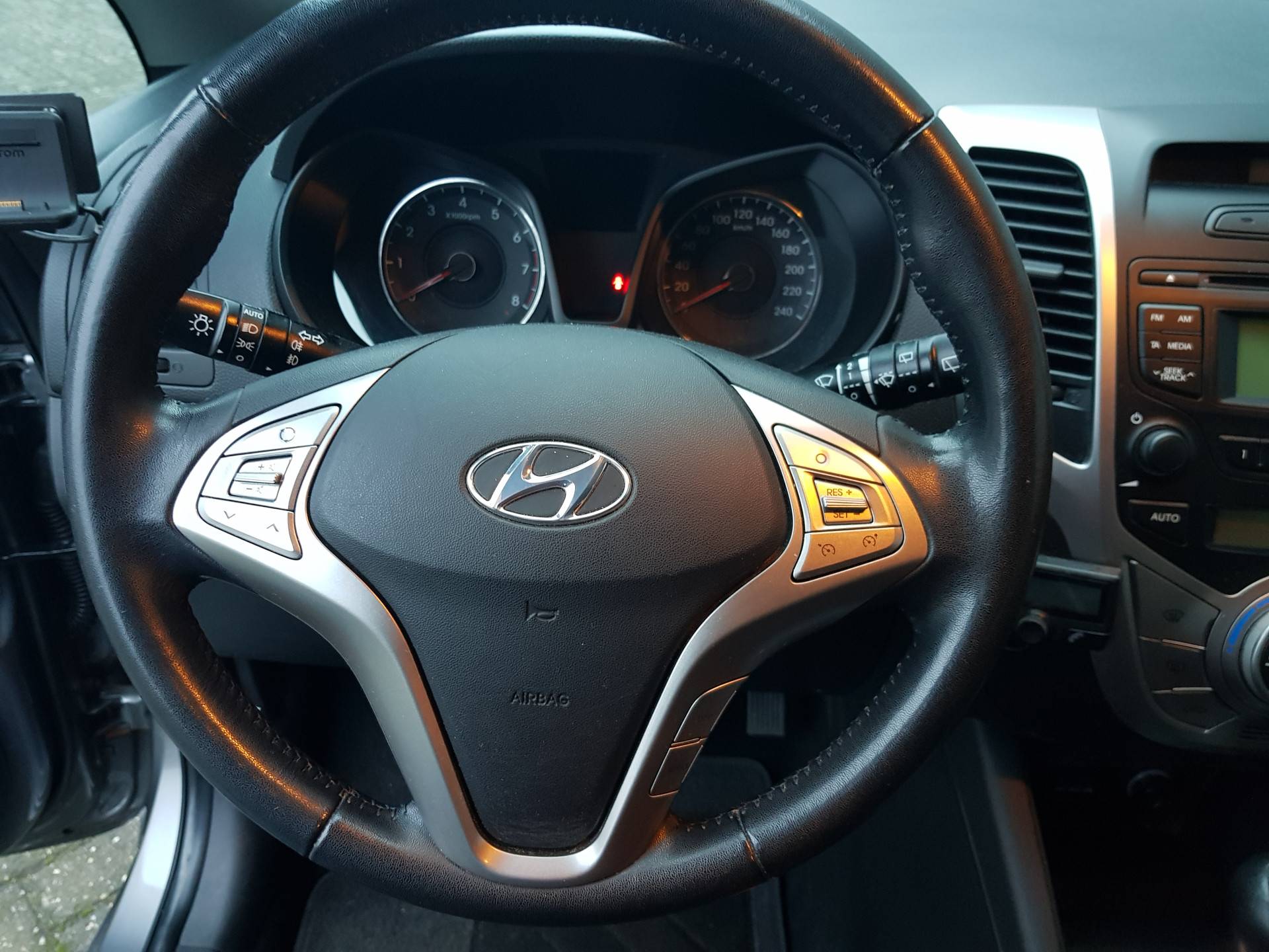 Onderweg geniet u van de kwaliteit van het audiosysteem. De bediening is bovendien gemakkelijk via knoppen op het stuur. De auto is ook uitgevoerd met automatische airconditioning. Parkeersensoren ondersteunen u tijdens het in- en uitparkeren. Zuinig zoeven, dat kan deze auto dankzij de aanwezige cruise control. Ook is de Hyundai uitgerust met: buitentemperatuurmeter, lederen stuur, isofix-aansluiting, centrale deurvergrendeling met afstandsbediening, bagage afdekhoes en boordcomputer.