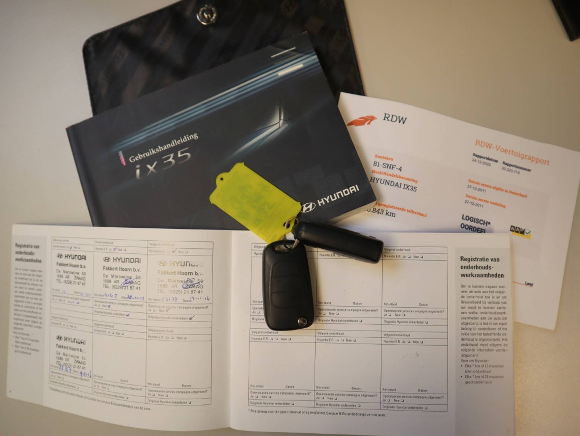 Bovag Vakgarage Stroet in Zwaag (gem.Hoorn) biedt u aan: Van 1e eigenaar deze originele Nederlandse Hyundai ix35 van bouwjaar 27-12-2011 en met slechts 56.800 km, de NAP is aanwezig en tevens is het onderhoudsboekje bij de auto. Wij hebben op deze ix35 slechts 400 km geleden nog haar onderhoudsbeurt uitgevoerd en de APK is tot 27-12-2026