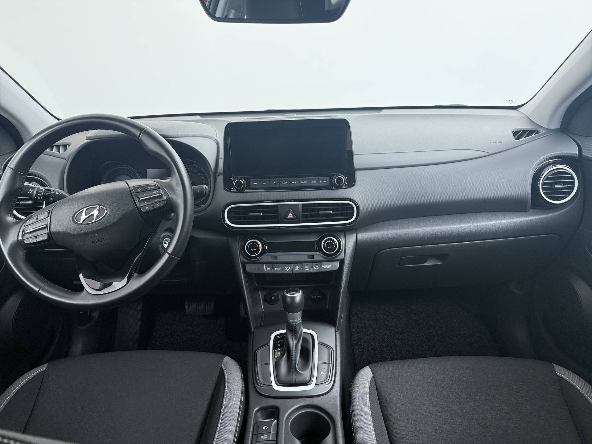Ontspannen en zorgeloos autorijden, dat doet u met deze Hyundai KONA. Deze hybride heeft dankzij de extra elektromotor een zeer laag brandstofverbruik. Tot de uitrusting behoren ook 16 inch lichtmetalen velgen, dakspoiler, in delen neerklapbare achterbank en verstelbare lendensteunen. Een vergeten muurtje, een verborgen paaltje? Dat gebeurt niet meer, dankzij de achteruitrijcamera. Als u de adaptive cruise control inschakelt, regelt de auto zelf de snelheid en de afstand tot de auto voor u. Spraakbediening verhoogt de veiligheid en het gebruiksgemak. De auto luistert naar uw instructies en volgt ze op. Of het buiten nu warm is of koud, dankzij automatische airconditioning is het binnen altijd behaaglijk. Met de DAB-ontvanger luistert u naar glasheldere digitale radio. Deze auto is voorzien van sportstuur met schakelpaddels, centrale deurvergrendeling met afstandsbediening, bagage afdekhoes en boordcomputer. Geavanceerde systemen kunnen tijdens de rit bepaalde taken van u overnemen. Zo kijken er als het ware steeds extra ogen met u mee, zodat u tijdig kunt reageren op noodsituaties. Met het Lane-keeping systeem komt u nooit per ongeluk buiten de rijstrook. Kop-staartbotsingen vormen een belangrijk deel van de meest voorkomende aanrijdingen. De forward collision warning van deze auto voorkomt zulke botsingen geheel of reduceert de ernst van de schade aanzienlijk. Ook is deze auto uitgerust met een systeem dat u waarschuwt wanneer u achter het stuur in slaap dreigt te vallen. U bent mede dankzij hill hold functie, autonoom remsysteem en bandenspanningcontrolesysteem steeds veilig onderweg. We doen ons best om deze auto voor u te omschrijven, maar het beste ervaart u hem als hij voor u staat. Neemt u snel contact met ons op voor een afspraak?