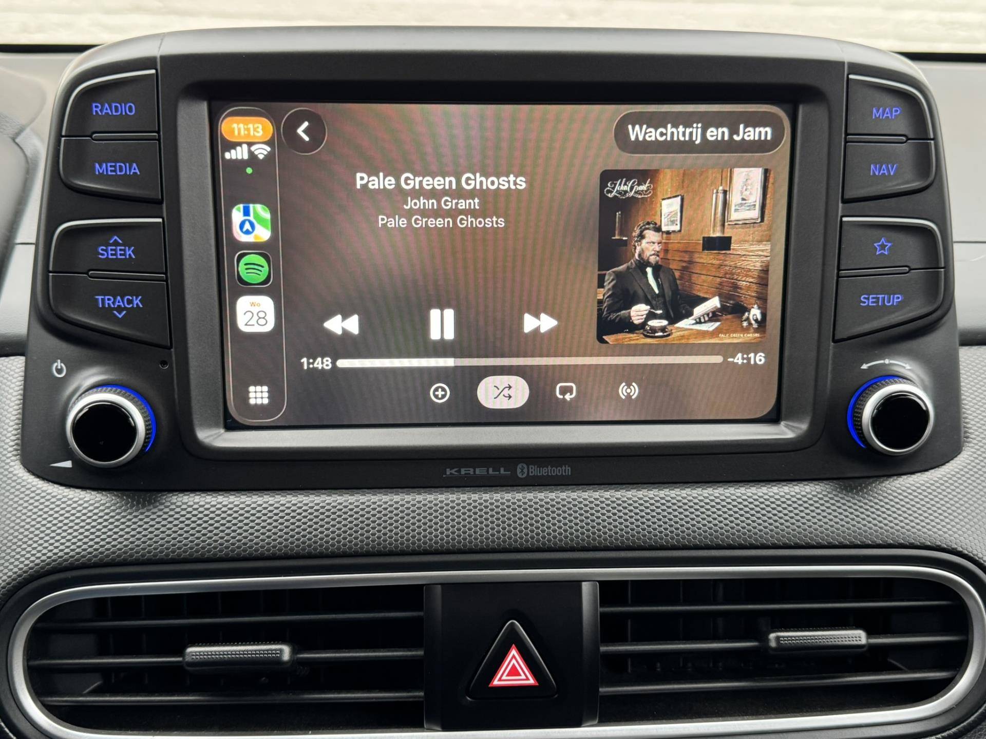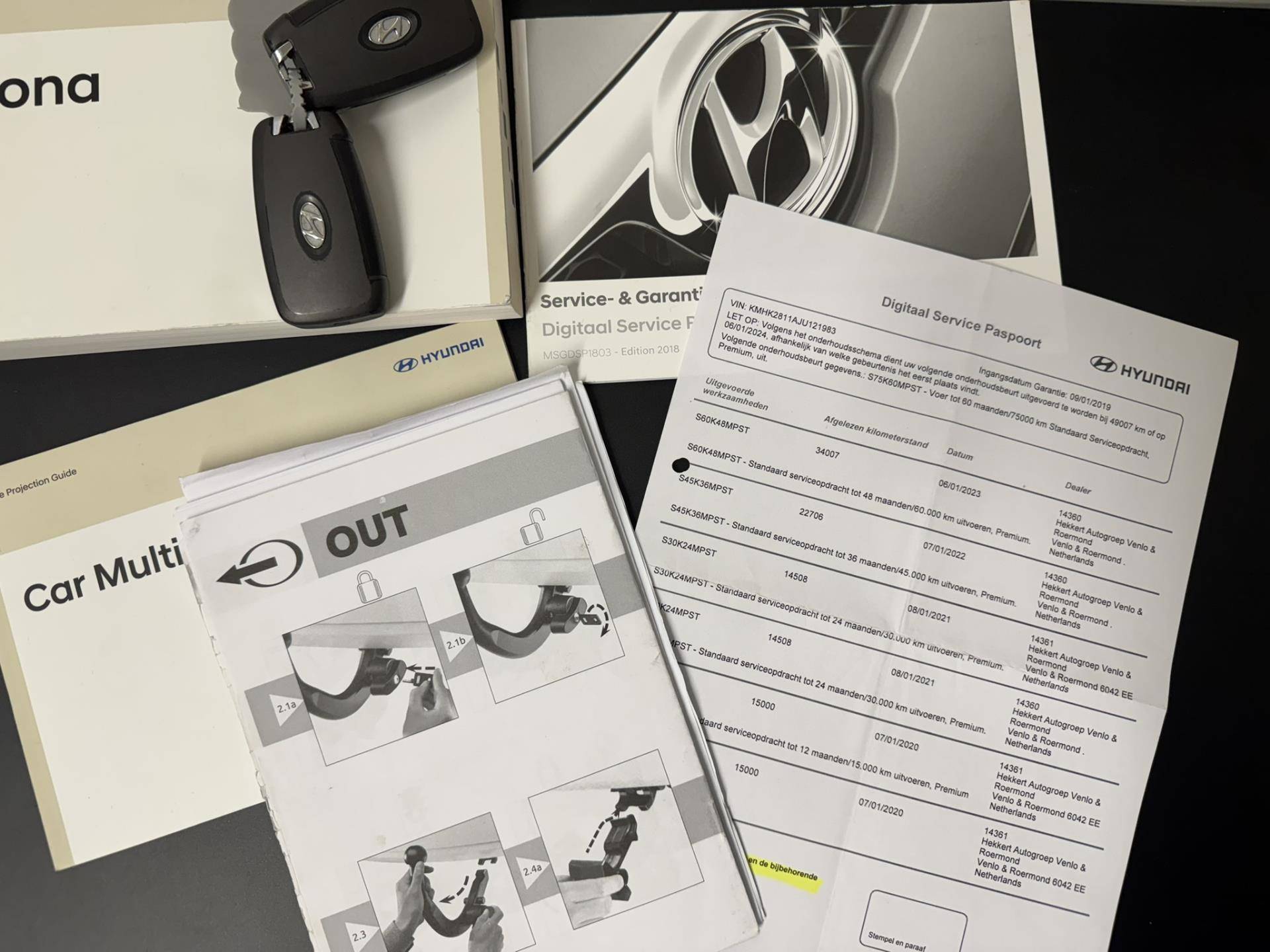 Zeer nette, goed uitziende Kona in een mooie rood metallic kleur. De auto ziet er van binnen en buiten goed uit en is voorzien van mooie 16"lichtmetalen velgen met all-season banden, LED dagrijverlichting, en een afneembare trekhaak. Binnen vindt je climate control, cruise control, achteruitrij camera plus sensoren achter, Apple/Android, Krell audio, navigatie en meer. De auto is keurig onderhouden en de laatste beurt is geweest bij 43.606 kilometer.