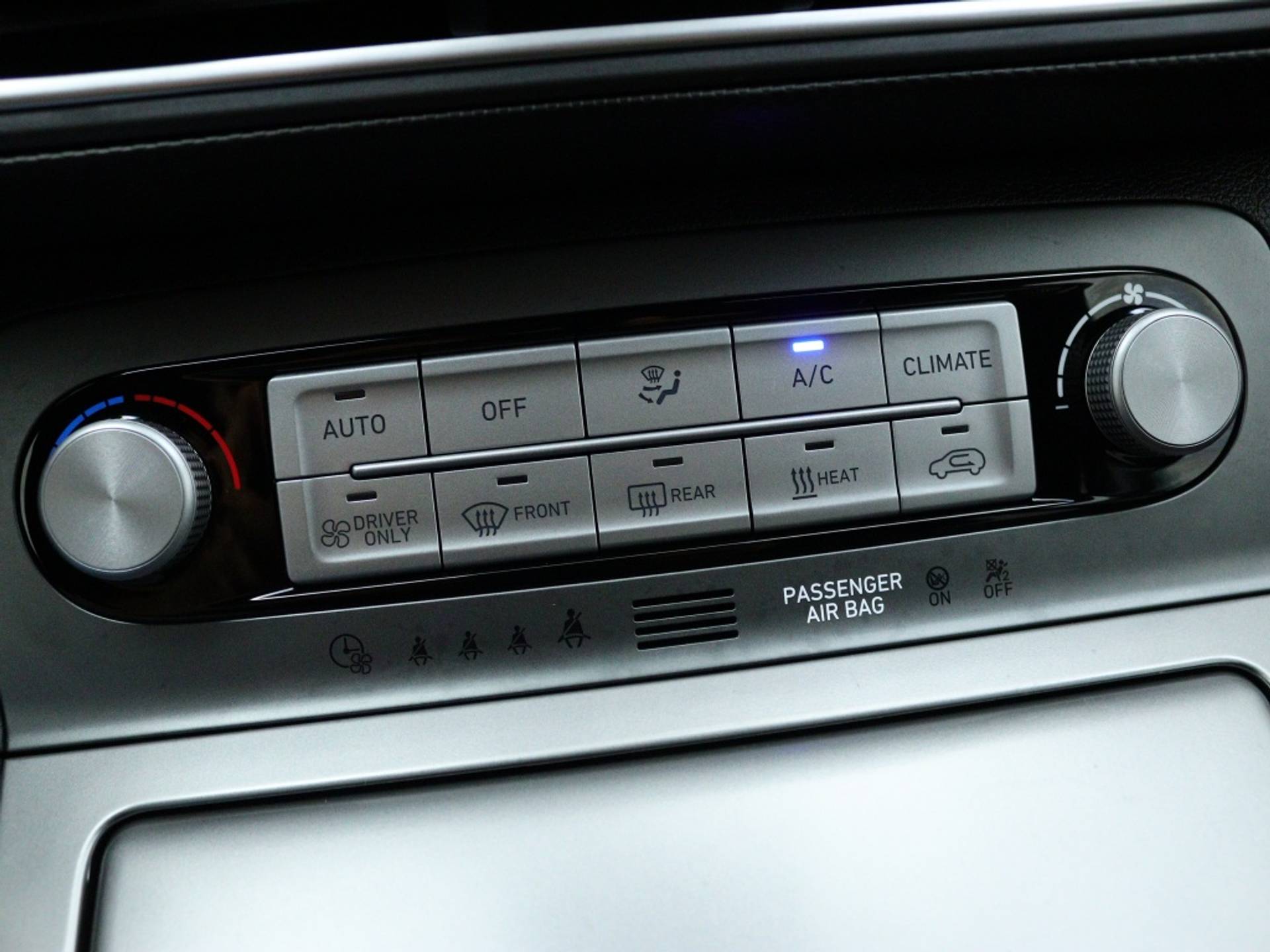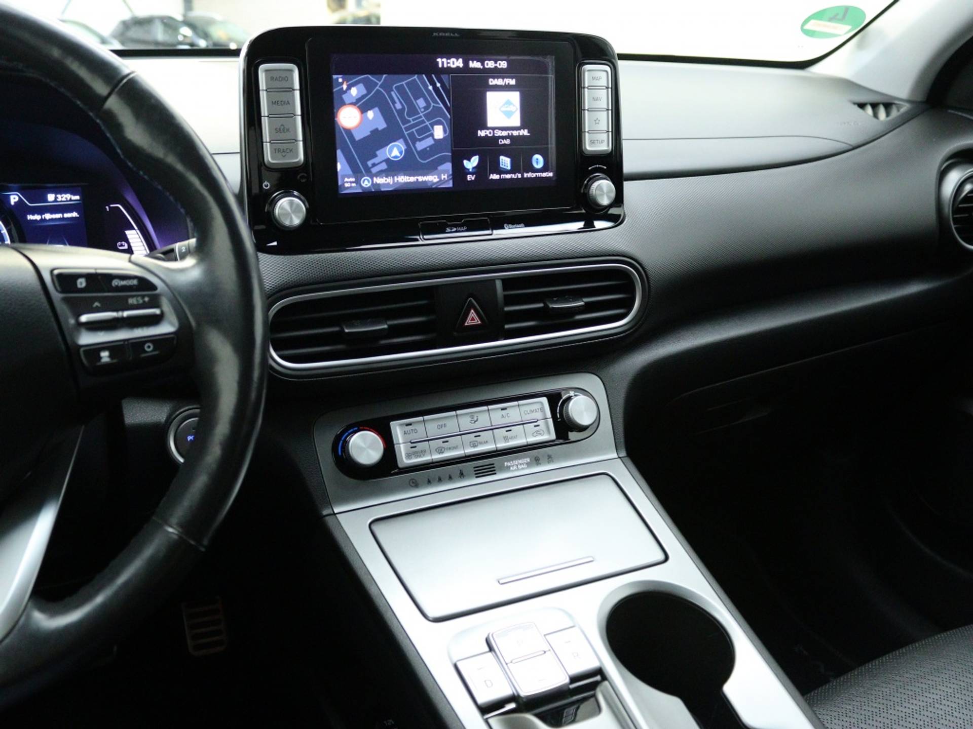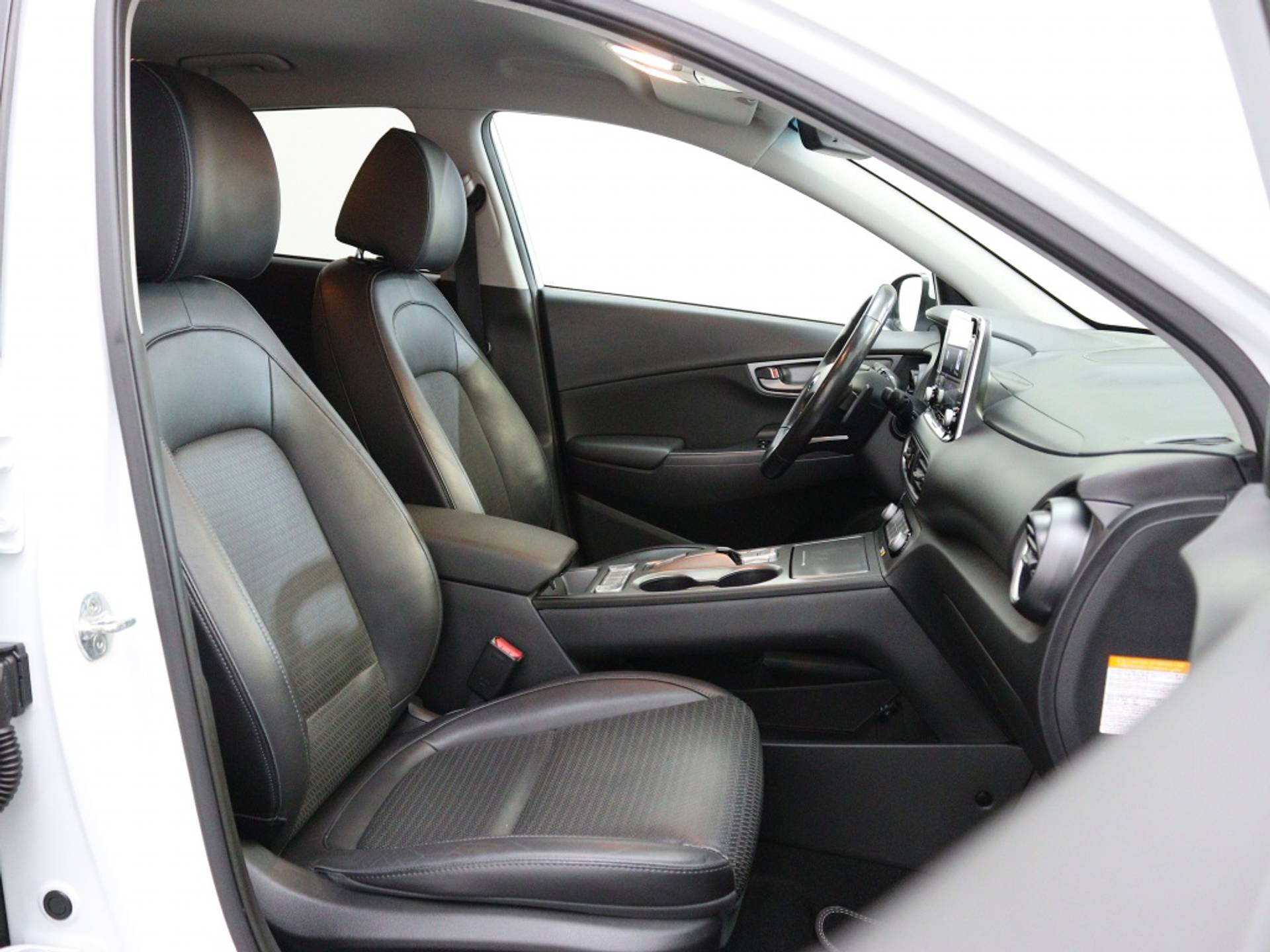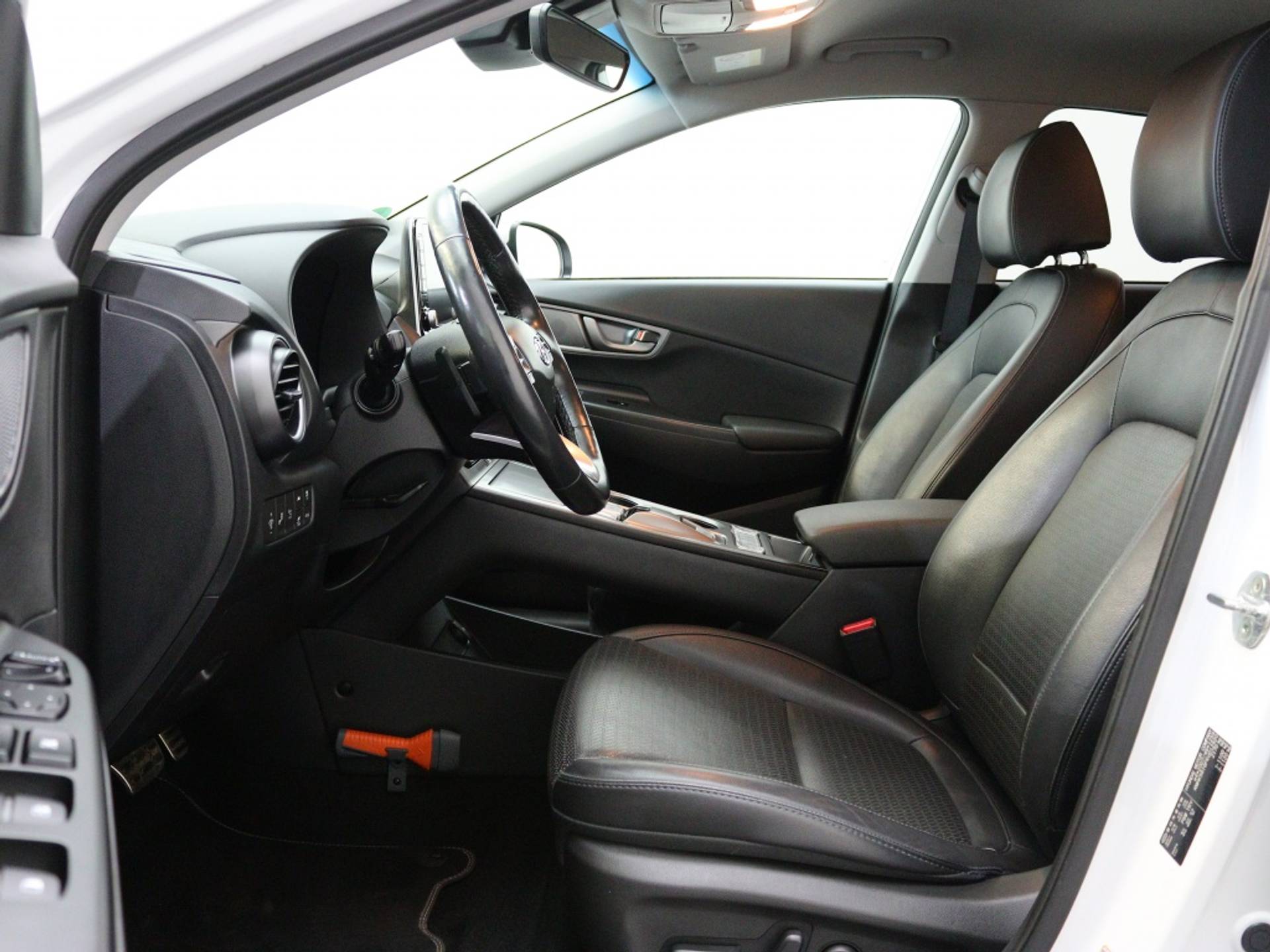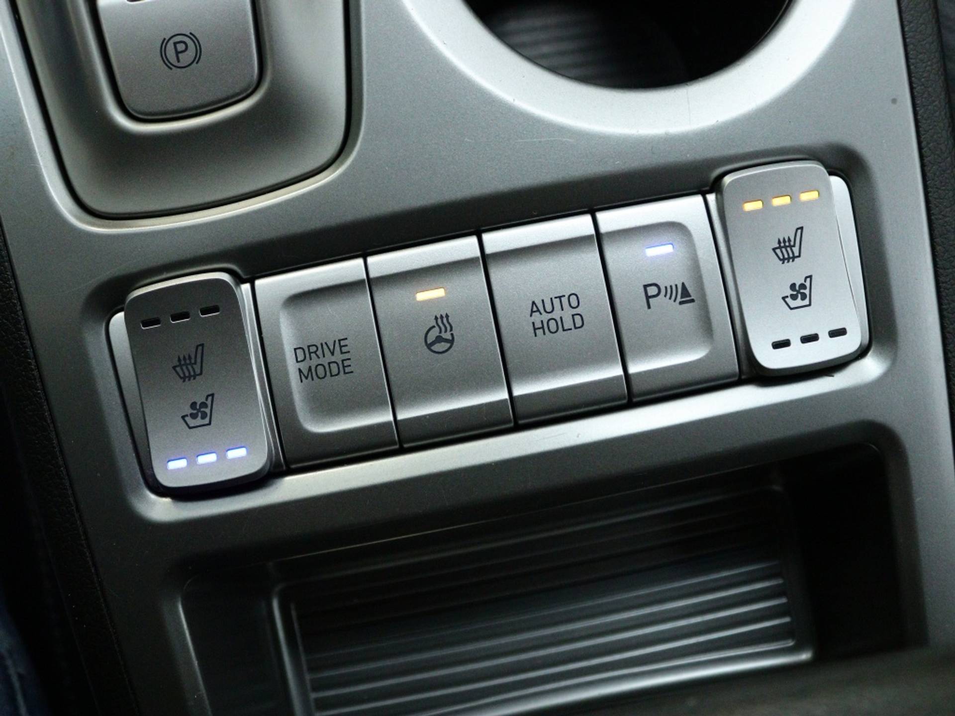 Het interieur van de Hyundai Kona EV Premium is voorzien van luxe extra's, zoals stoelventilatie voor een comfortabele zit, zelfs op warme dagen. Daarnaast is het stuur verwarmd, ideaal voor de koude wintermaanden. Deze SUV biedt niet alleen comfort, maar ook praktische opties voor elke rit.