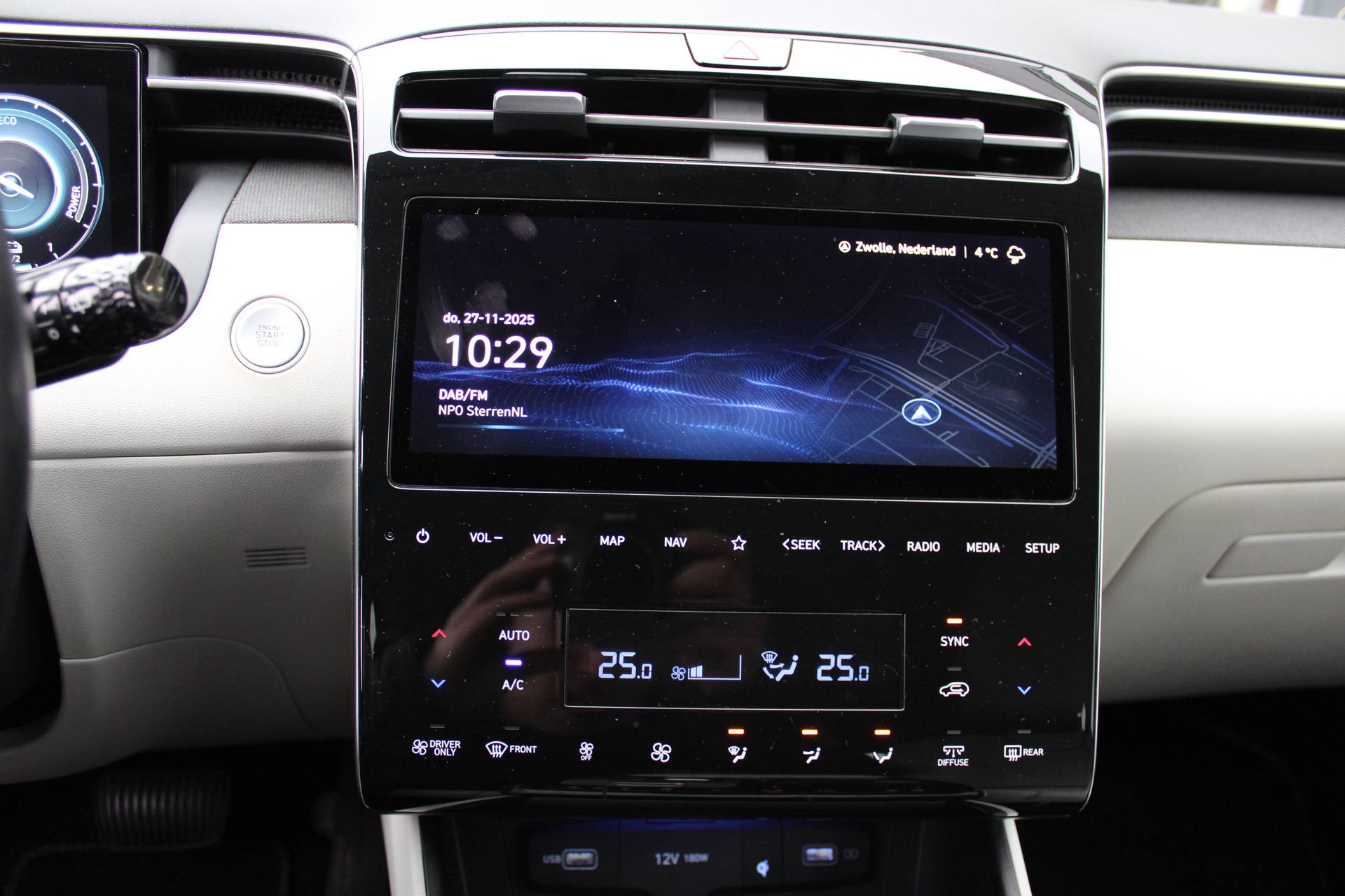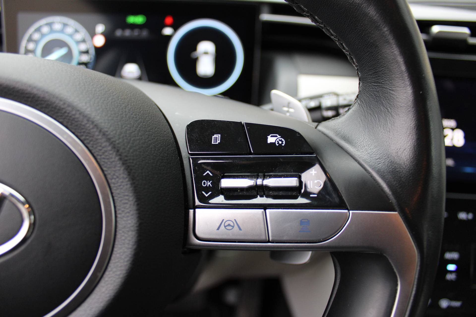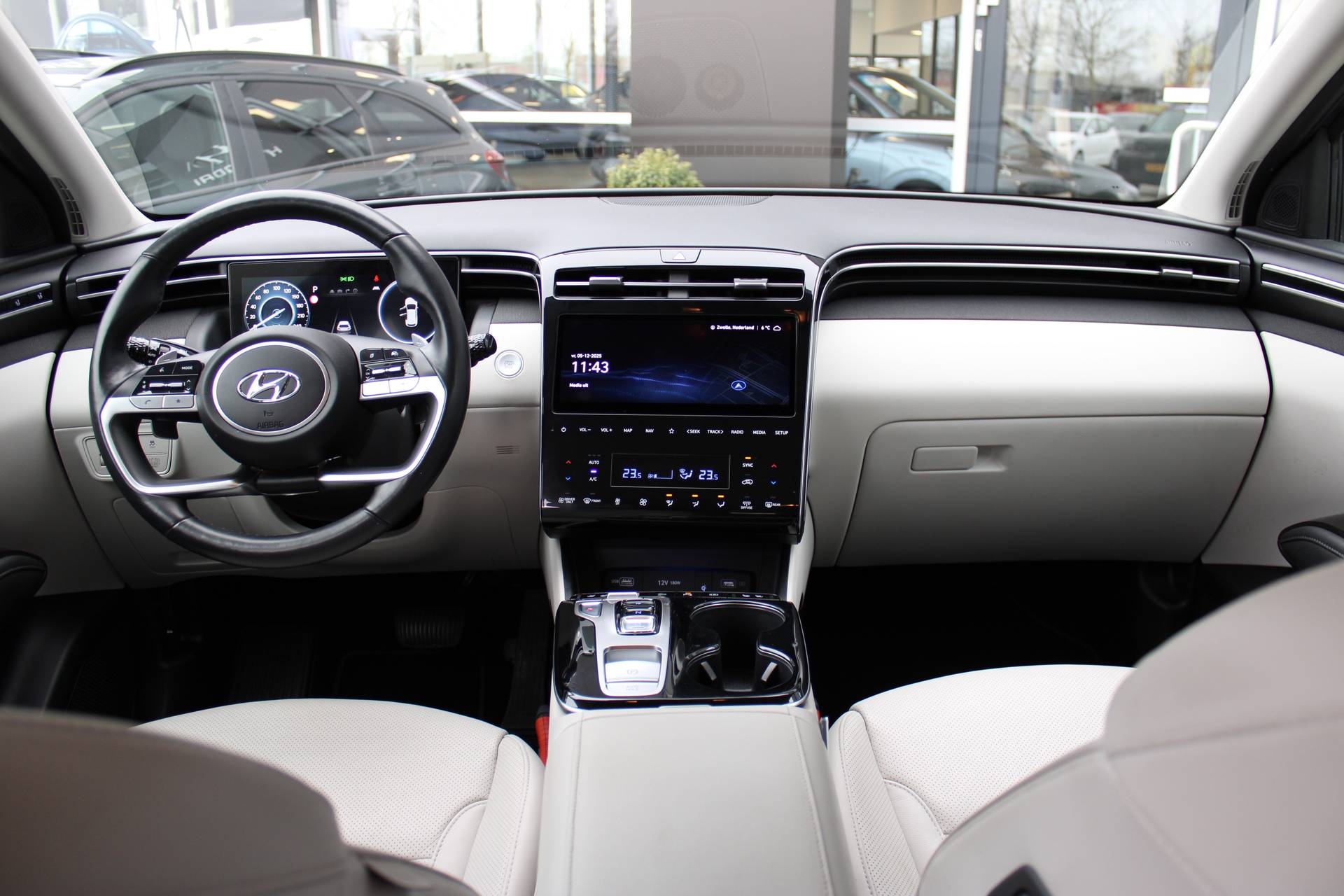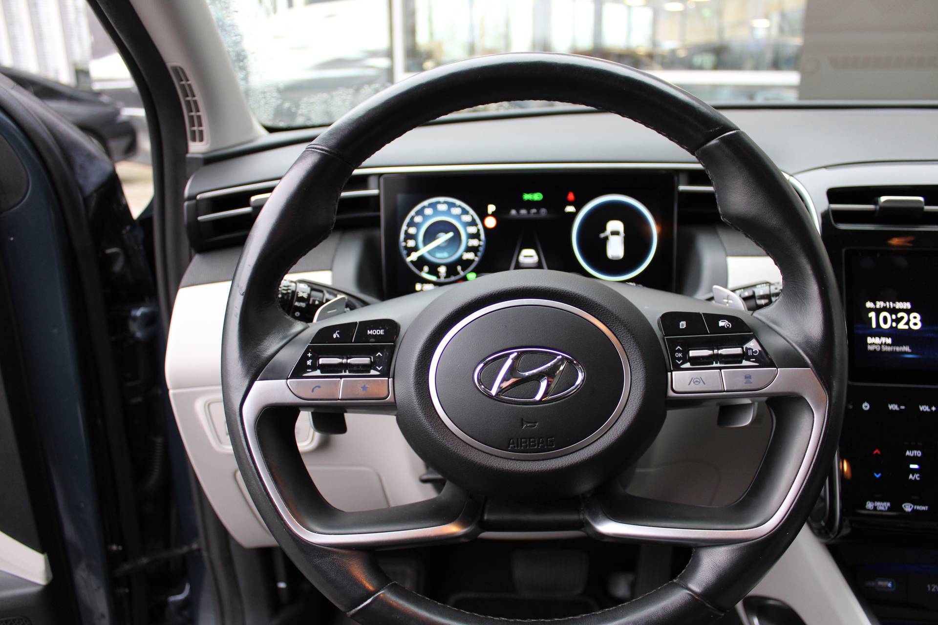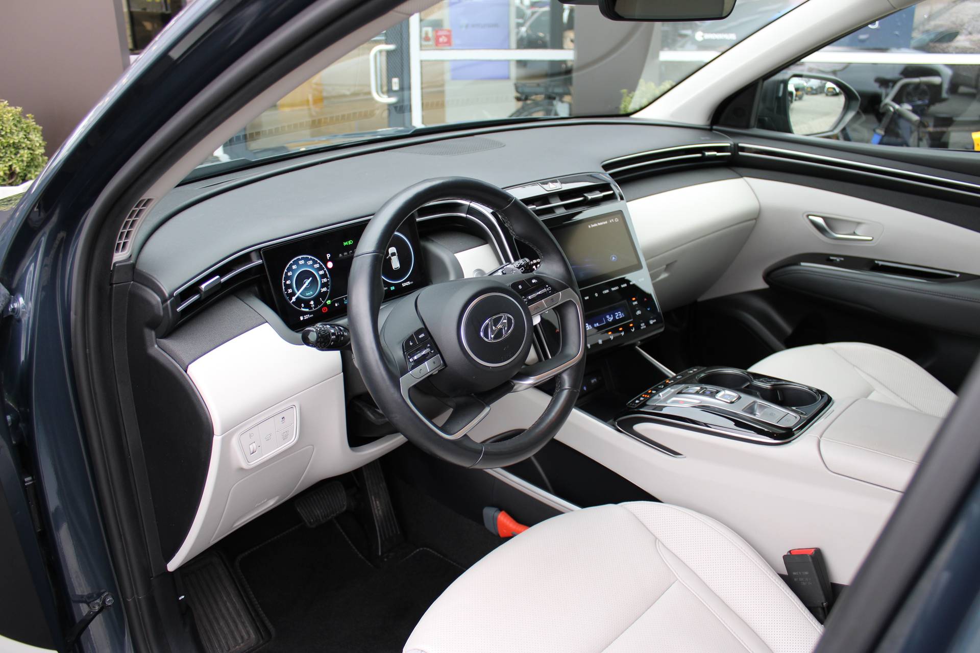 Fraai, lenig en helemaal van nu. Da's het grote voordeel van een jonge auto met nog maar weinig kilometers op de teller. De hybride motor combineert het gebruik van brandstof en elektriciteit, en dat maakt van deze Hyundai TUCSON een zuinige, slimme auto. Voorzien van zowel stoelverwarming, verwarmbare achterbank alsook een verwarmbaar stuur, zorgt dit voertuig voor uitstekend comfort tijdens koude dagen. De achterklep opent automatisch met een druk op de knop. Handig als u met volle handen staat. Ook 19 inch lichtmetalen velgen, LED koplampen, extra getint glas, in delen neerklapbare achterbank, LED-achterlichten en verstelbare lendensteunen horen tot de voorzieningen op deze auto. Een gevisualiseerd overzicht van alle belangrijke functies wordt geleverd door het digitale dashboard. Het gebruik van de 360 graden camera op deze auto vergemakkelijkt het parkeren aanzienlijk, vooral in krappe ruimtes. Met adaptive cruise control houdt de auto zelfstandig afstand tot uw voorligger. Een veiligheidsverhogende optie waarmee u comfortabel onderweg bent. Loopt het verkeer onderweg vast, schakel dan de file assistent in en laat het systeem zorgen voor de juiste afstand bij stilstaan en rijden. Gemak dient de mens. Dankzij de spraaksturing bedient u de belangrijkste functie met uw stem. Ook connected drive services, premium audiosysteem, full map navigatiesysteem, kruisend verkeer detectie, automatische airconditioning en draadloos opladen horen tot de voorzieningen op deze auto. In deze auto zijn verschillende technologieën aanwezig die voor u het verkeer en de omgeving in de gaten houden en die desnoods ook kunnen remmen of bijsturen. Dat de auto steeds meer taken van de bestuurder overneemt, merkt u bijvoorbeeld aan het systeem voor verkeersbord-detectie in deze Hyundai. Het Lane-keeping systeem zorgt voor een automatisch constante positie binnen de rijstrook. Afdwalen is uitgesloten. Als een fietser of andere weggebruiker zich net buiten uw zichtveld naast de auto bevindt, slaat de actieve dodehoekdetectie meteen alarm. Dankzij veiligheidsvoorzieningen als forward collision warning system, hill hold functie, vermoeidheidsherkenning, autonoom remsysteem en bandenspanningcontrolesysteem, bent u steeds veilig onderweg. Klinkt dit allemaal aantrekkelijk? Maak dan een afspraak met onze verkoper!