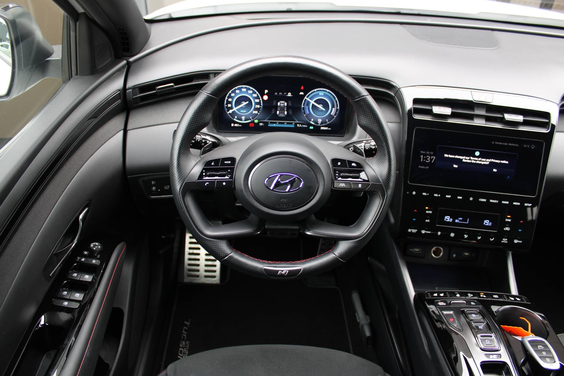 Modern design en bijzondere techniek bepalen de kwaliteiten van de hybride Hyundai TUCSON. Een hybride auto zoals deze, wordt aangedreven door een verbrandingsmotor en een elektromotor. Daardoor is de auto zuinig en vriendelijk voor het milieu. Hoogstaande comfortfuncties zoals stoelverwarming, verwarmbare achterbank en een verwarmbaar stuur maken deze auto tot een uitzonderlijke keuze. Een praktische extra is de elektrisch bedienbare achterklep die opent en sluit met een druk op de knop. Natuurlijk behoren 19 inch lichtmetalen velgen, LED koplampen, extra getint glas, in delen neerklapbare achterbank, LED-achterlichten en verstelbare lendensteunen ook tot de uitrusting van deze complete auto. Met het digitale dashboard in deze auto kunt u de interface van uw cockpit personaliseren. Of u nu achteruit rijdt, parkeert of een smalle straat inslaat, de 360 graden camera op deze auto, mogelijk gemaakt door vier camera's, biedt een perfect beeld van uw omgeving. Met adaptive cruise control houdt de auto zelfstandig afstand tot uw voorligger. Een veiligheidsverhogende optie waarmee u comfortabel onderweg bent. In de file rijden vreet concentratie. Daarom komt de file assistent te hulp om veilig afstand te houden en automatisch te stoppen als uw voorligger stilstaat. Bedient u de auto liever met uw stem? Dan is het goed om te weten dat spraakbediening aanwezig is. Met connected drive services, premium audiosysteem, full map navigatiesysteem, kruisend verkeer detectie, automatische airconditioning en draadloos opladen is deze Hyundai helemaal compleet. Geavanceerde veiligheidssystemen kijken tijdens elke rit met u mee en schatten continu de risico's in. Wat deze auto ook kan, is lezen. Hij 'leest' voor u de verkeersborden tijdens de rit en attendeert u erop door ze op het dashboard te projecteren. Met het Lane-keeping systeem gaat u nooit onbedoeld over de streep. Als een fiets of ander voertuig zich in de dode hoek bevindt, waarschuwt het actieve dodehoekdetectie. Dit helpt ernstige ongelukken voorkomen. Dankzij veiligheidsvoorzieningen als forward collision warning system, hill hold functie, vermoeidheidsherkenning, autonoom remsysteem en bandenspanningcontrolesysteem, bent u steeds veilig onderweg. U bent nieuwsgierig? Bel of mail ons dan direct om een proefrit te reserveren.