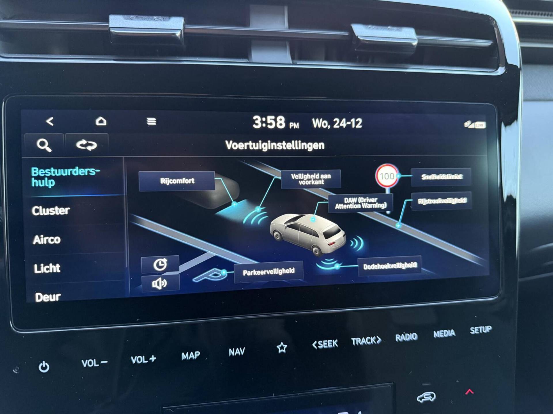 Met de nieuwste technologieën aan boord is deze Hyundai in staat om zelf te reageren op potentieel gevaarlijke situaties op de weg. Onderweg zorgt verkeersborddetectie ervoor dat u geen waarschuwingsbord mist. Met het Lane-keeping systeem gaat u nooit onbedoeld over de streep. Het risico van een kop-staartbotsing wordt aanzienlijk verminderd door de forward collision warning. In deze Hyundai vinden we verder een dodehoekdetectie, hill hold functie, vermoeidheidsherkenning, autonoom remsysteem en bandenspanningcontrolesysteem.