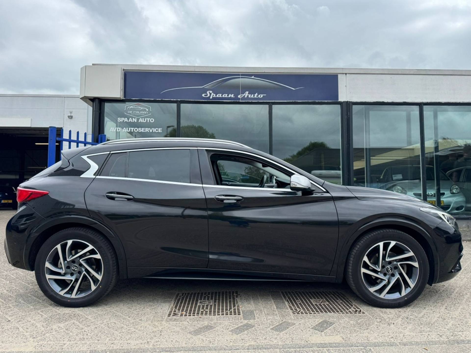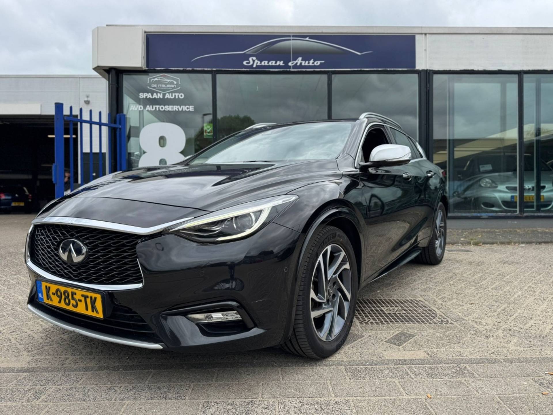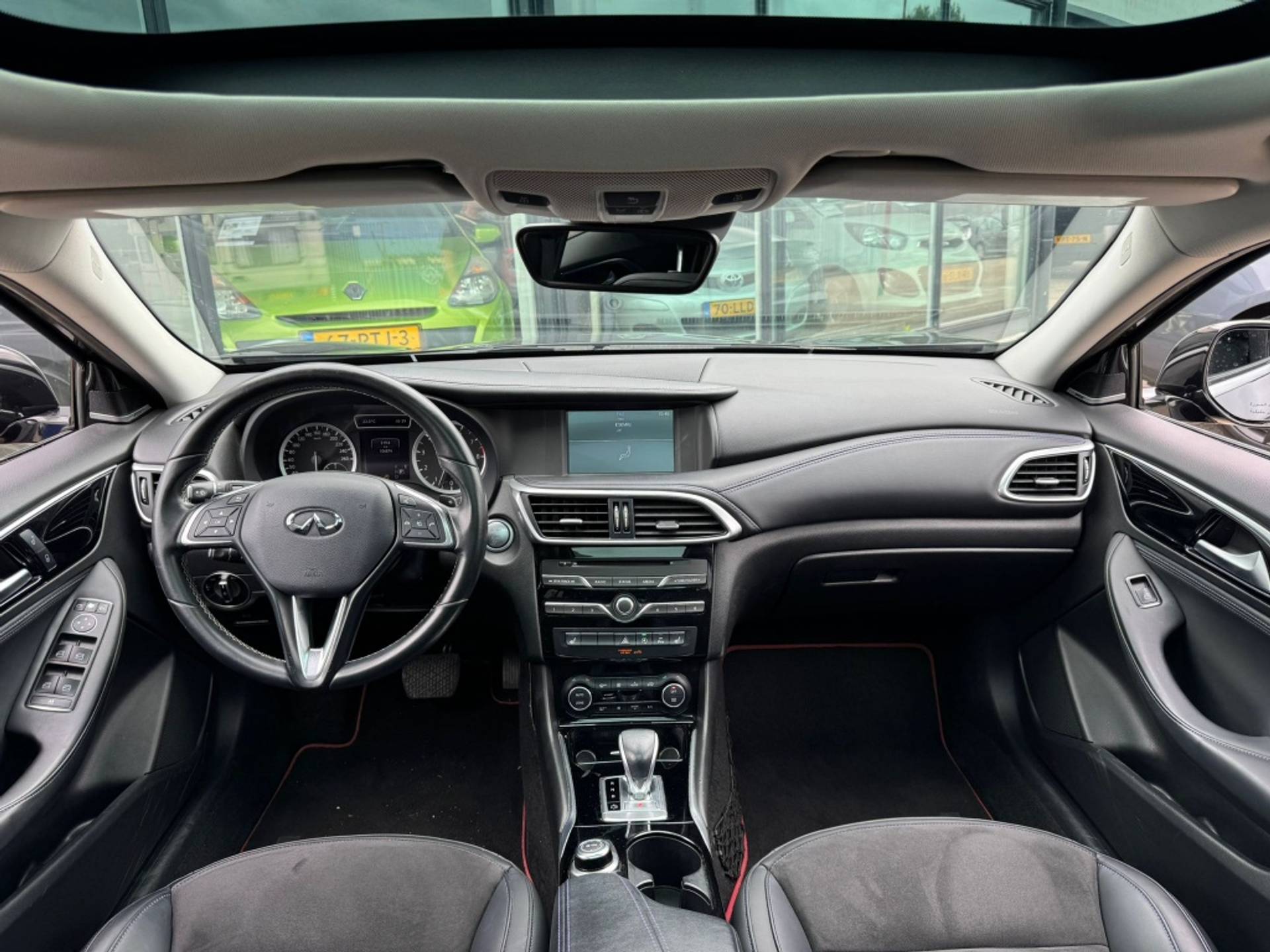 De 360 graden camera biedt een beter zicht bij slechte weersomstandigheden, waardoor u beter kan anticiperen op mogelijke gevaren. Rijplezier en luisterplezier gaan hand in hand dankzij het high performance audiosysteem. Automatische airconditioning regelt volautomatisch de temperatuur. U kiest de gewenste temperatuur en het systeem doet de rest. Liever gepiep dan gekraak? Dan zult u blij zijn met de aanwezige parkeersensoren! Het drukke verkeer eist onderweg al uw aandacht op. Daarom is het goed dat deze Infiniti is voorzien van diverse systemen die u assisteren tijdens de rit. Een automatisch inschakelbare verlichting neemt het waar als het donker wordt of gaat schemeren, en schakelt dan automatisch de verlichting in. Op dezelfde manier "ziet" de regensensor de eerste spatjes regen en schakelt dan de ruitenwissers in, en als het harder gaat regenen zet hij de ruitenwissers ook in een snellere stand. Met dashboard met spraakbediening, navigatiesysteem, sportstuur met schakelpaddels, DAB ontvangst, cruise control en keyless entry is deze Infiniti helemaal compleet.