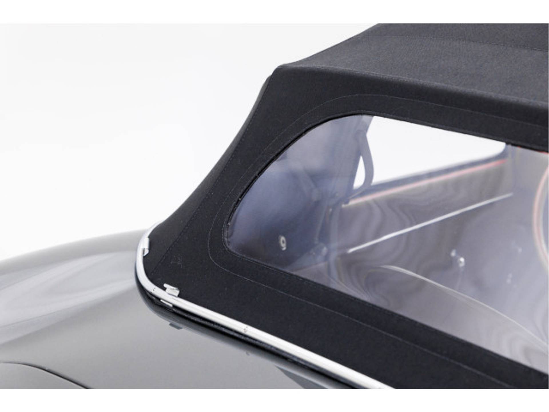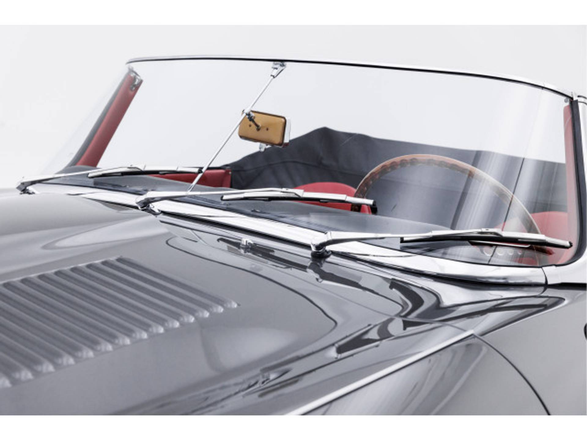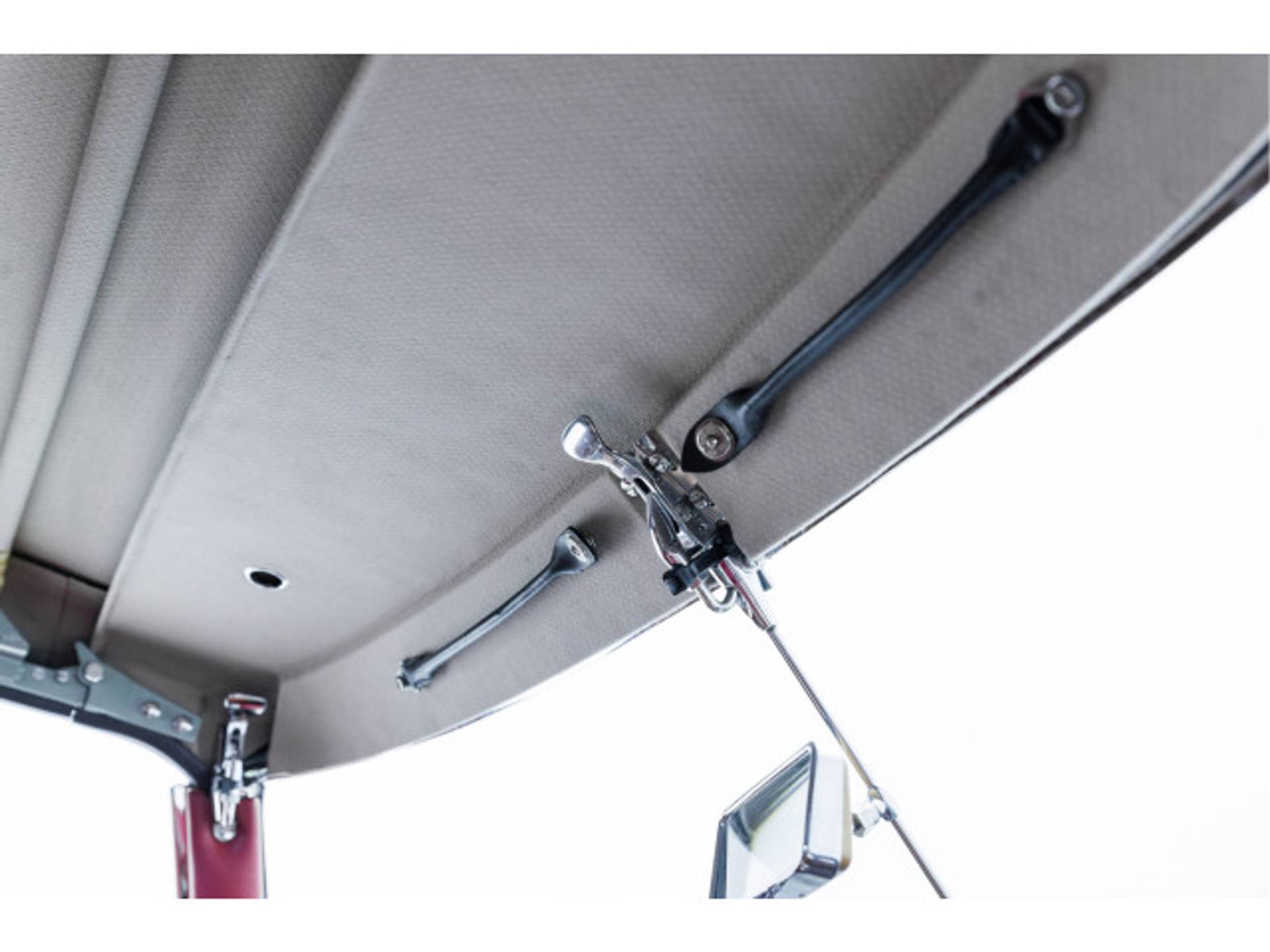 Het chroomwerk aan de bovenzijde van de deuren en rond de voorruit is correct.