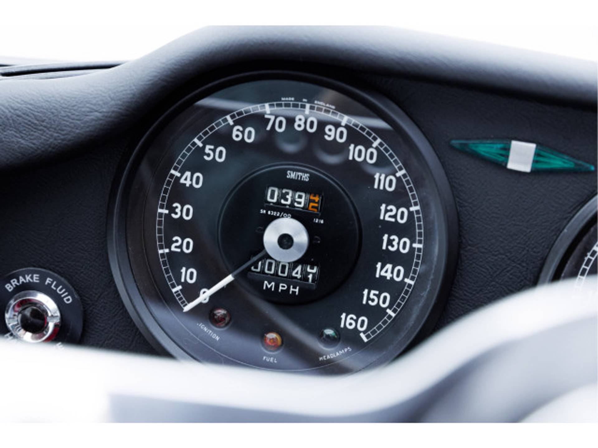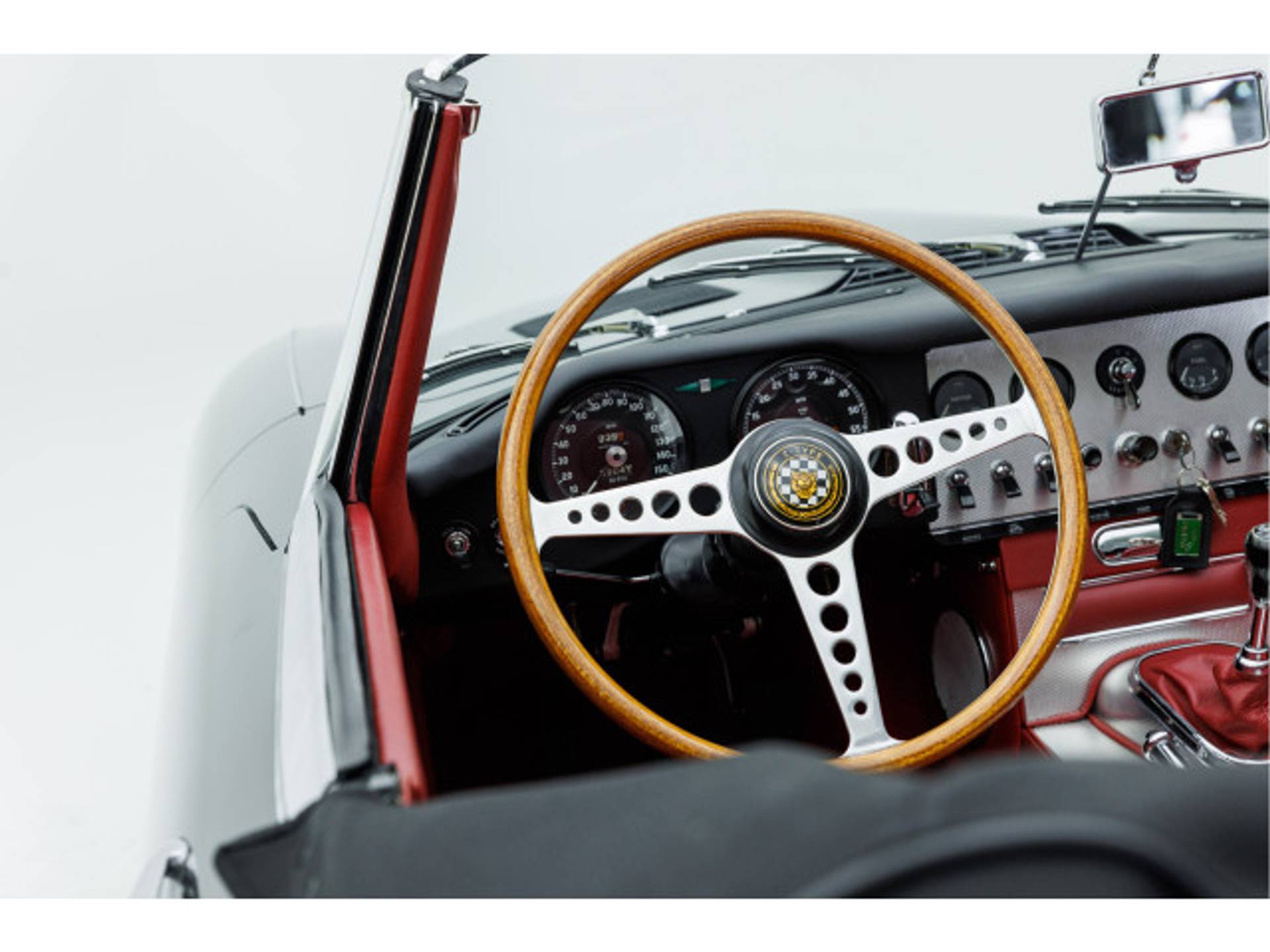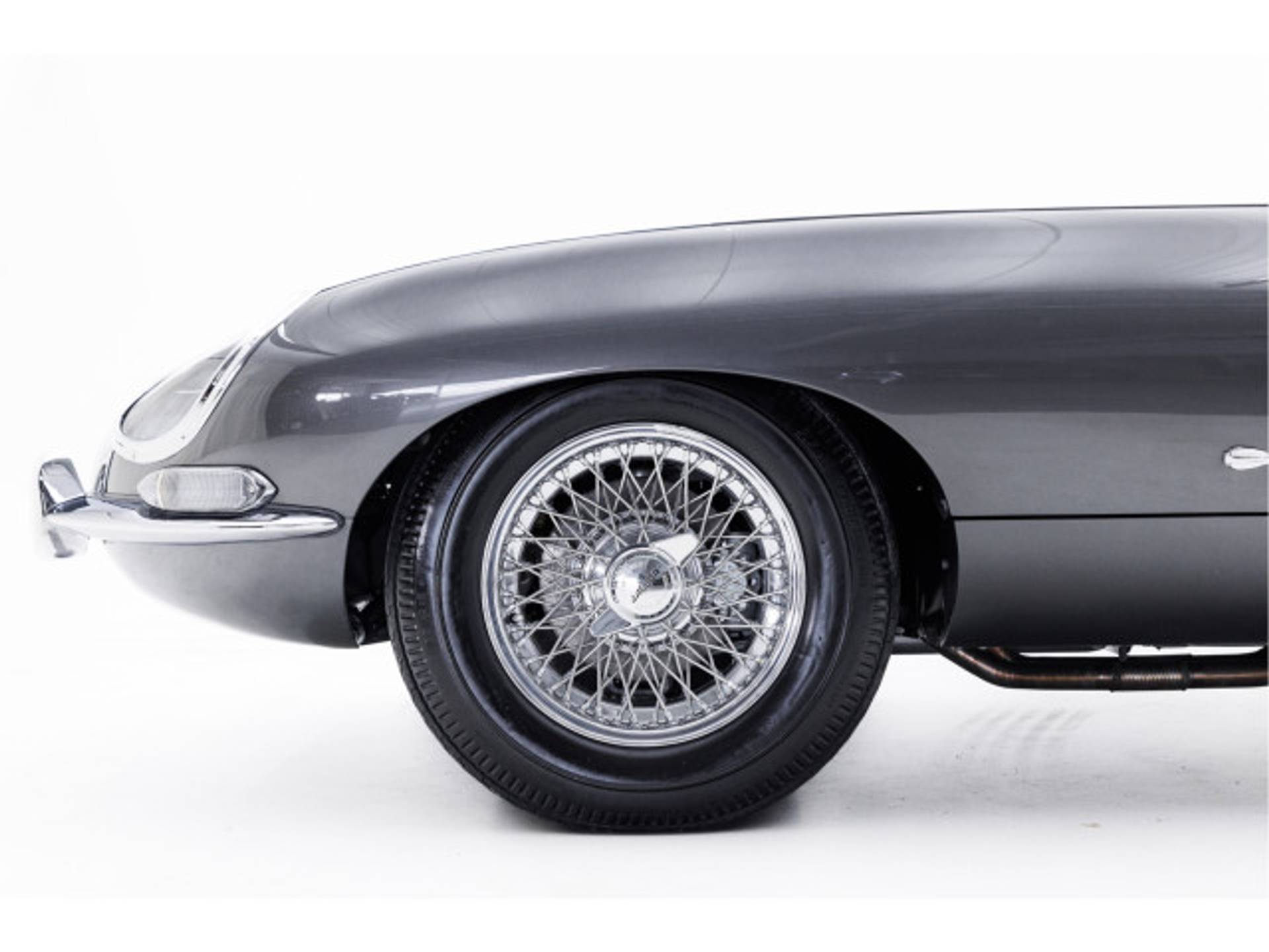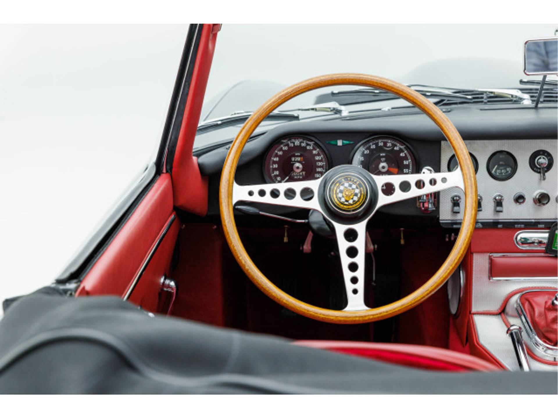Het unieke carosserienummer bevindt zich bij deze vroegste E-Types op het schutbord, in tegenstelling tot andere E-types waar dit nummer zich in de kofferbak bevindt.