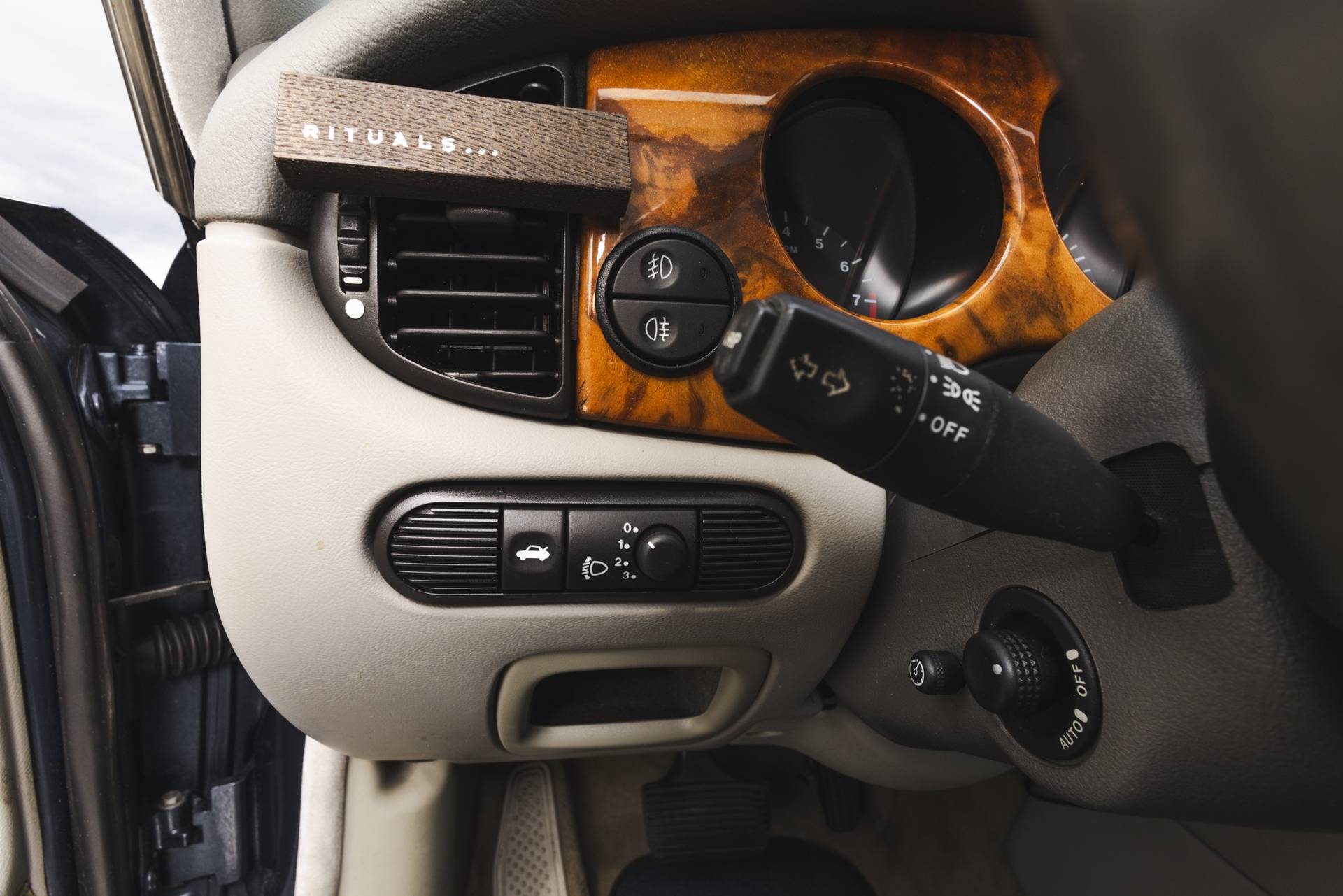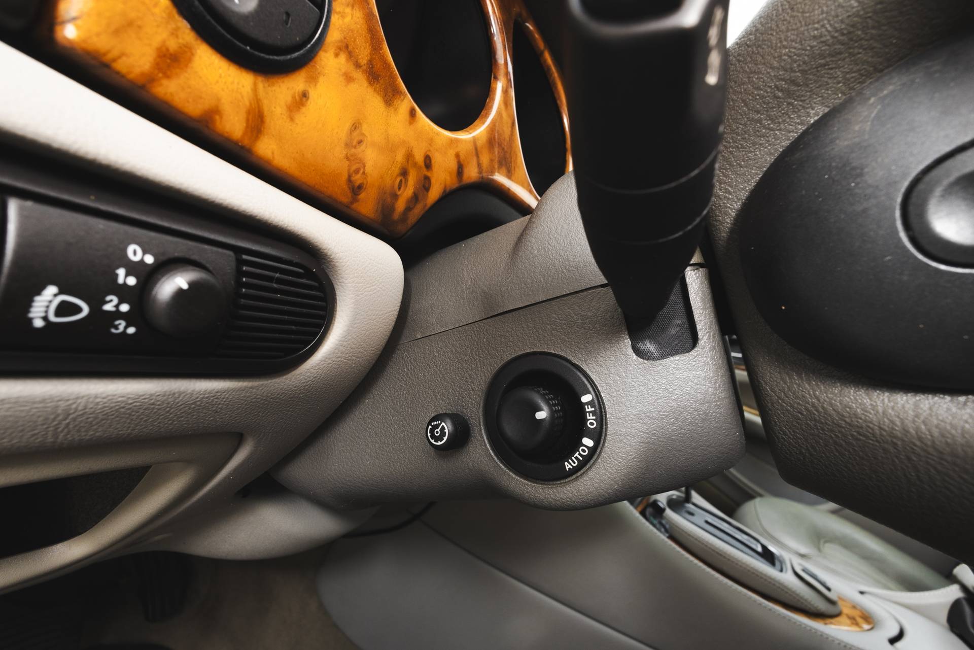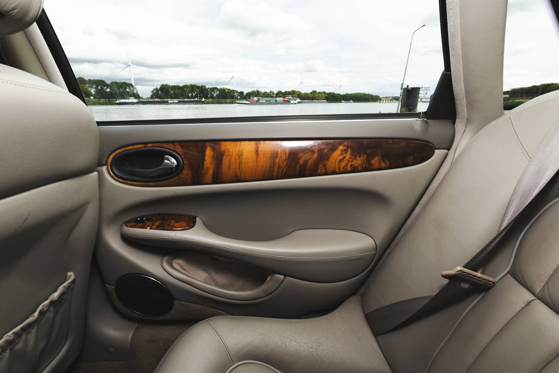 Het interieur is uitgevoerd in Nimbusgrijs met ambla bekleding en afgewerkt met burr walnut-fineer. De hemelbekleding is eveneens in Nimbusgrijs uitgevoerd, wat bijdraagt aan de klassieke sfeer. Voorzien van onder andere cruise control, elektrochromatische binnenspiegel, derde remlicht, Nederlands instructieboekje en originele vloermatten.